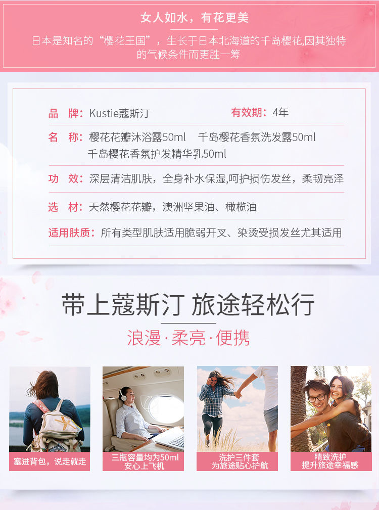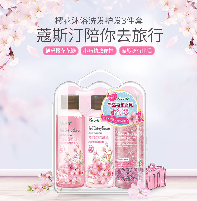 【爆款超低价预售 急单慎拍】蔻斯汀樱花花瓣香氛洗护旅行套装 沐浴露洗发水护发素三件套小样