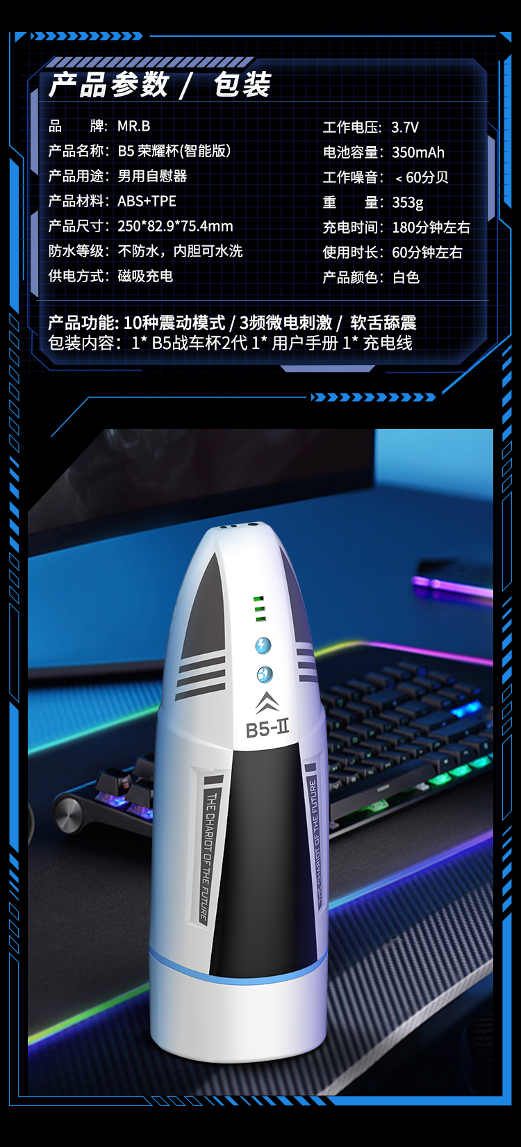 MRB B5荣耀杯飞机杯夹吸吮吸震动发音男性自用安慰器解压性玩具