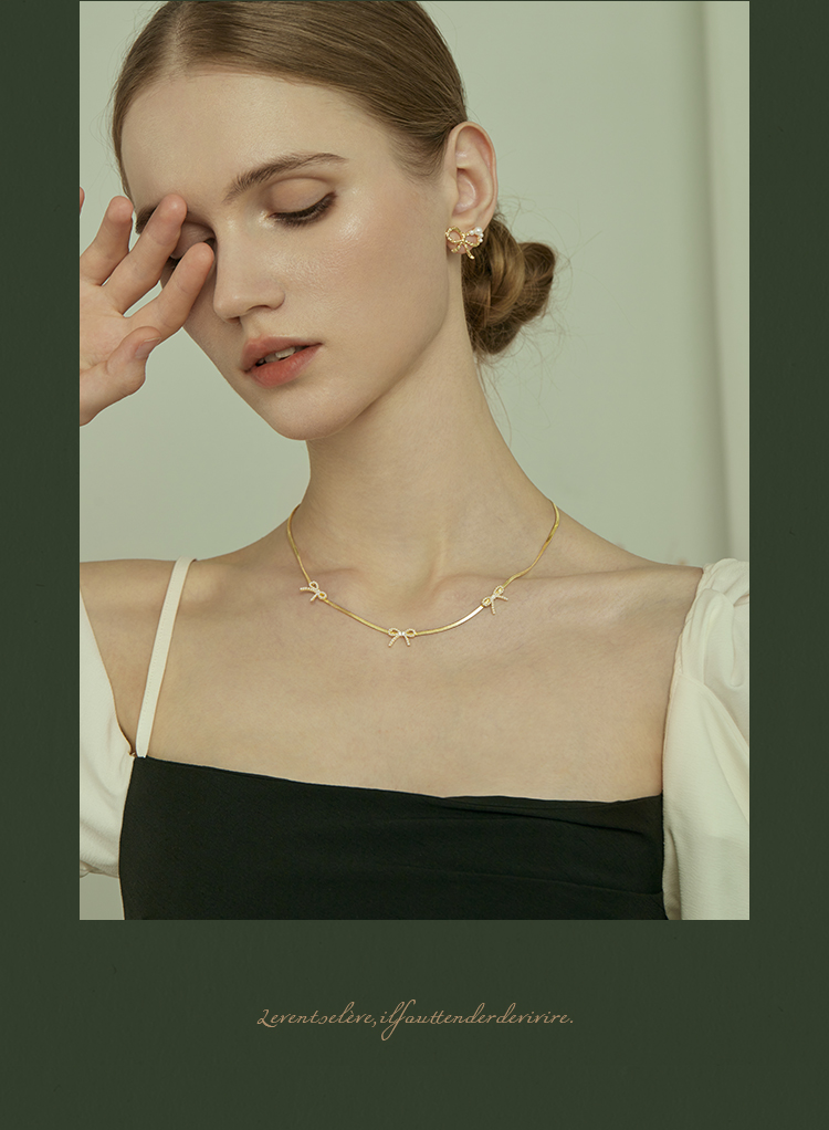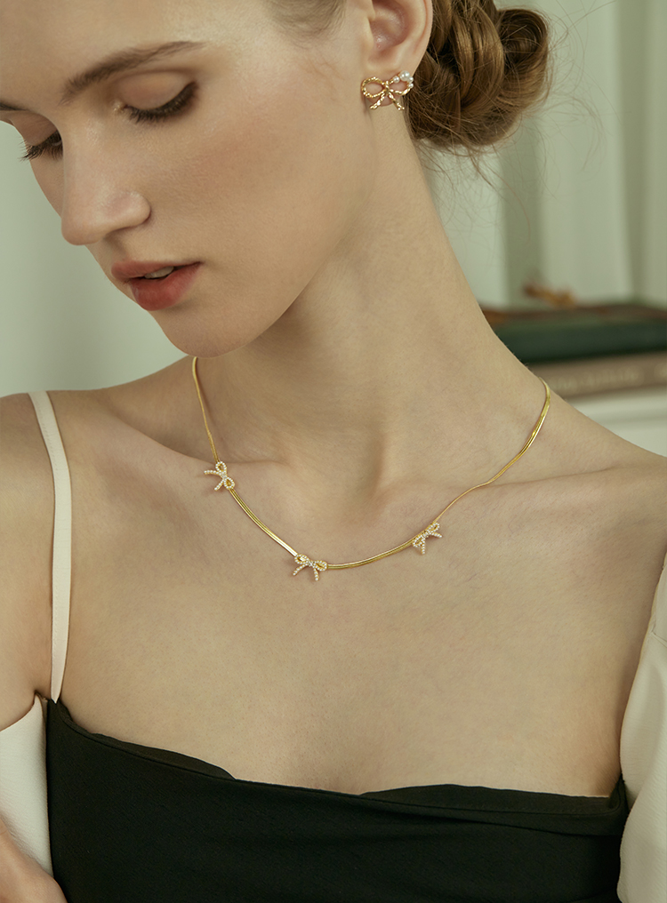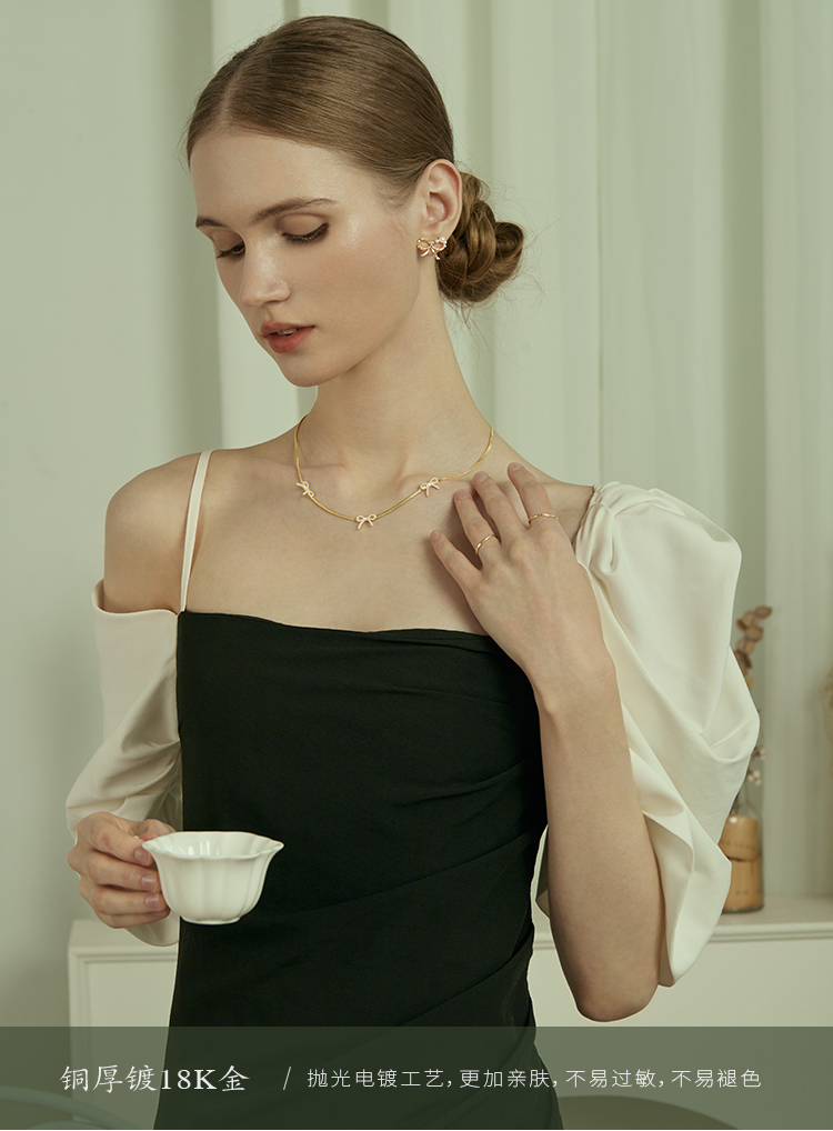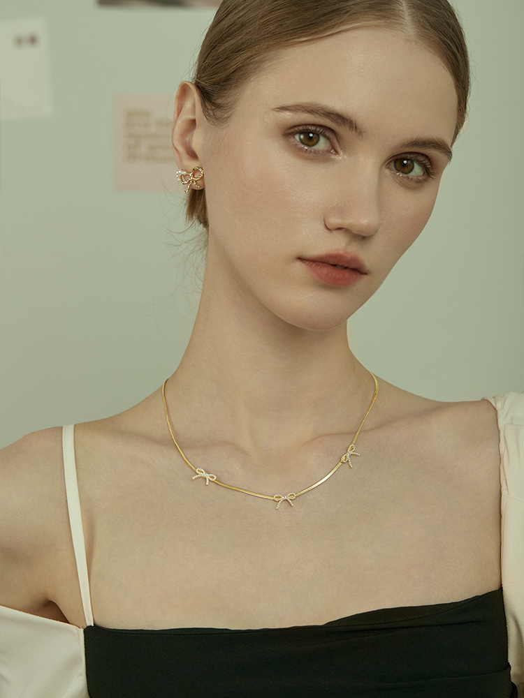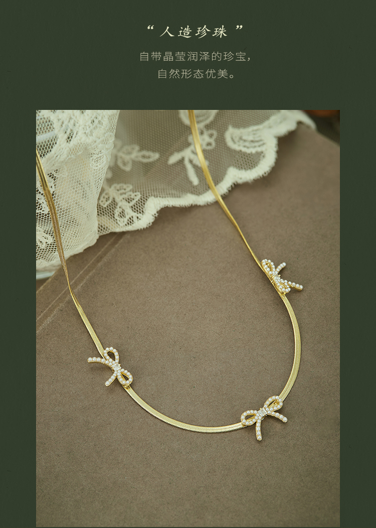Oflye潮流饰品 高级感气质法式优雅小众设计风格小蝴蝶结珍珠项链