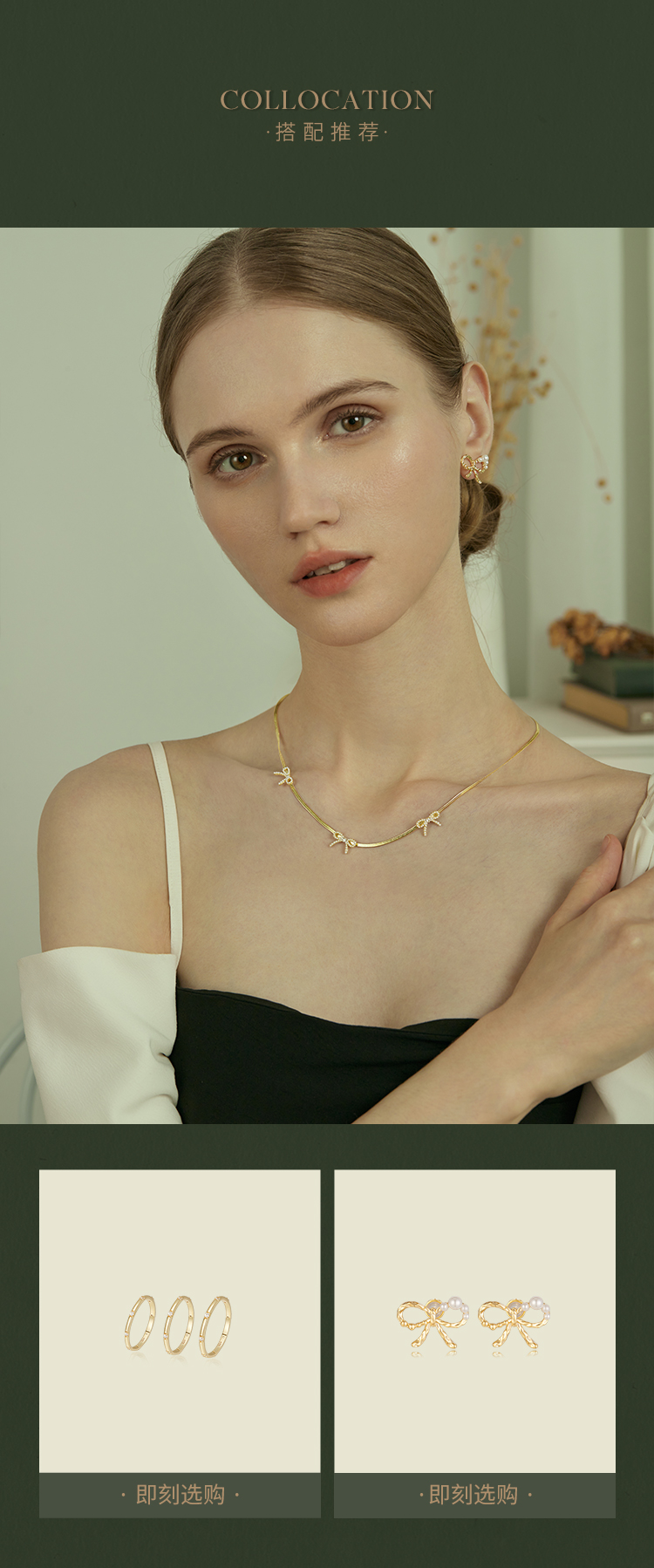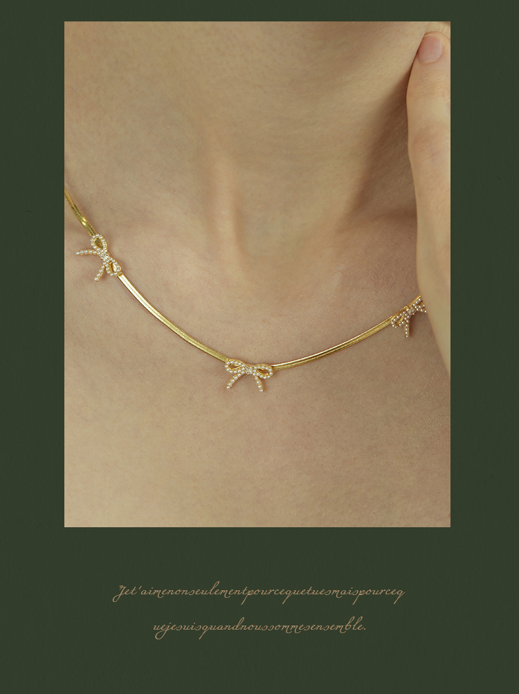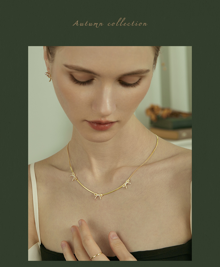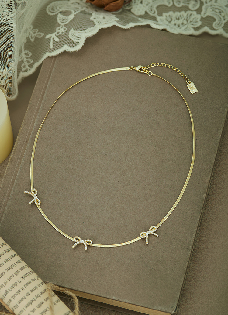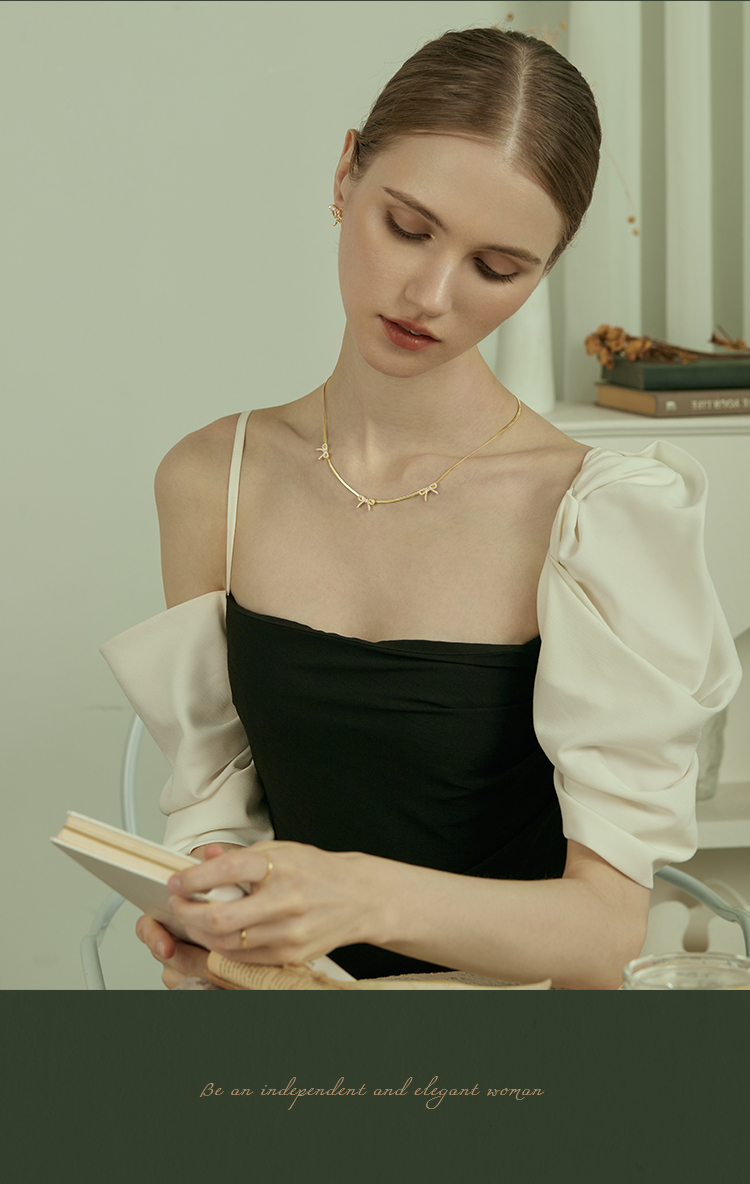 Oflye潮流饰品 高级感气质法式优雅小众设计风格小蝴蝶结珍珠项链