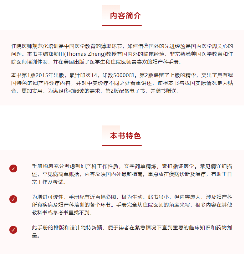 妇产科手册 第2版 附赠电子书 供实习医生住院医师规范化培训使用 妇产科医生医学生掌中宝 郑勤田 人民卫生出版社9787117335065