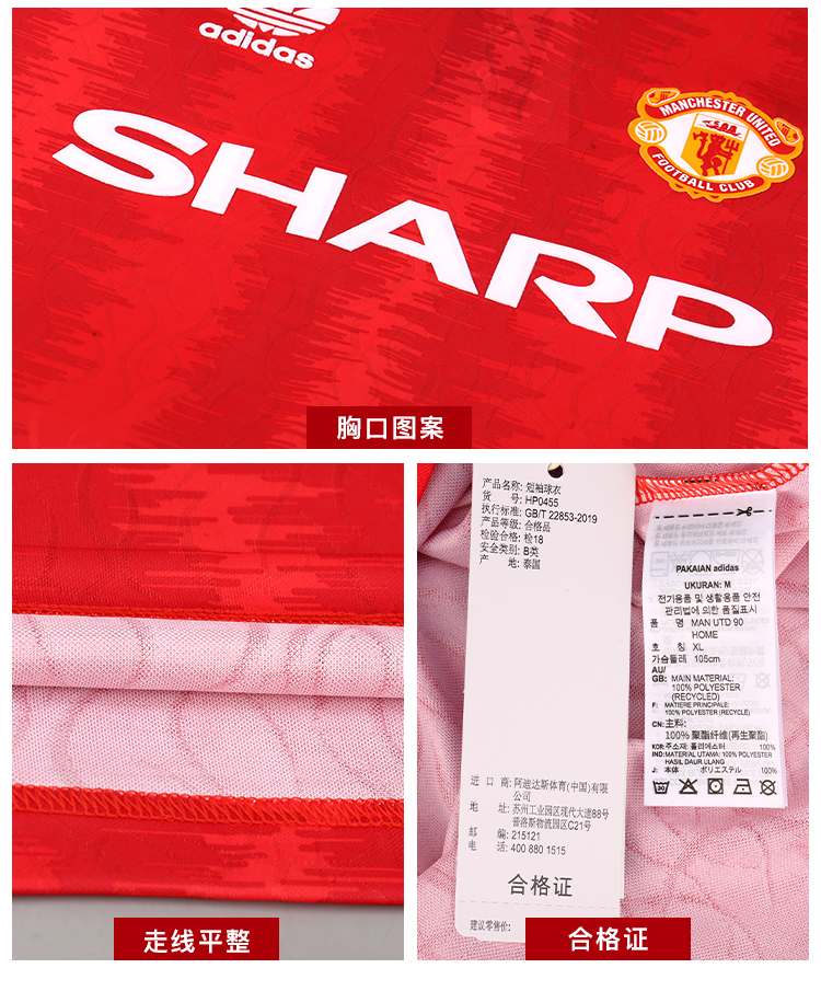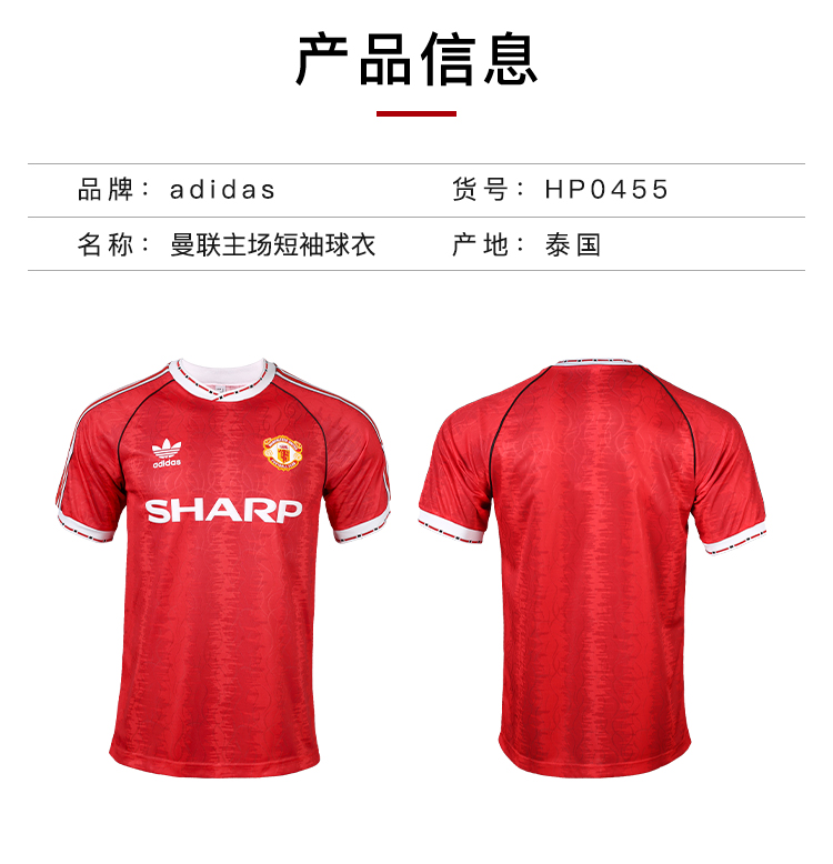 ADIDAS/阿迪达斯 Man Utd 90 Home三叶草曼联主场短袖球衣HP0455