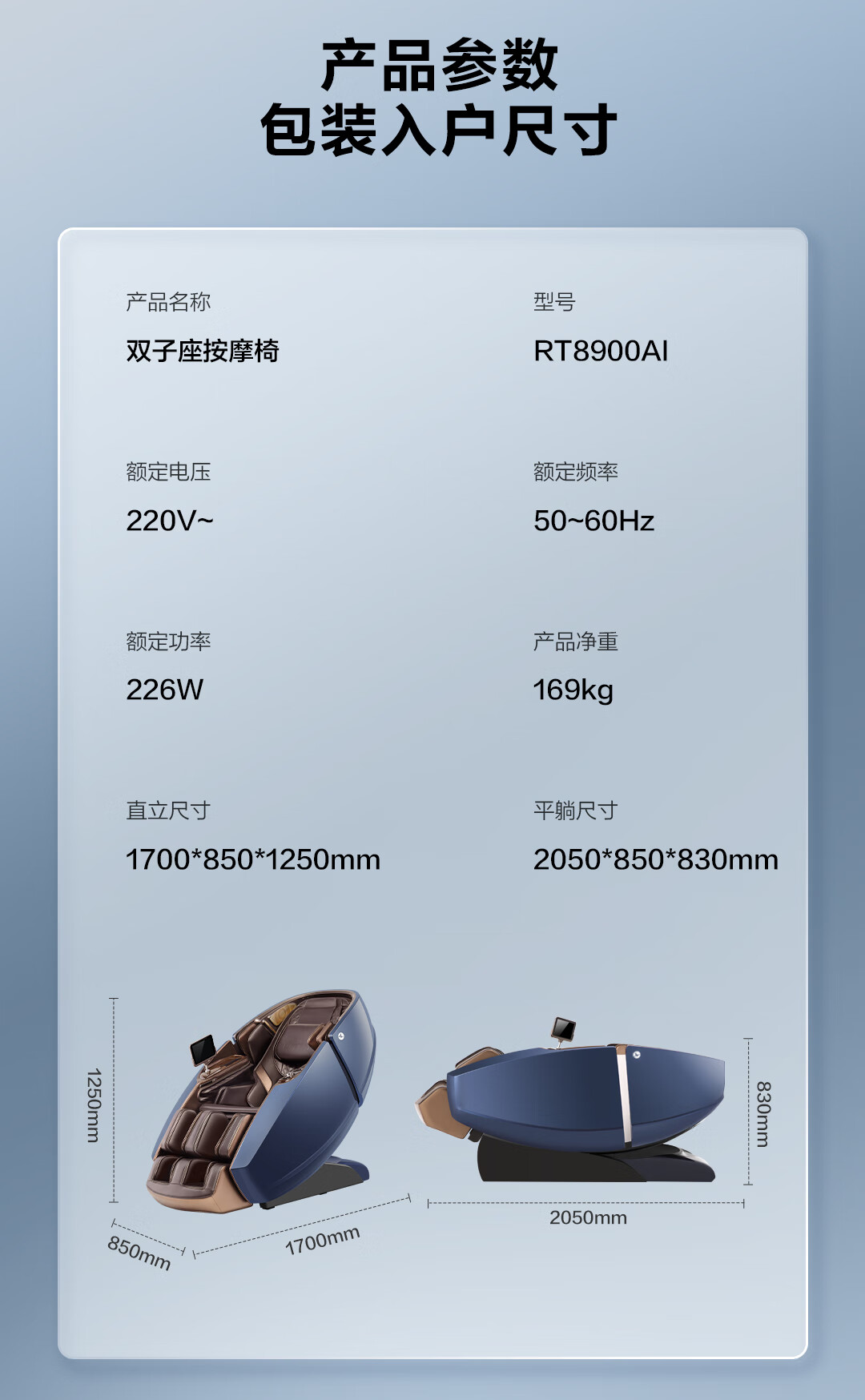 荣泰(RONGTAI)按摩椅家用全身按摩豪华智能零重力太空舱2026十大品牌老人用按摩沙发椅送老人父母礼物RT8900AI 深灰色/咖啡色