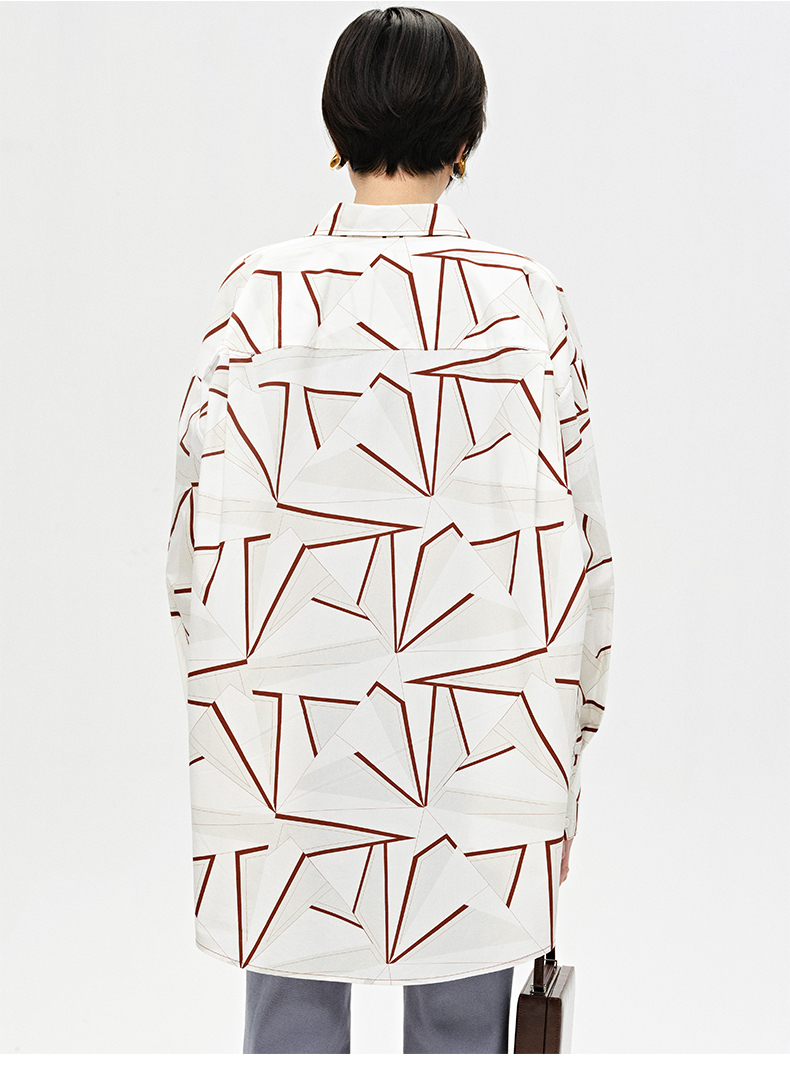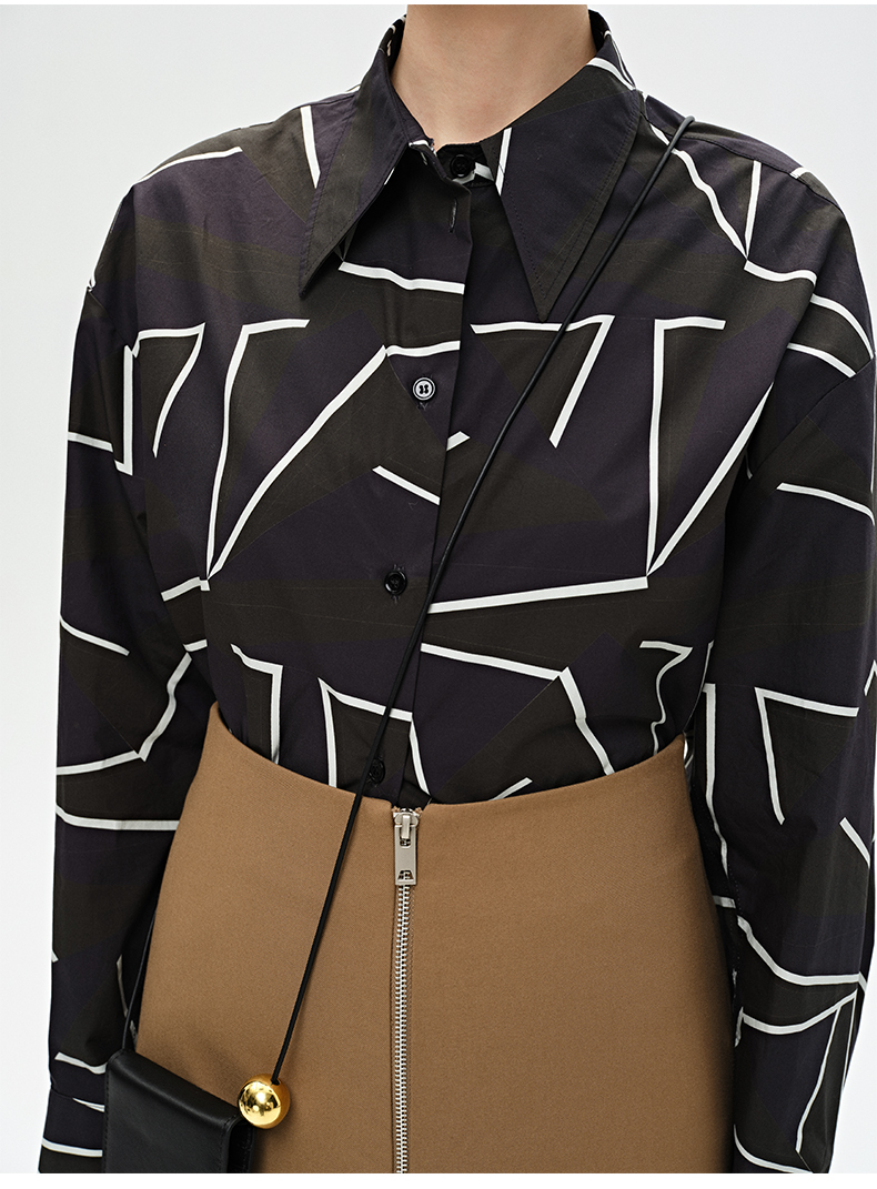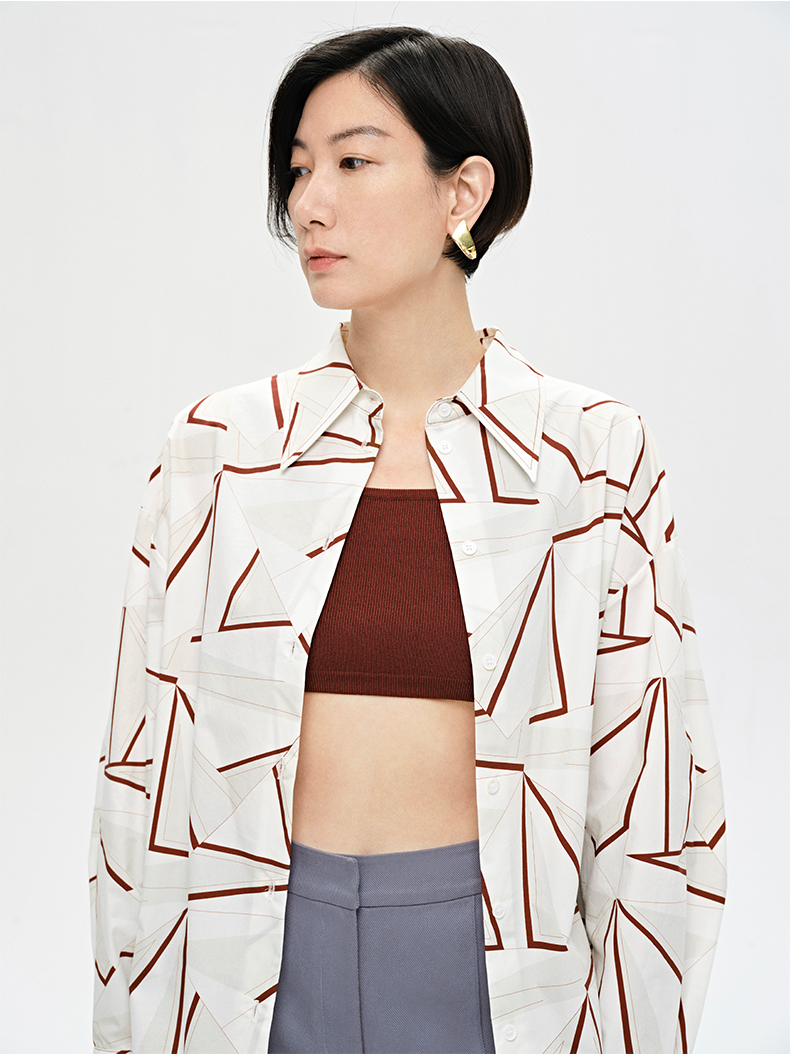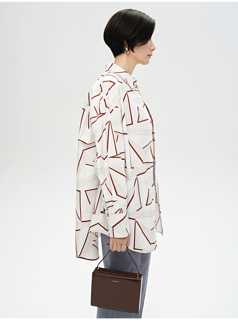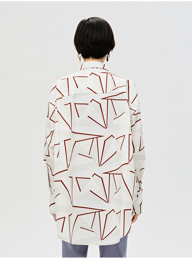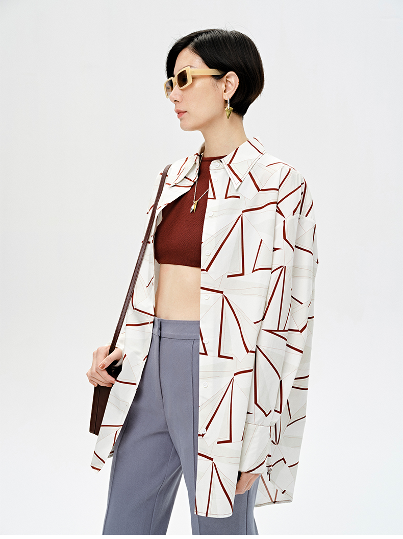 HIDEMI “我们做印花”特殊纸感几何桌椅剪影式印花廓形衬衫