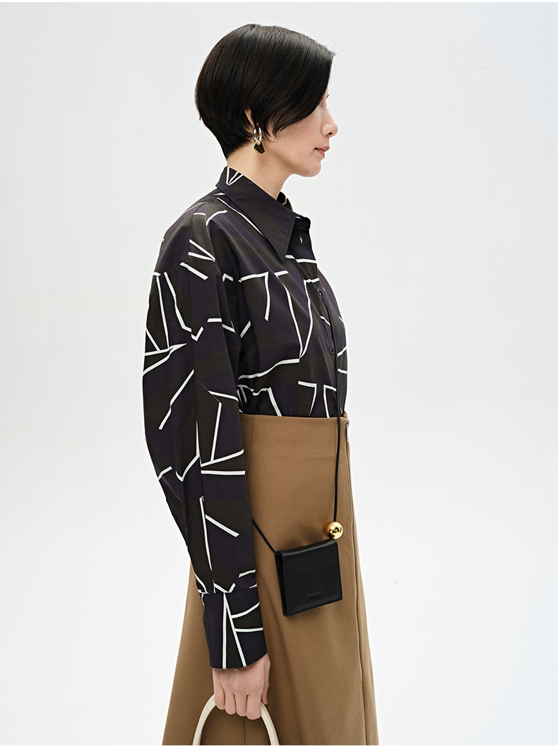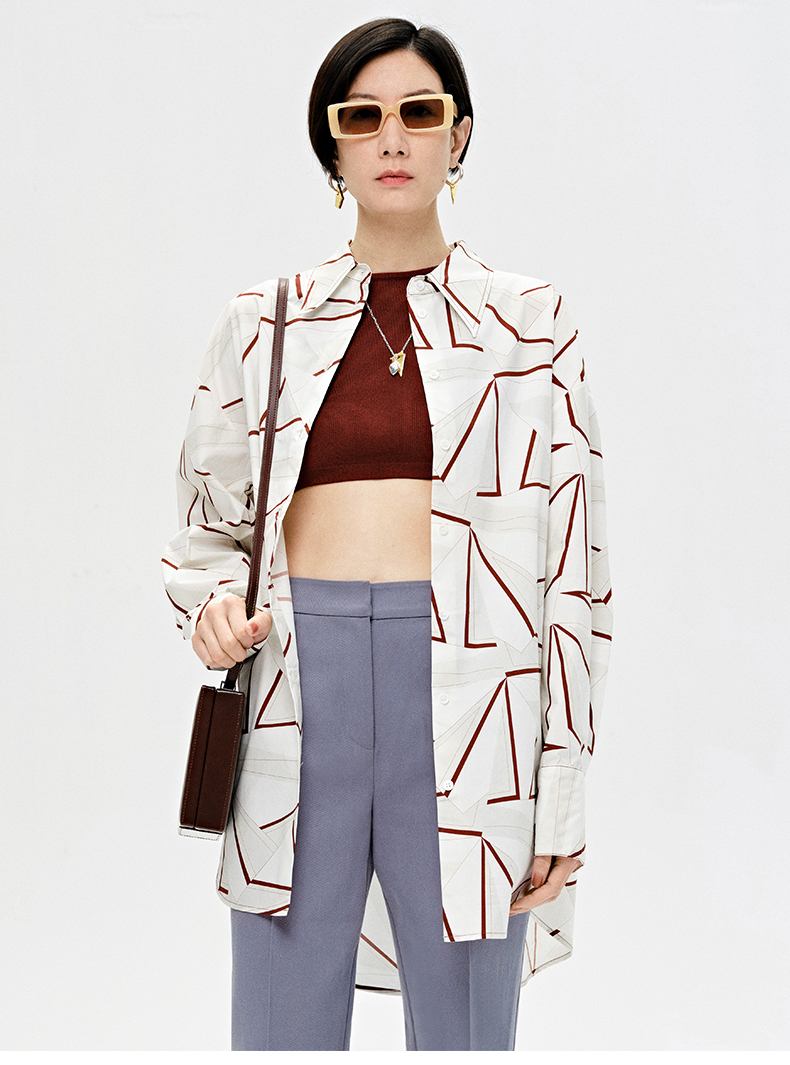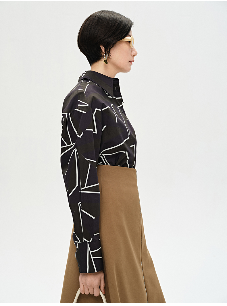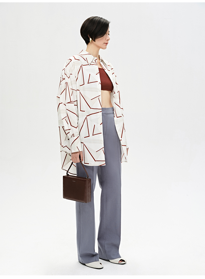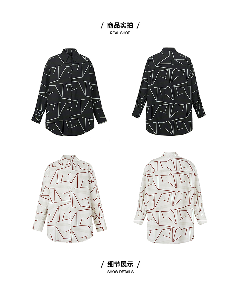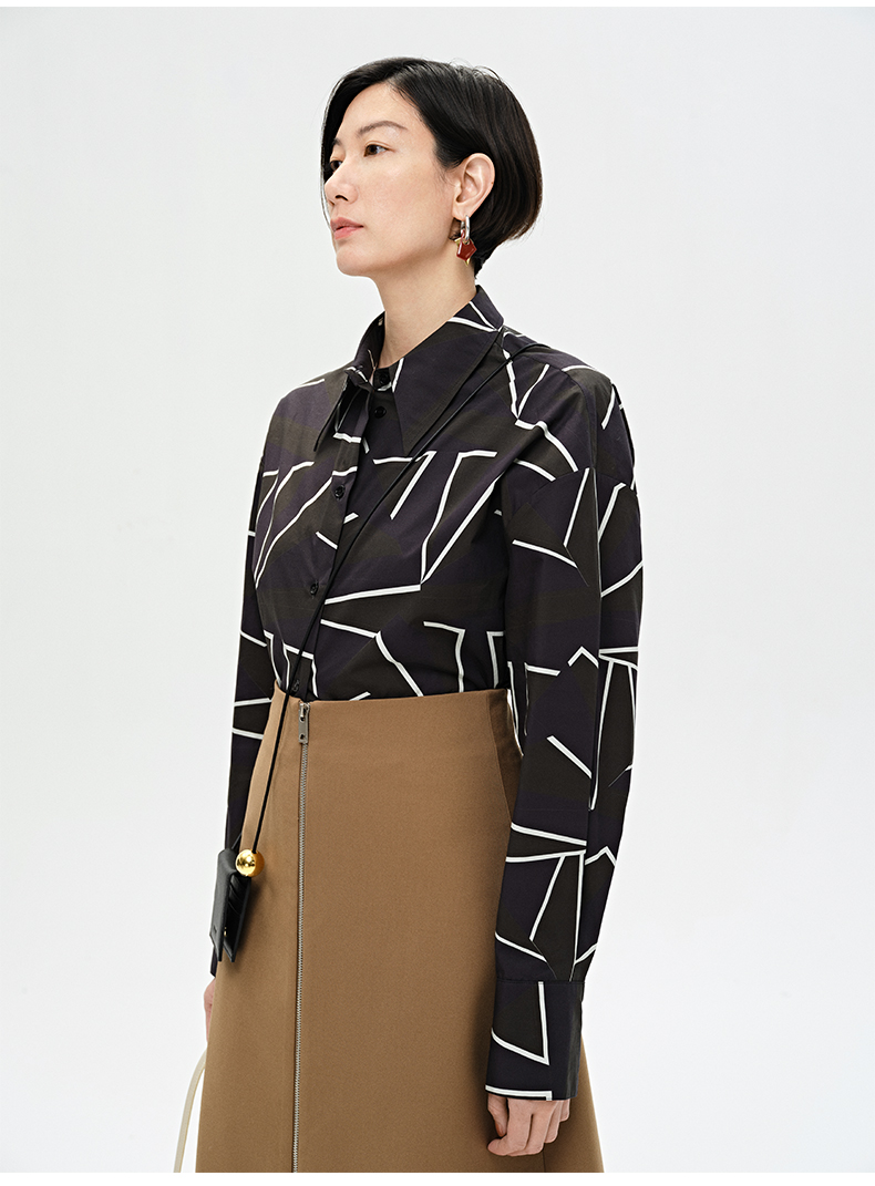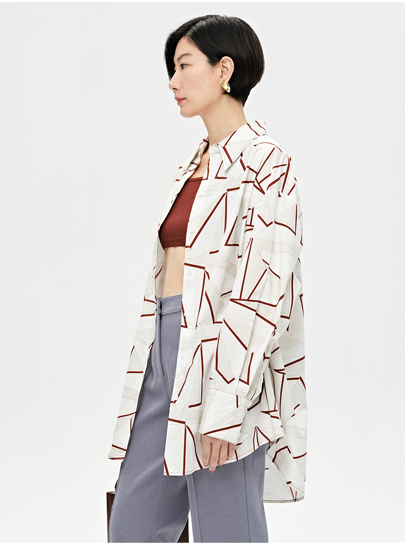 HIDEMI “我们做印花”特殊纸感几何桌椅剪影式印花廓形衬衫