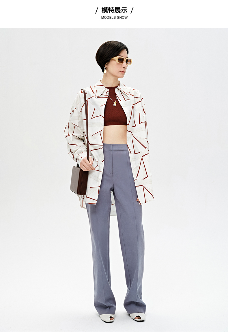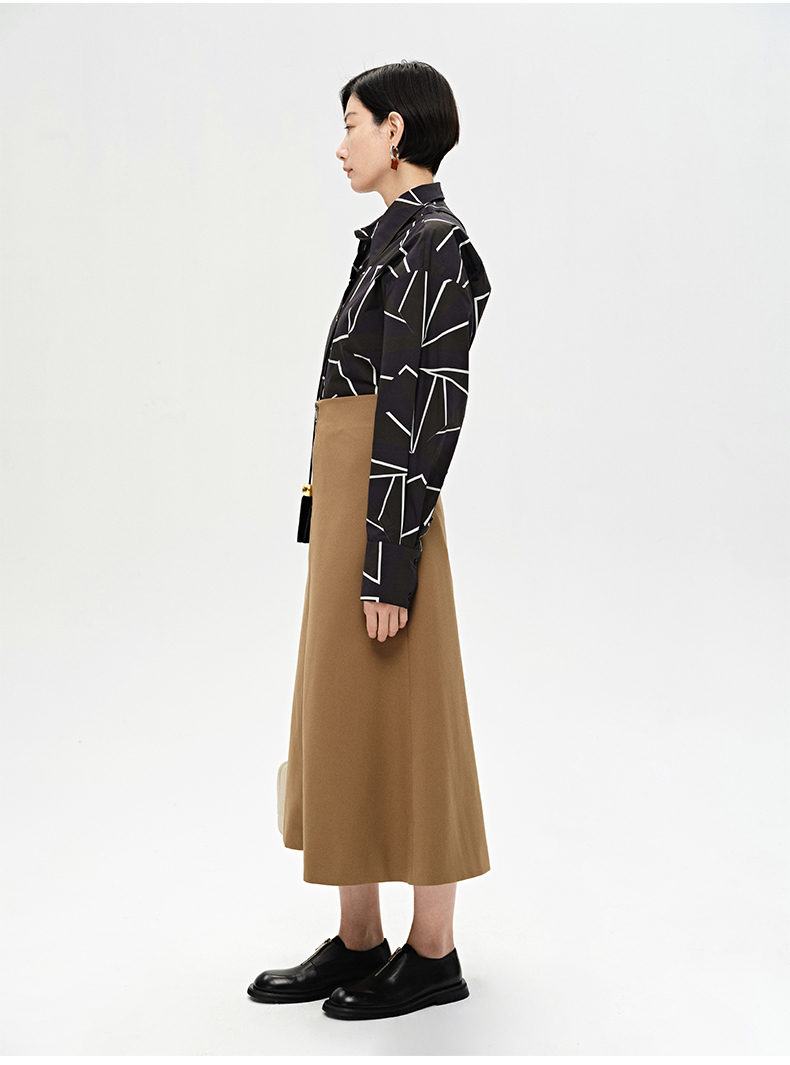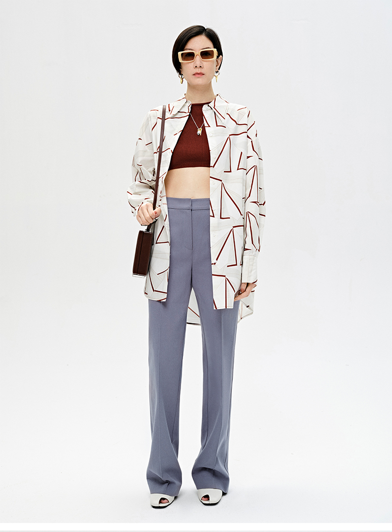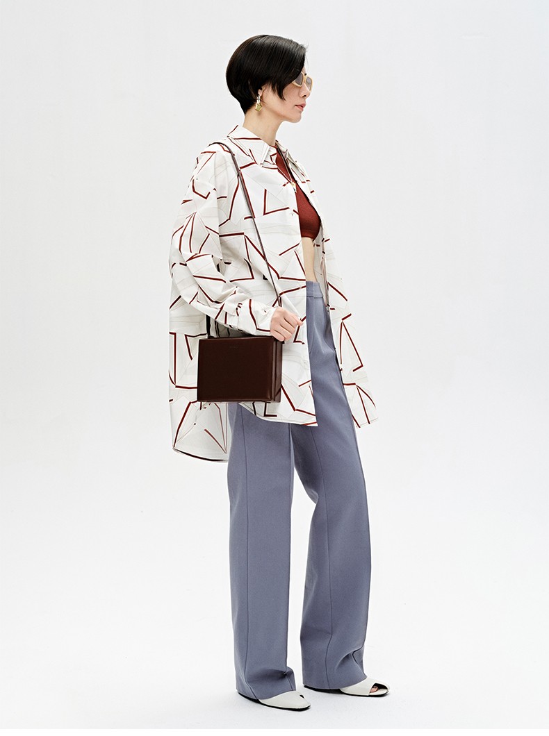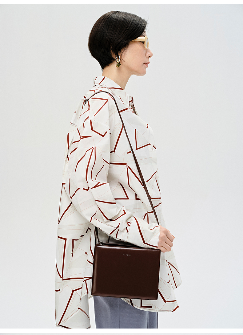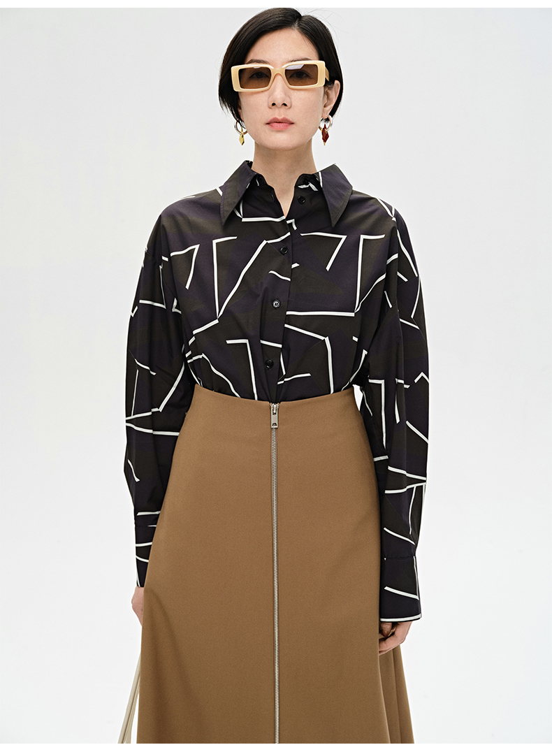 HIDEMI “我们做印花”特殊纸感几何桌椅剪影式印花廓形衬衫