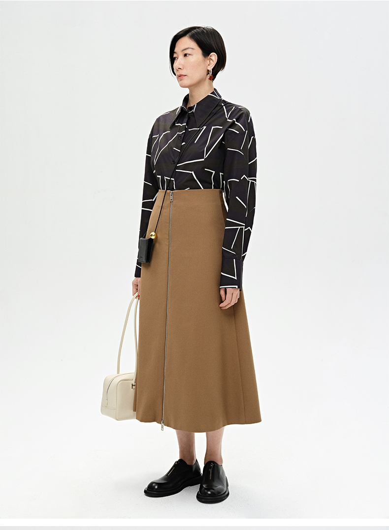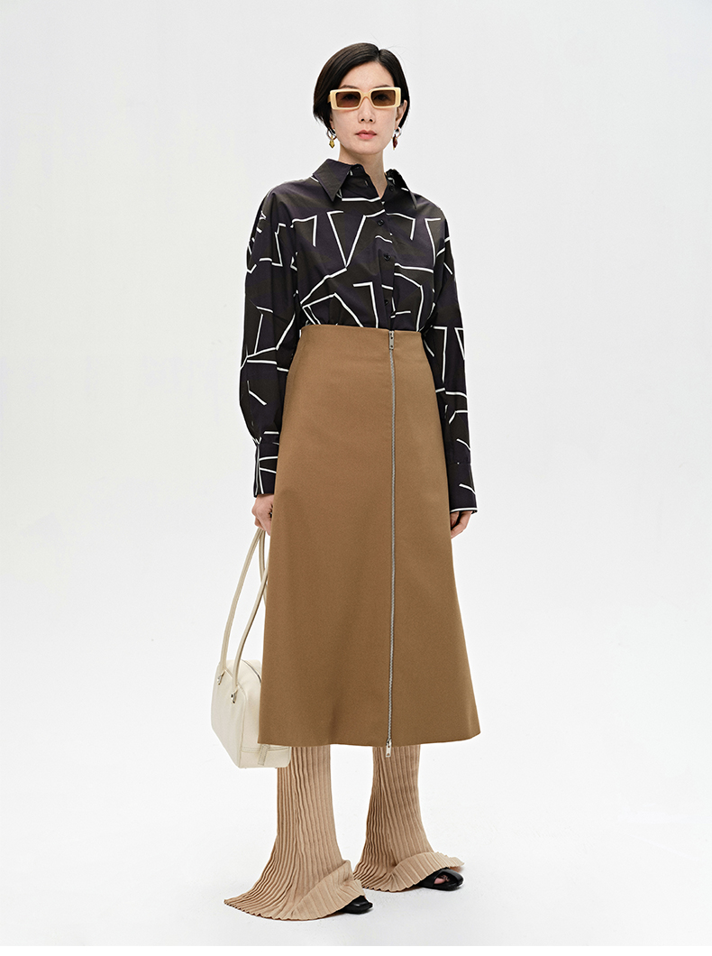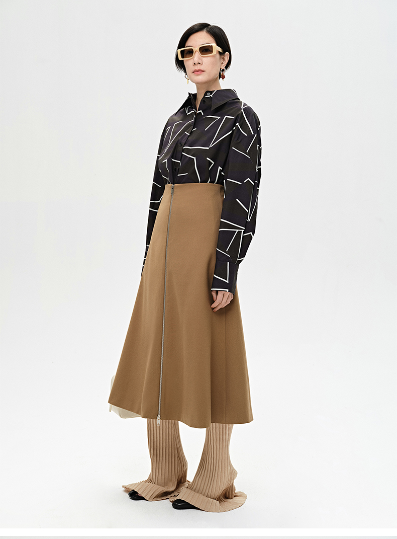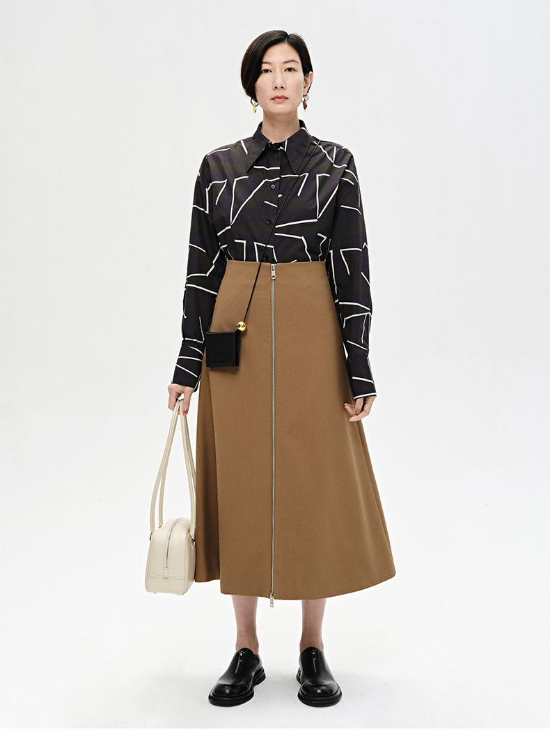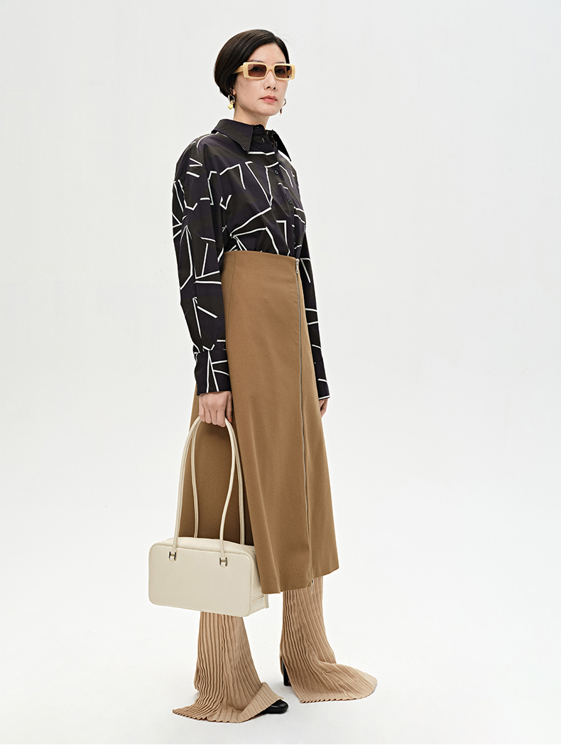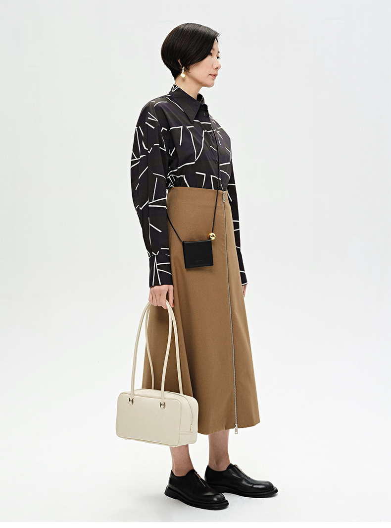HIDEMI “我们做印花”特殊纸感几何桌椅剪影式印花廓形衬衫