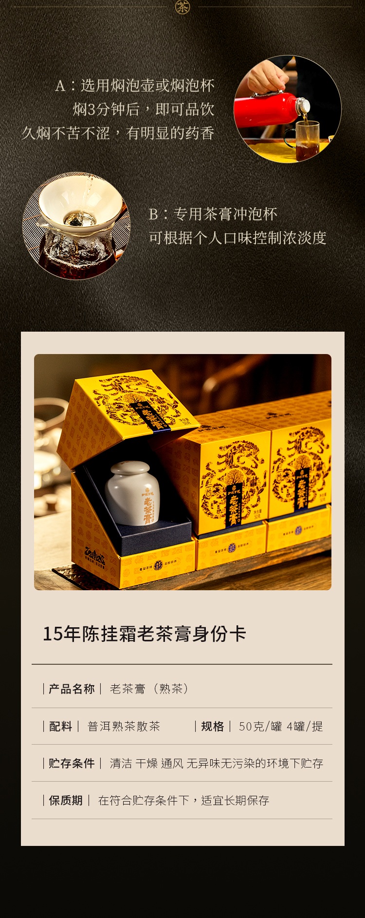 【高奢稀缺好物】【十五年陈挂霜老茶膏】可以喝的古董,重度稀缺产品,有白霜的茶膏极少见, 这种茶膏又称石乳,50g/罐,四罐一提