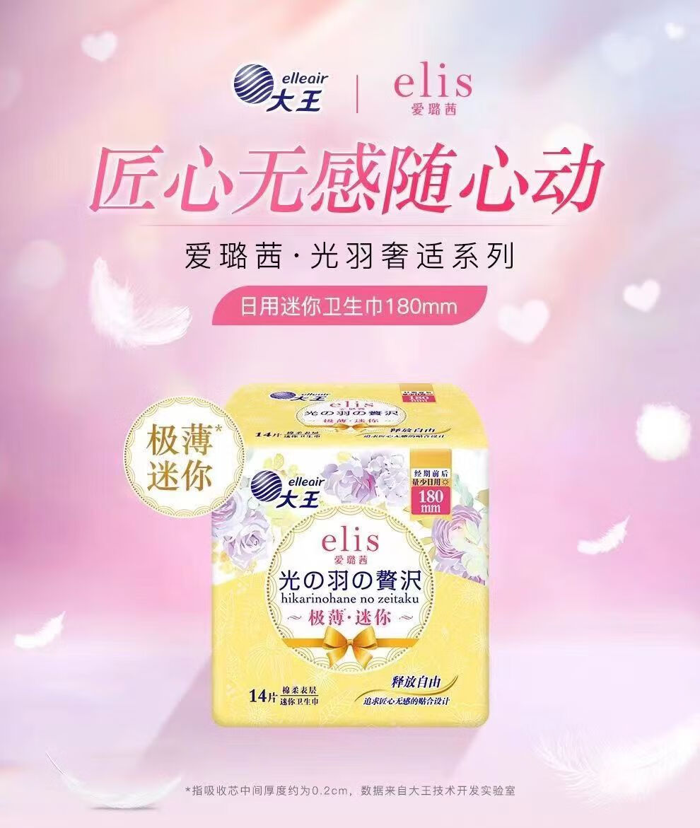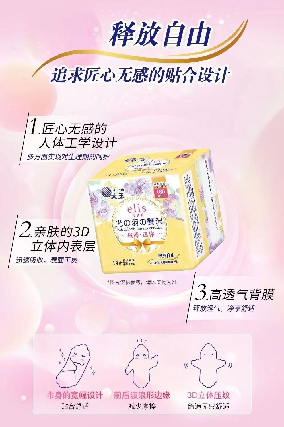 大王光羽奢适极薄棉柔日用卫生巾180mm 14片/份