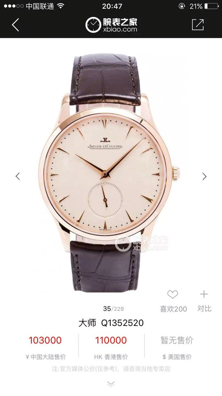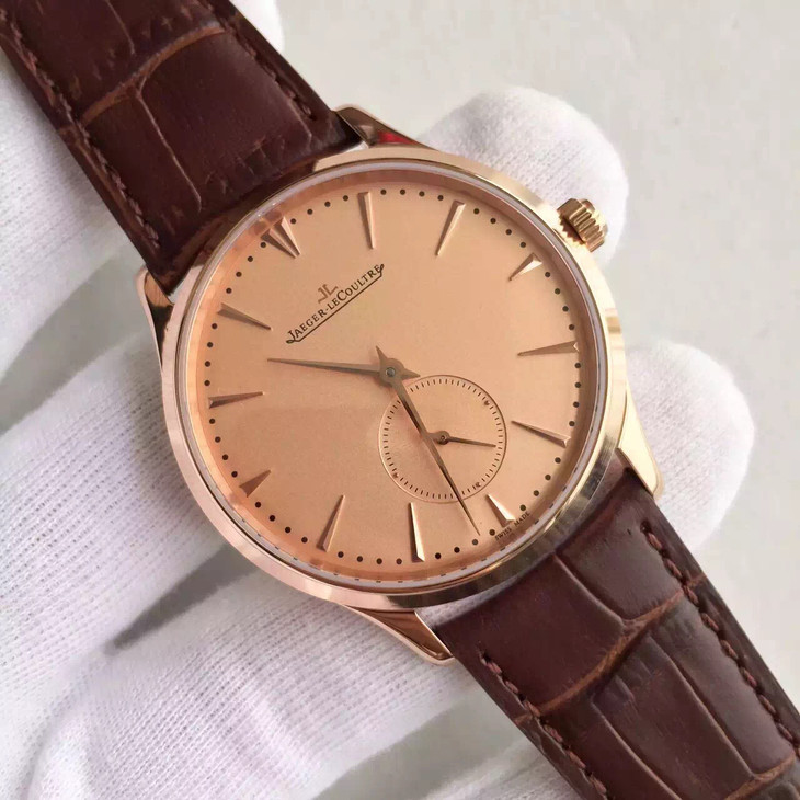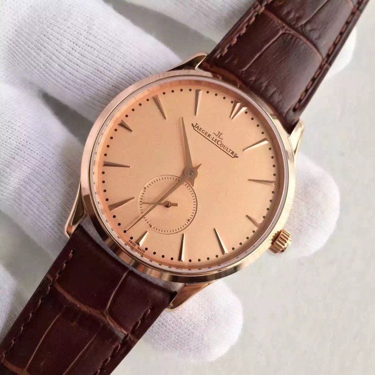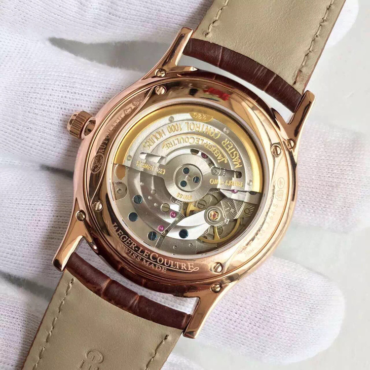 ZF积家大师系列Q1352520,定制原版Cal.896自动机械机芯。零件数:242个,动力储备:40小时,表带材质:牛皮,39mm直径,男士手表,透底