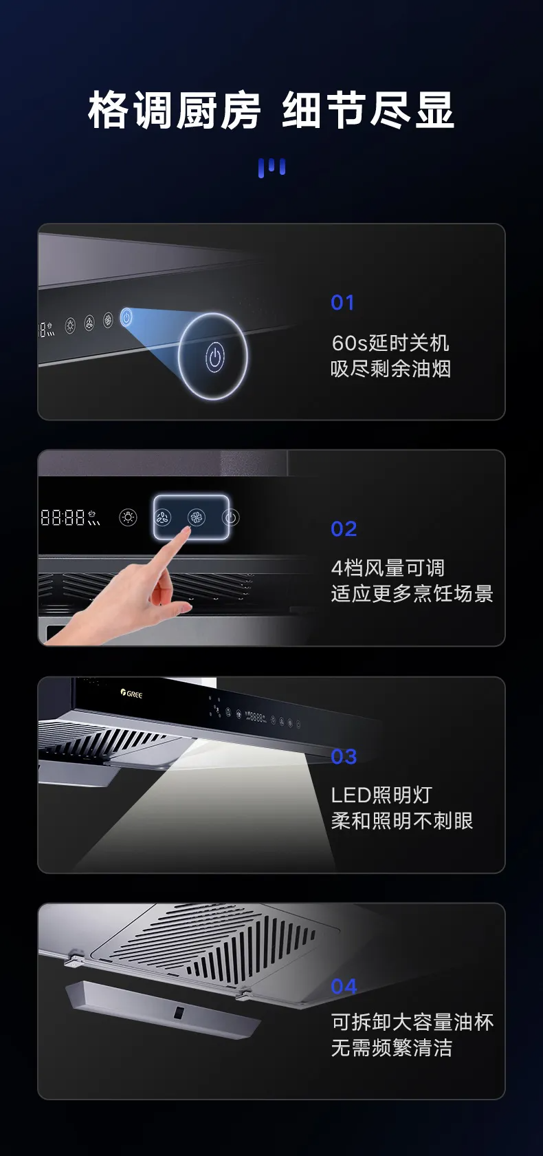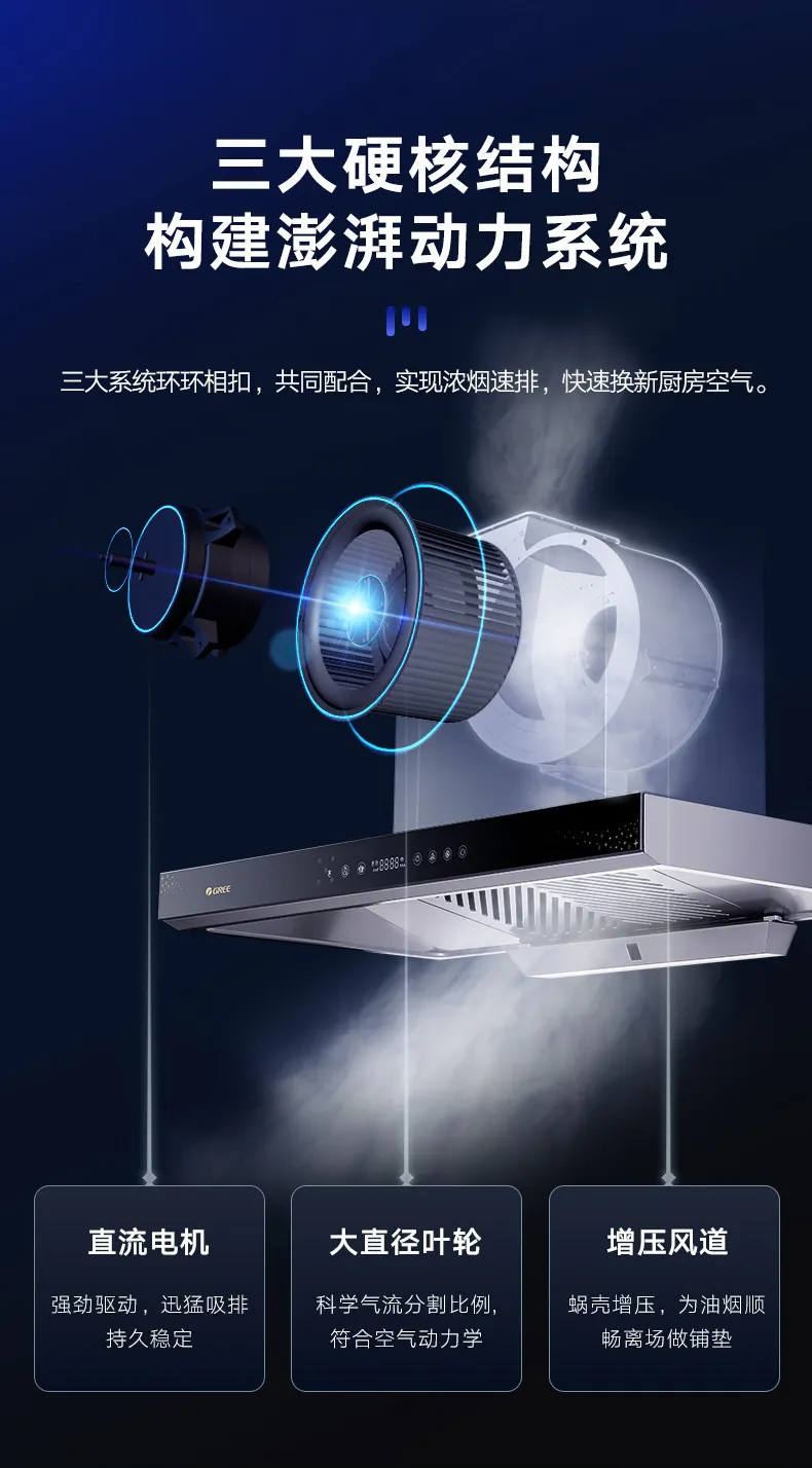 格力·顶吸式 吸油烟机 CXW-200-T6S70 深空紫灰