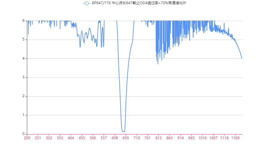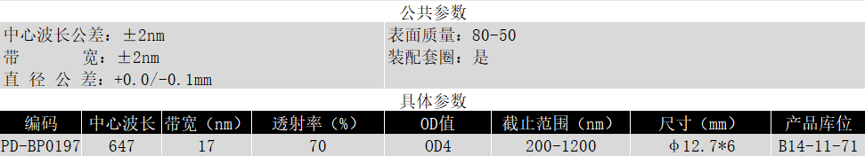 BP647/17K OD4@200-1200 T>70% Φ12.7*6 带通滤光片 (带套圈)