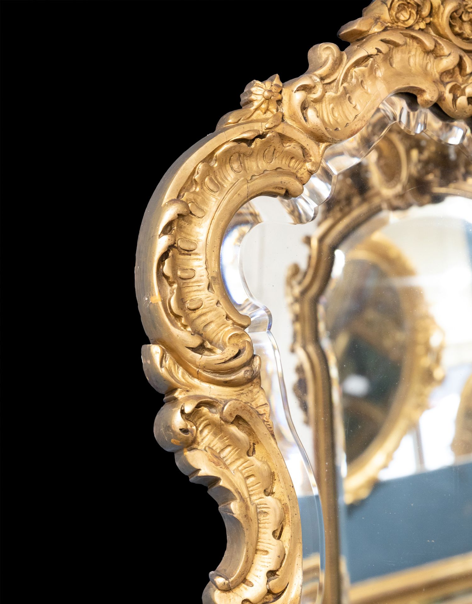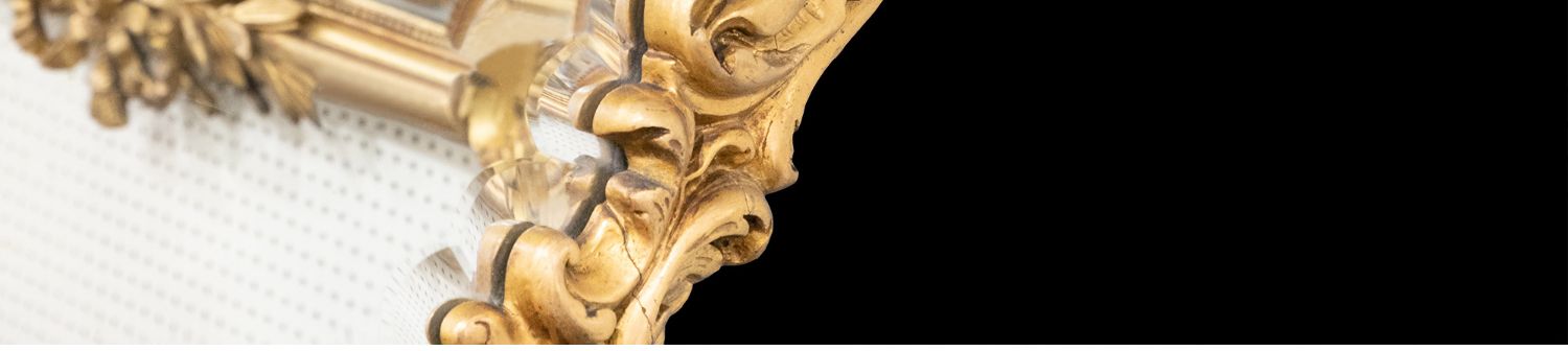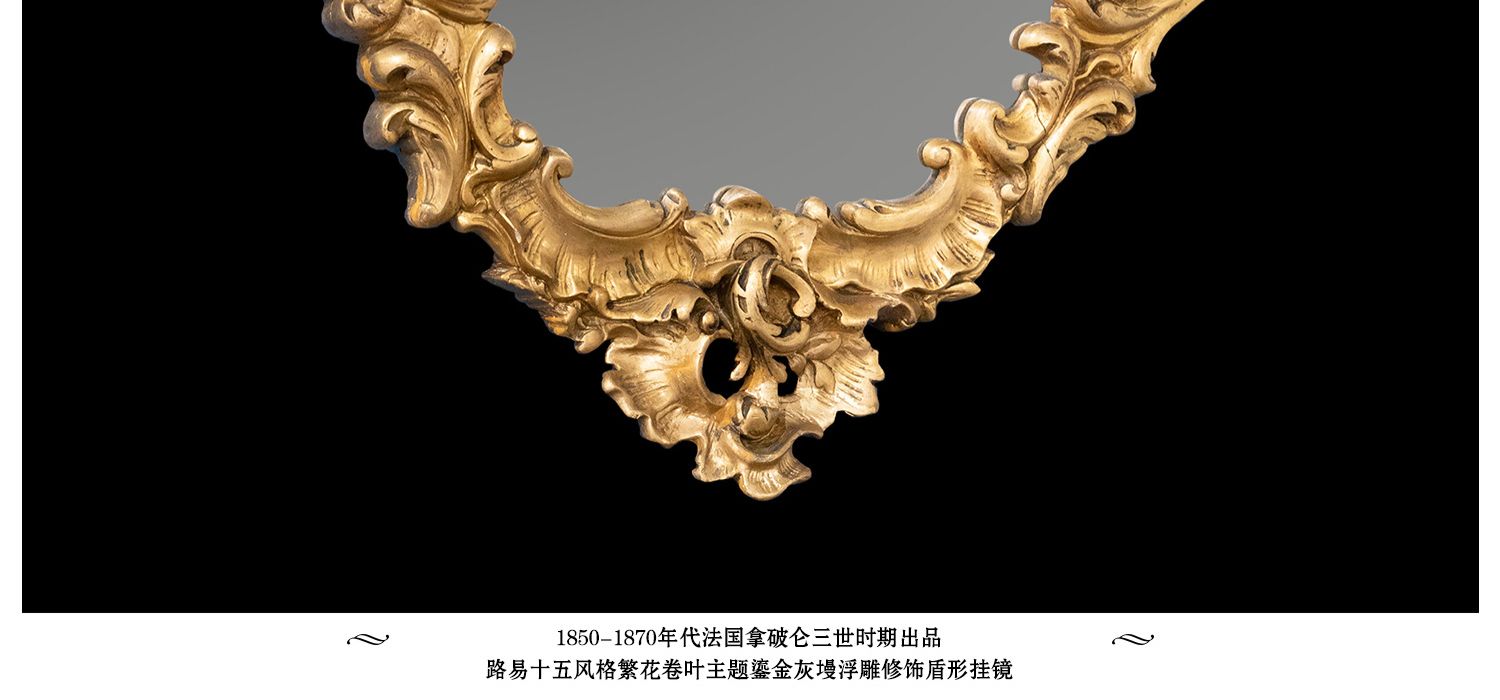 独角鹿西洋古董法国路易十五风格繁花卷叶鎏金灰墁浮雕盾形挂镜