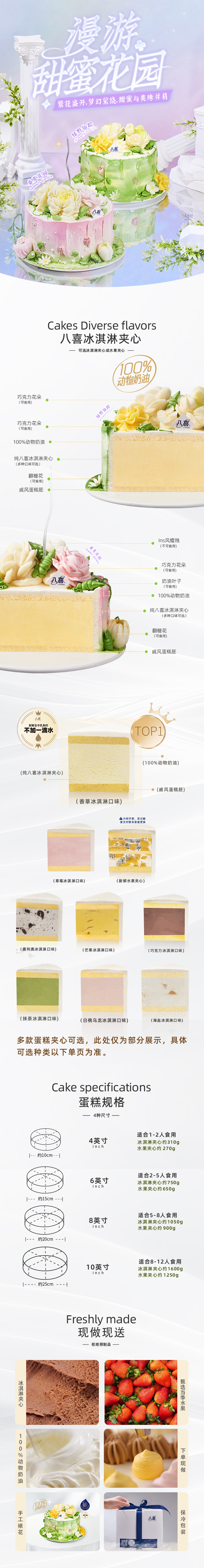 ※【四季八喜】6英寸经典-冰淇淋生日蛋糕