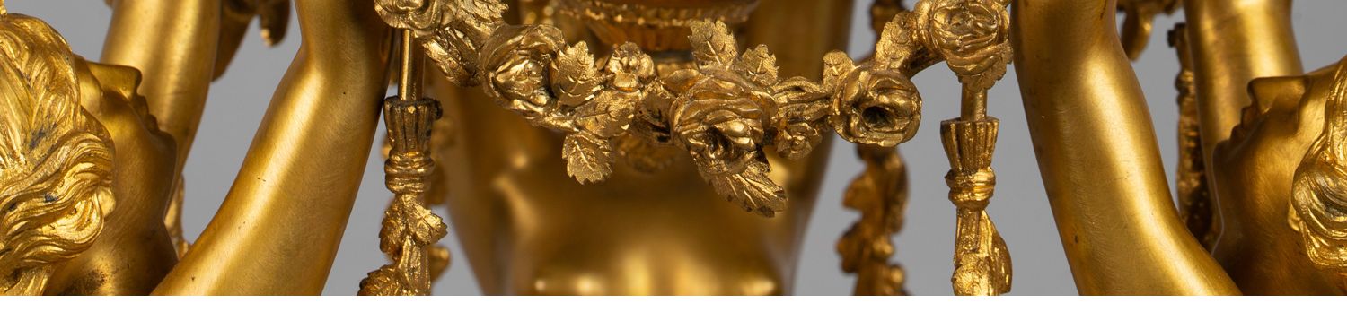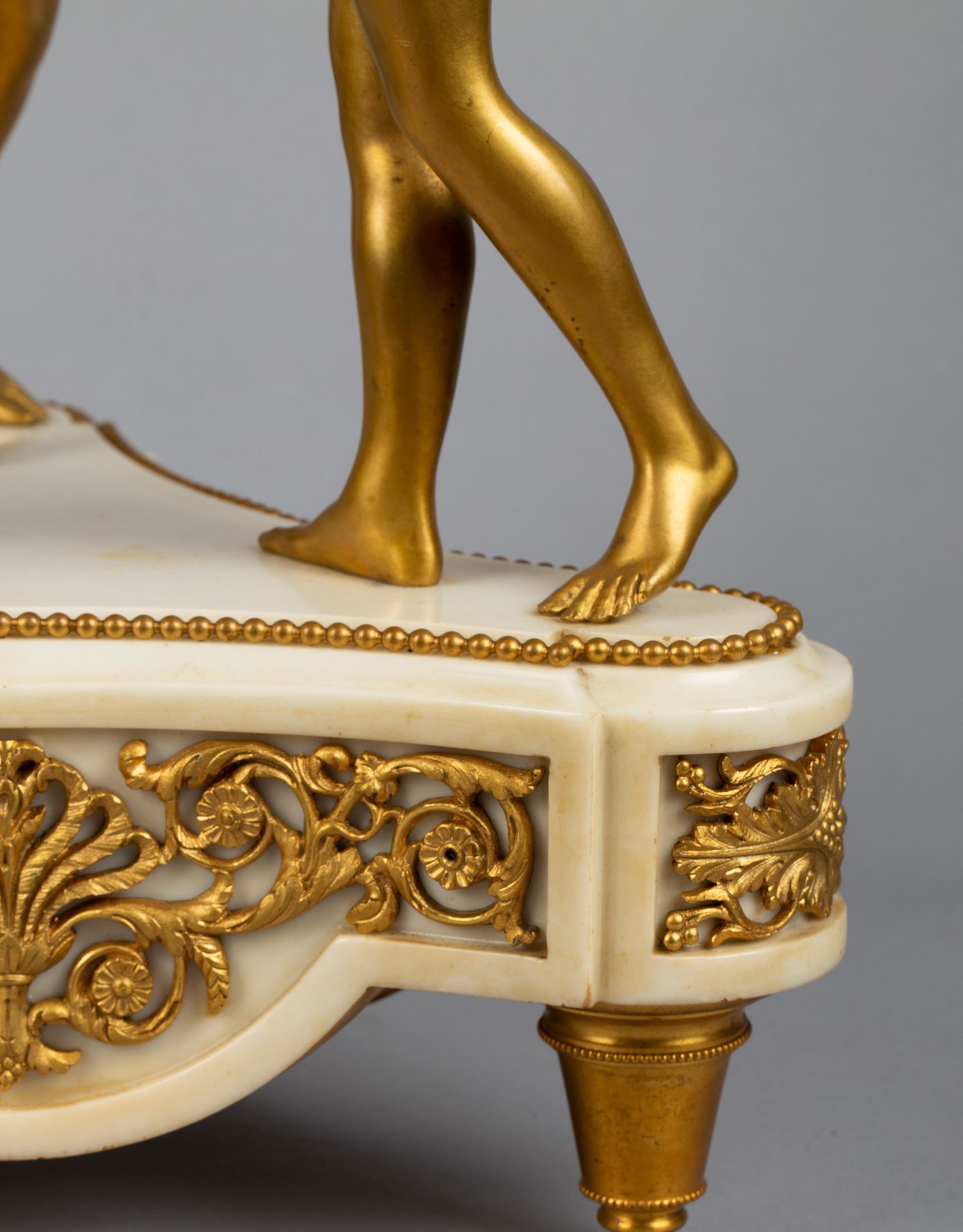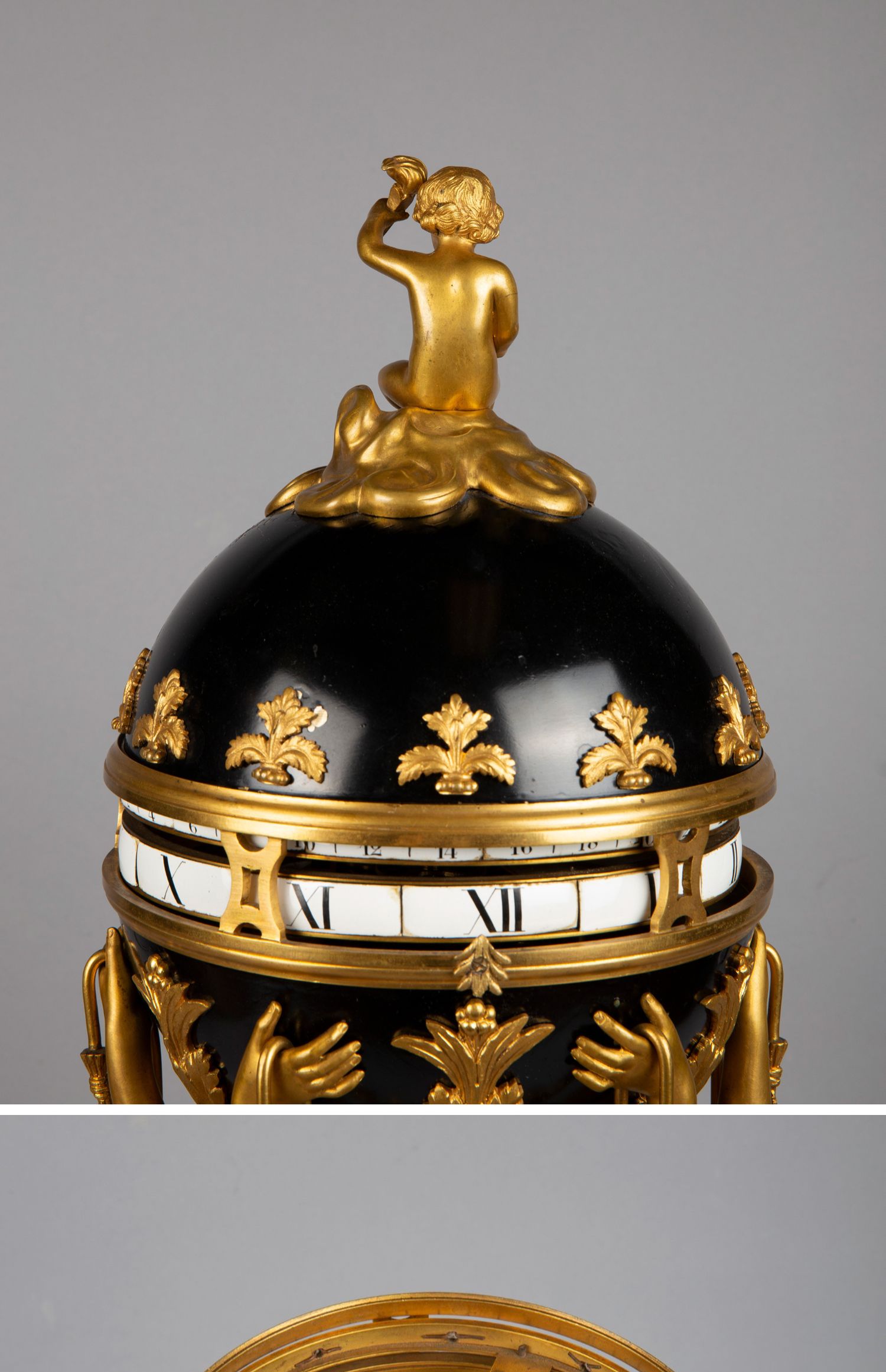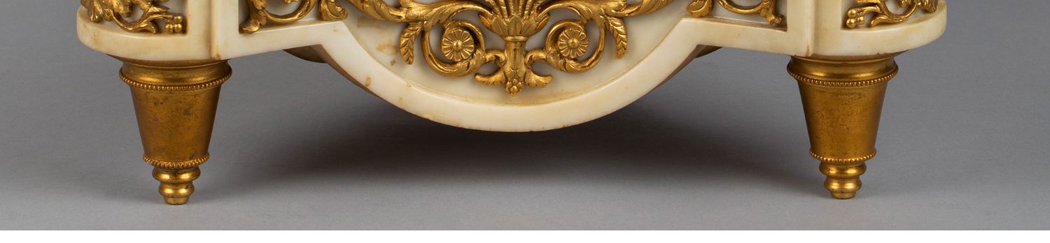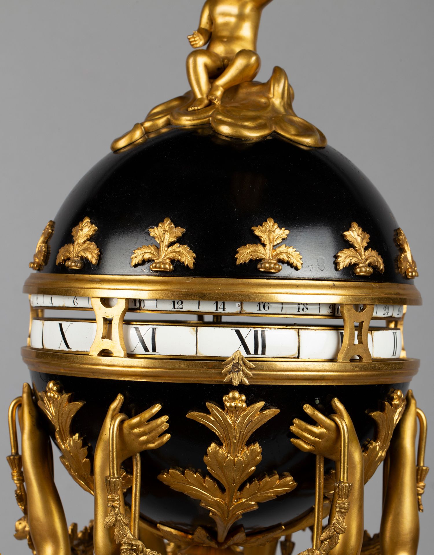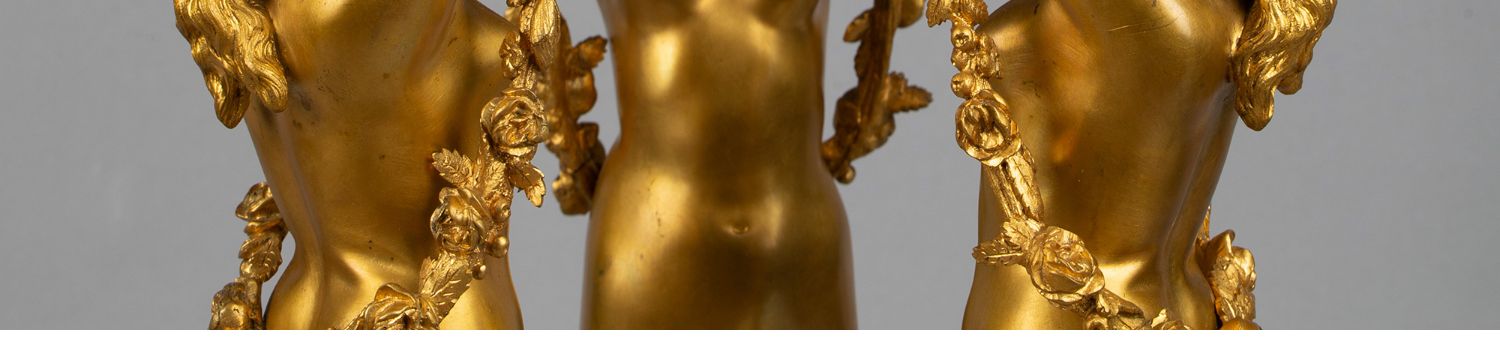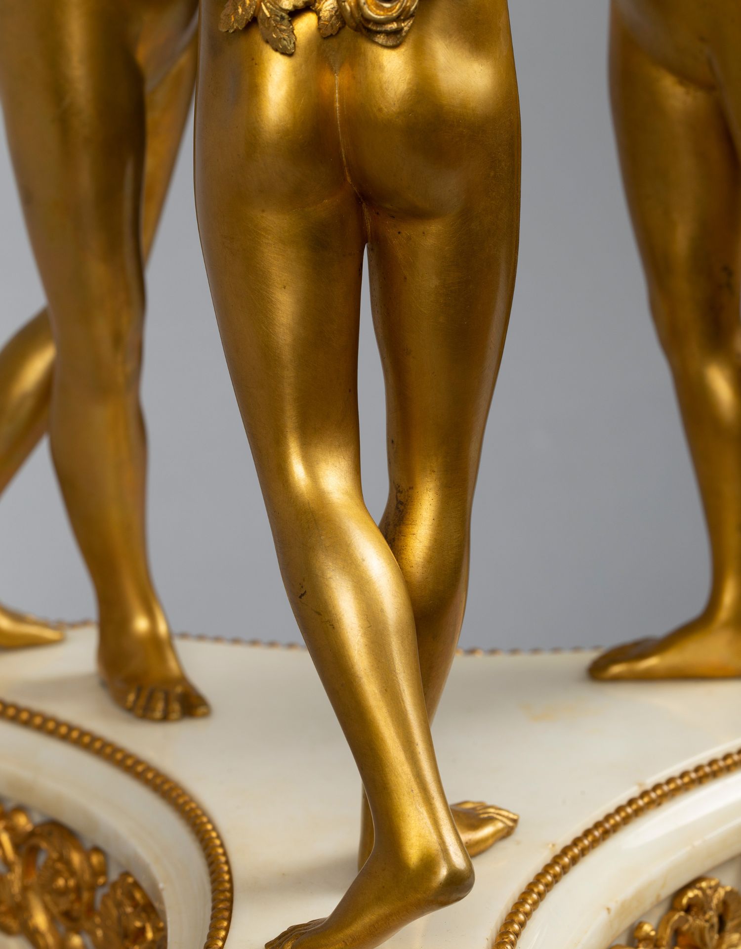 独角鹿西洋古董白色大理石铜鎏金美惠三女神托举水平旋转球形座钟