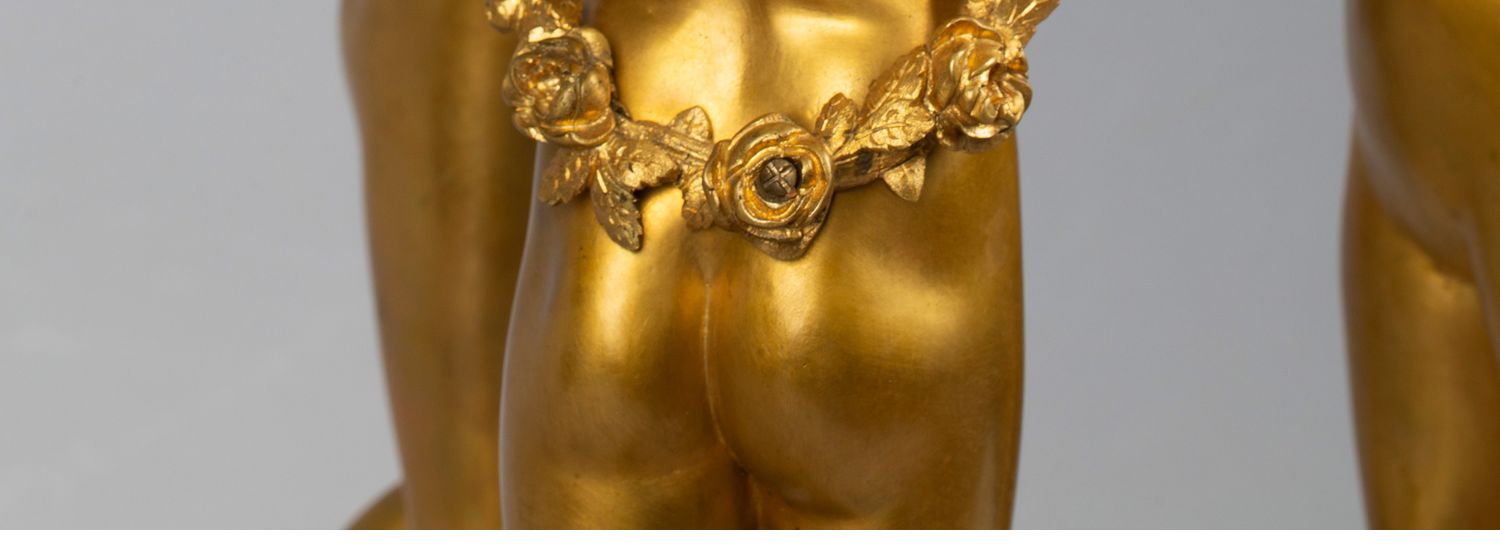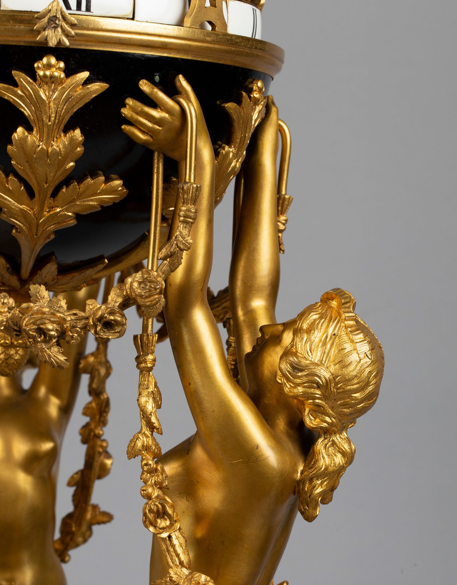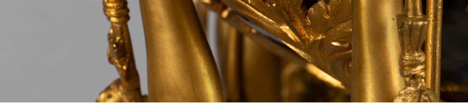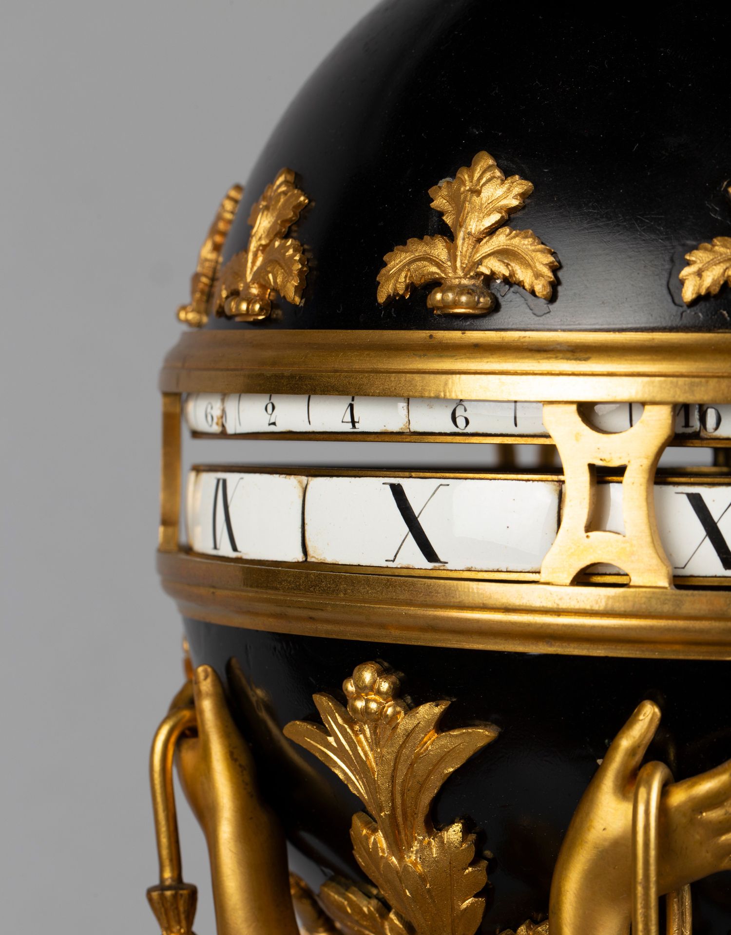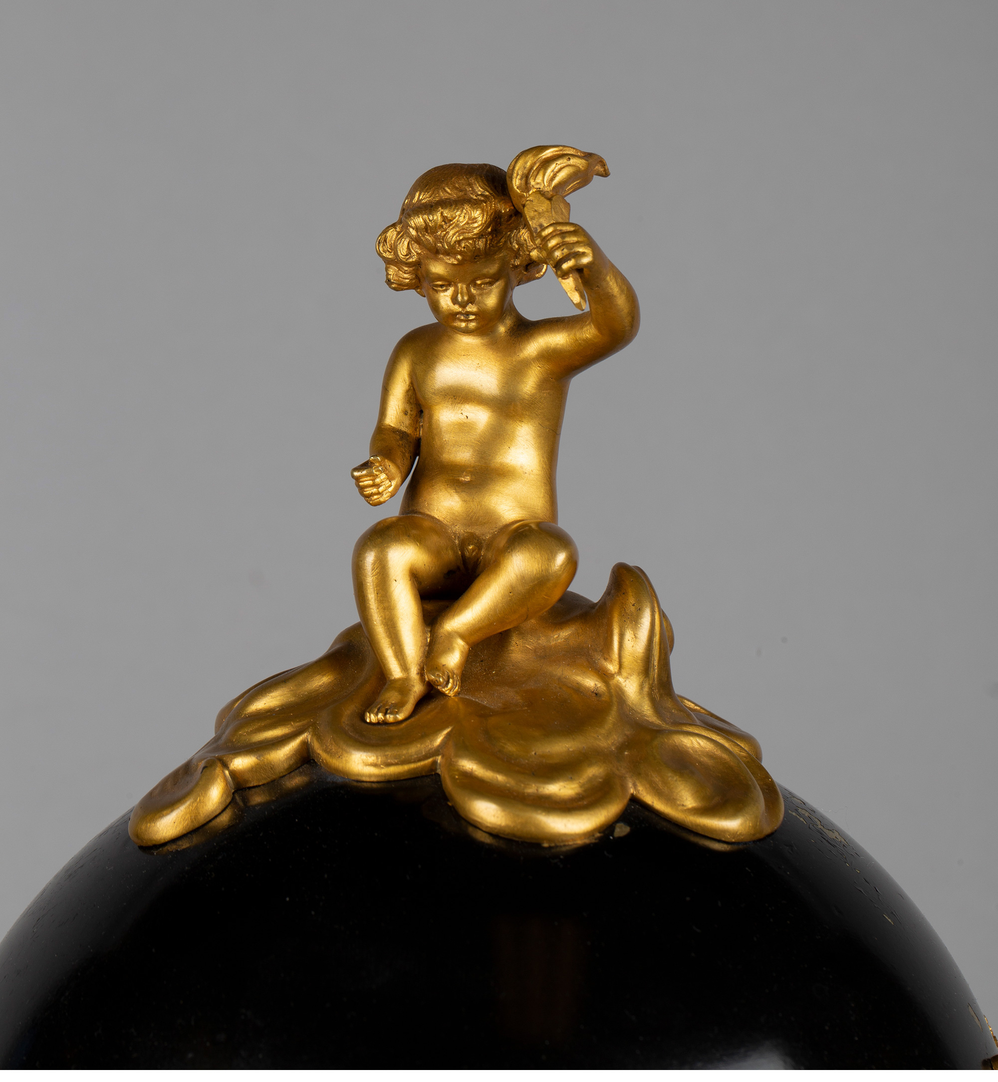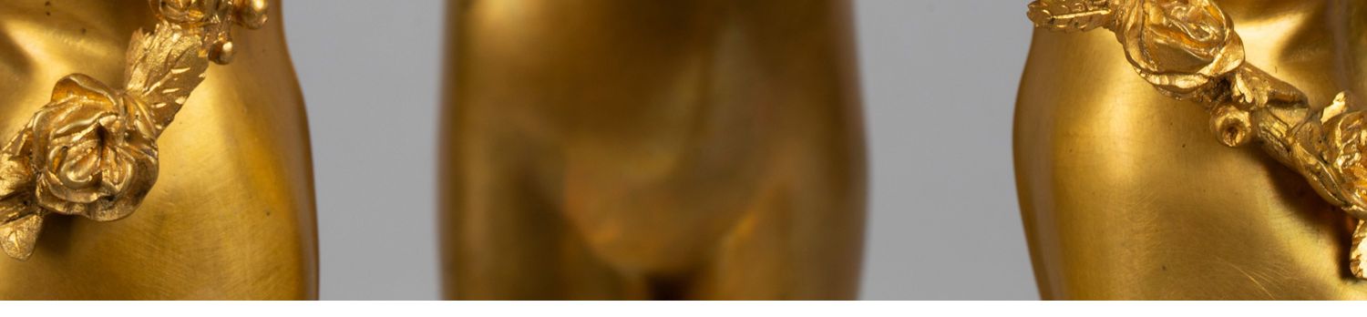 独角鹿西洋古董白色大理石铜鎏金美惠三女神托举水平旋转球形座钟