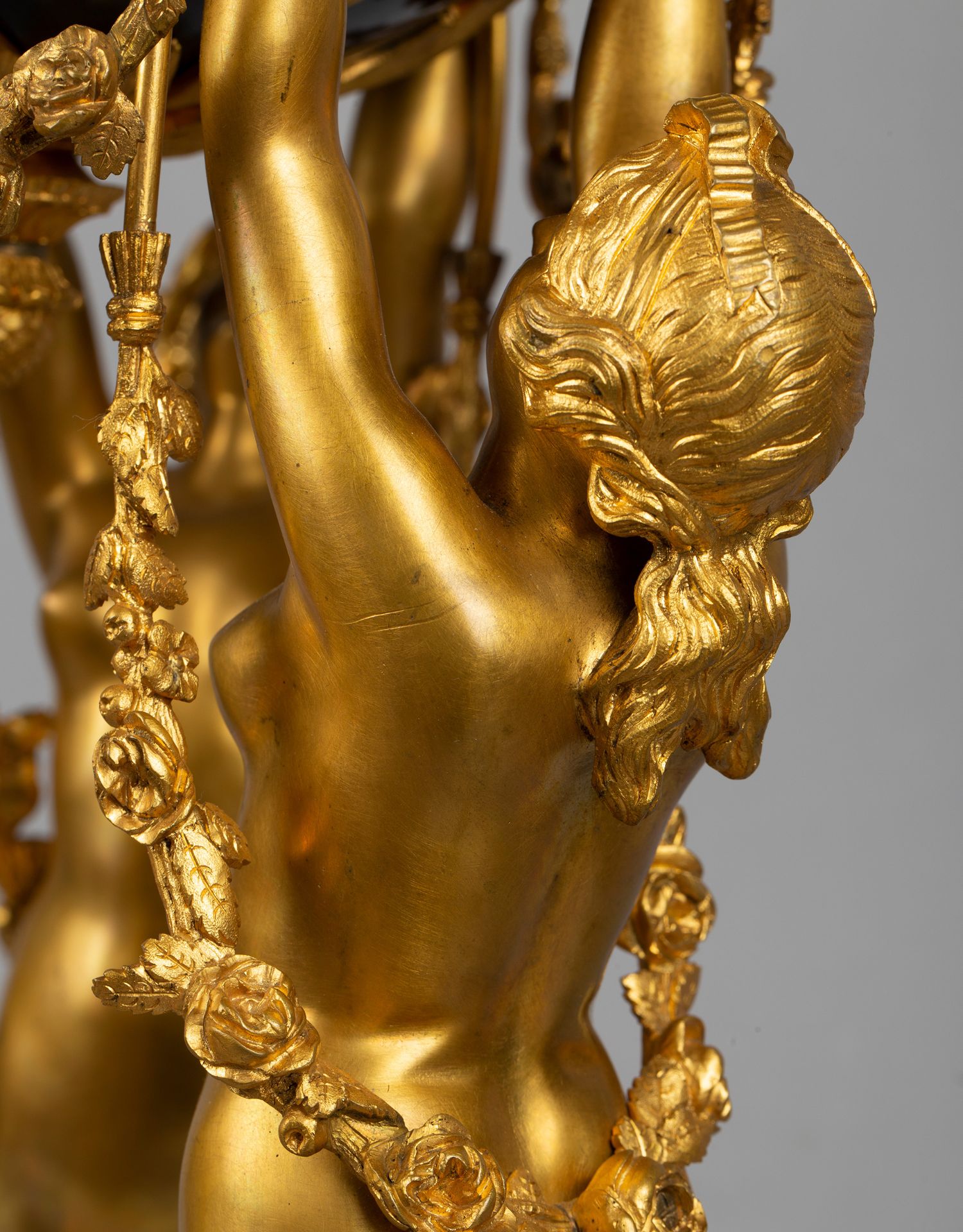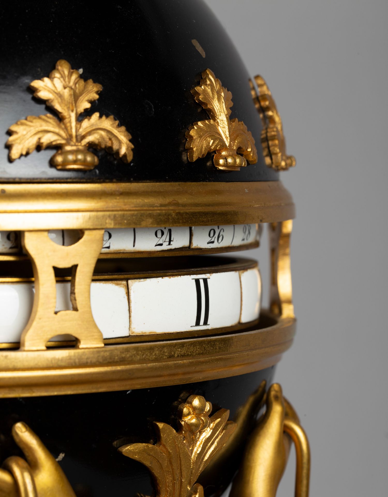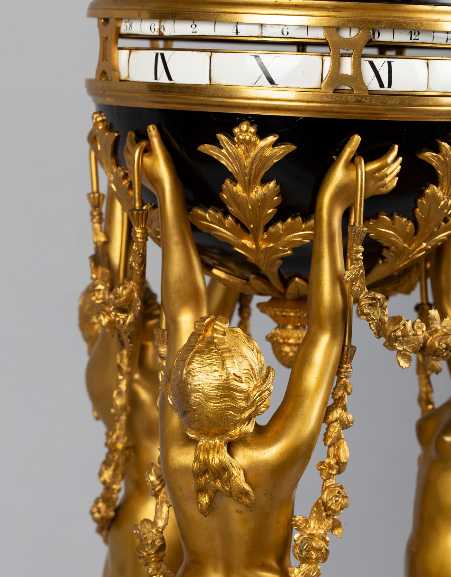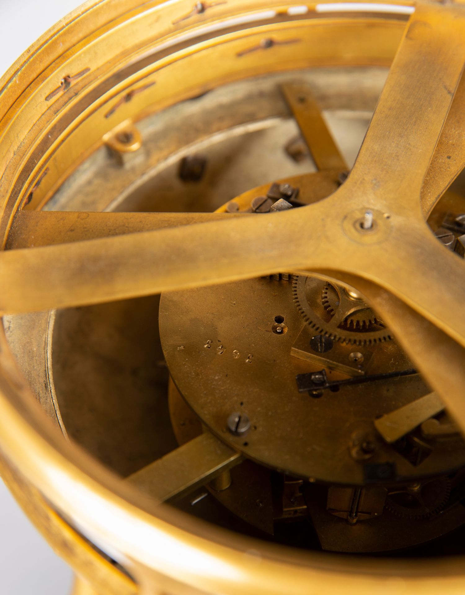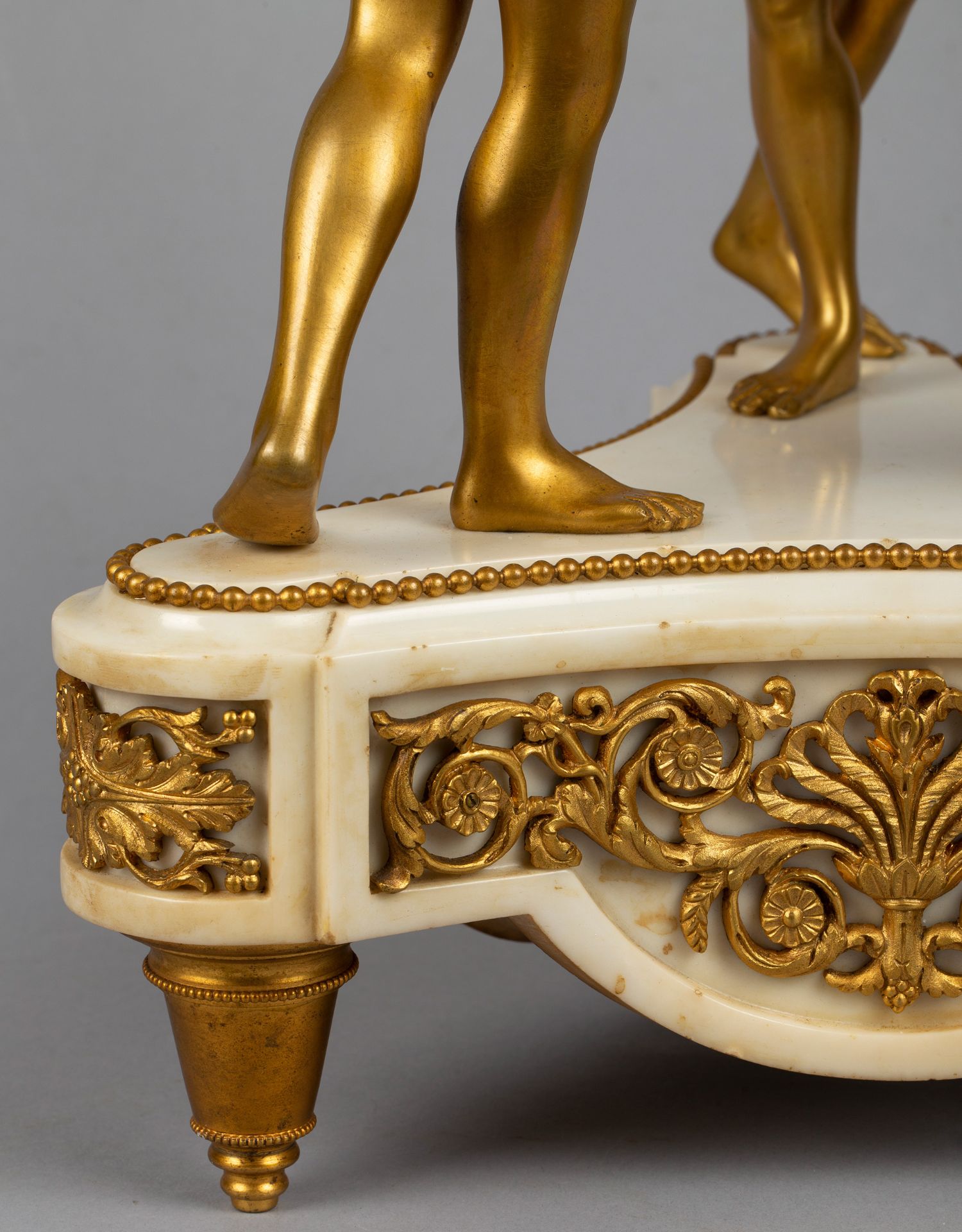 独角鹿西洋古董白色大理石铜鎏金美惠三女神托举水平旋转球形座钟