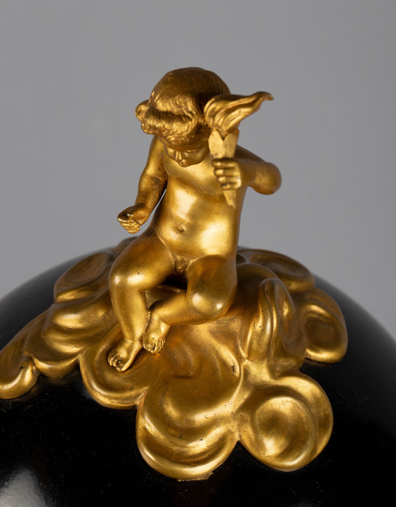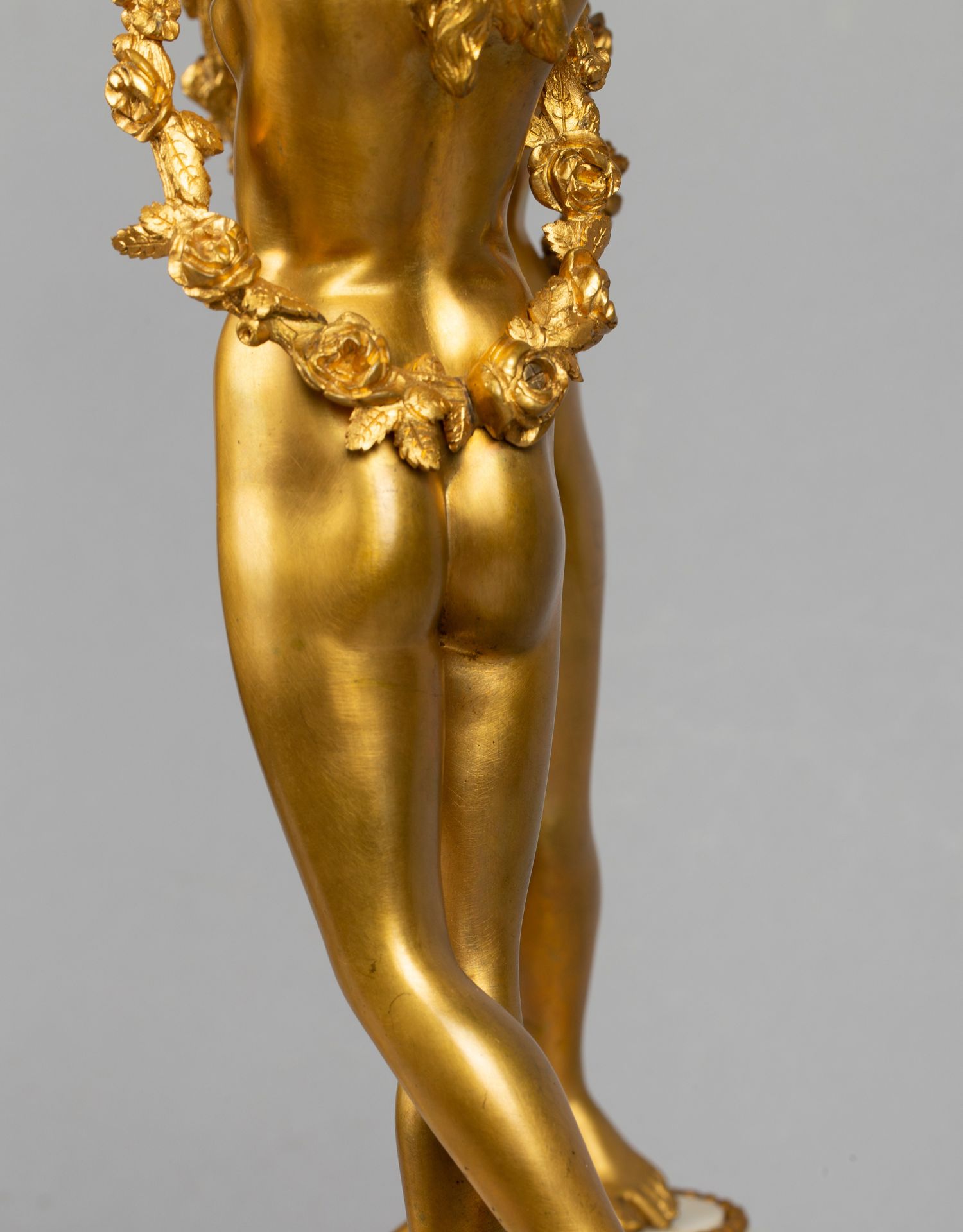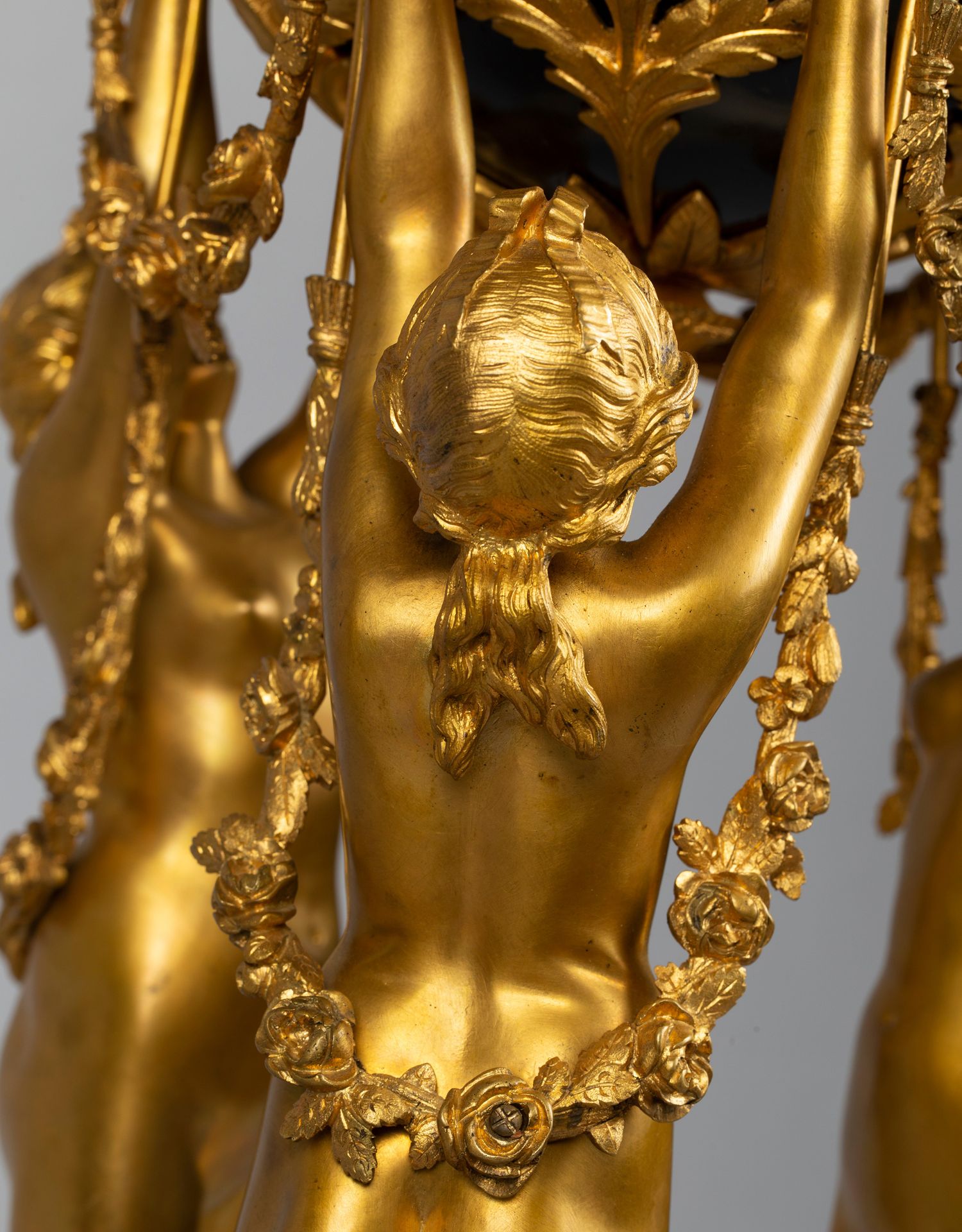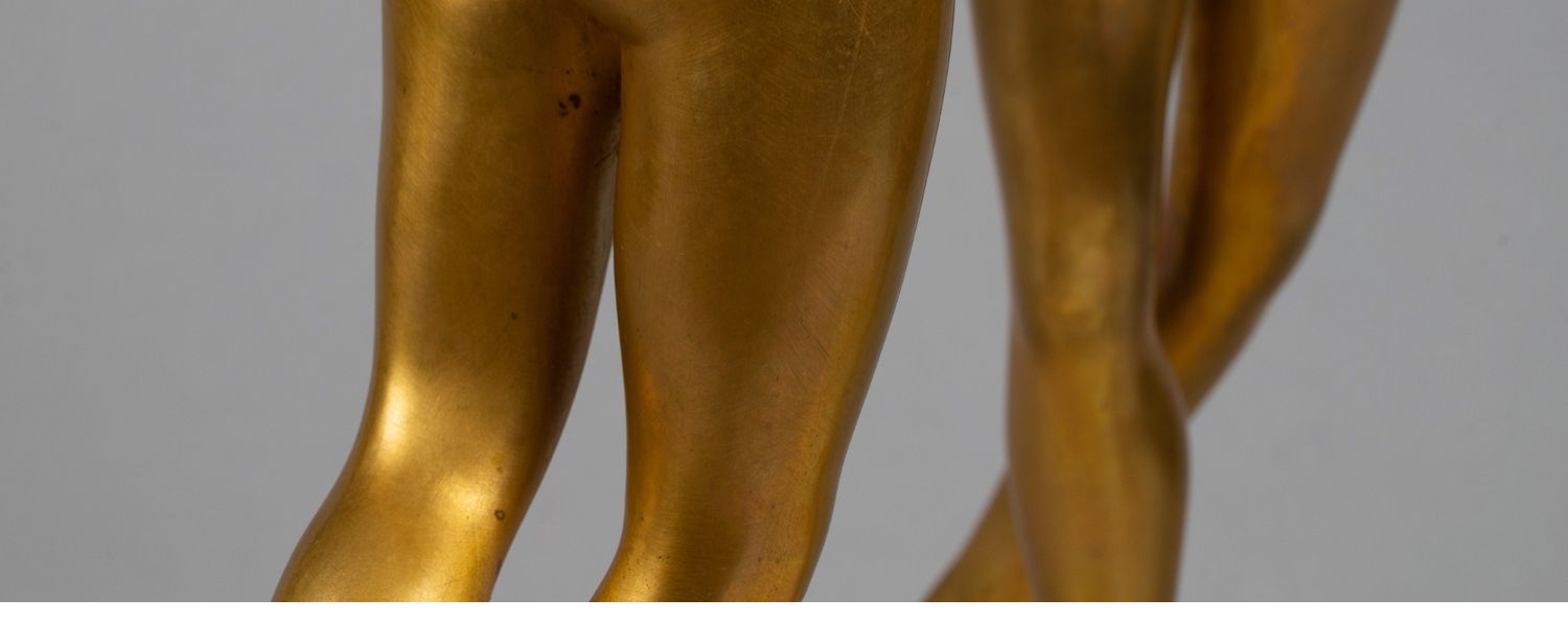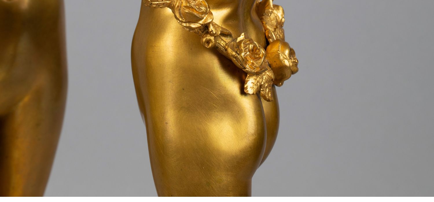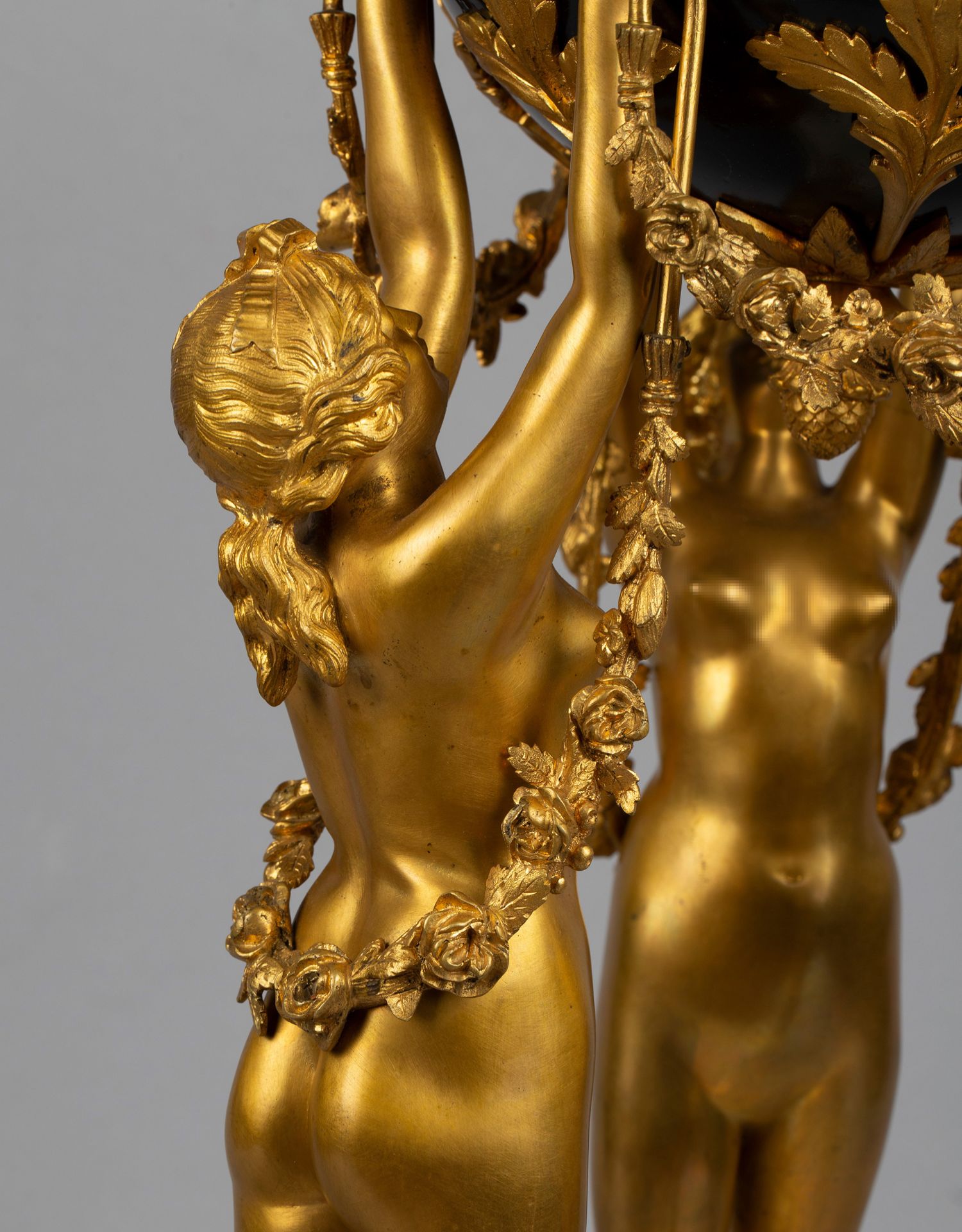独角鹿西洋古董白色大理石铜鎏金美惠三女神托举水平旋转球形座钟
