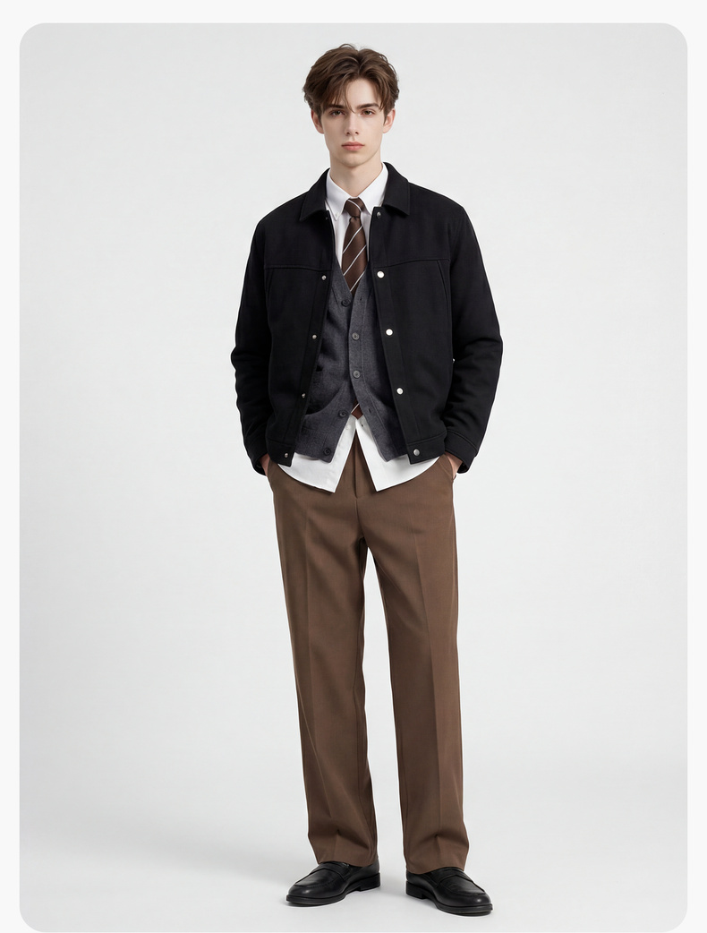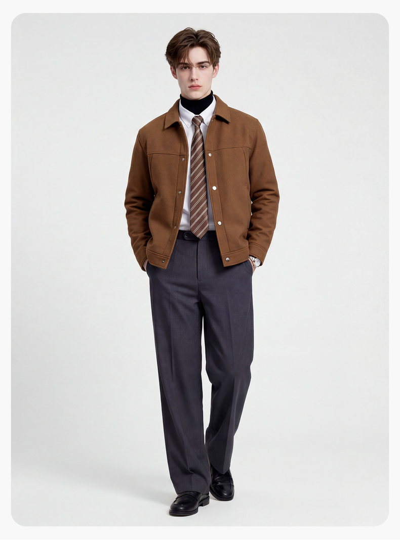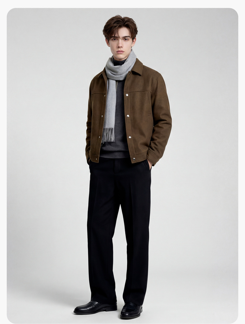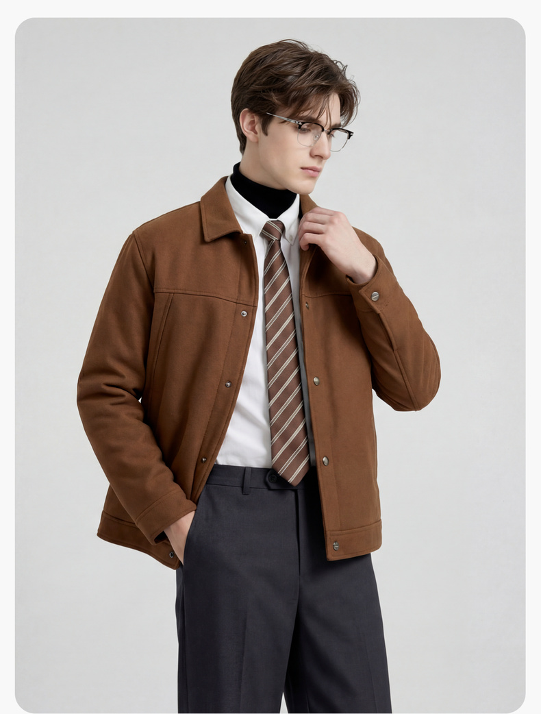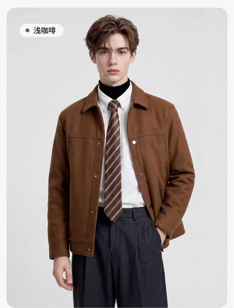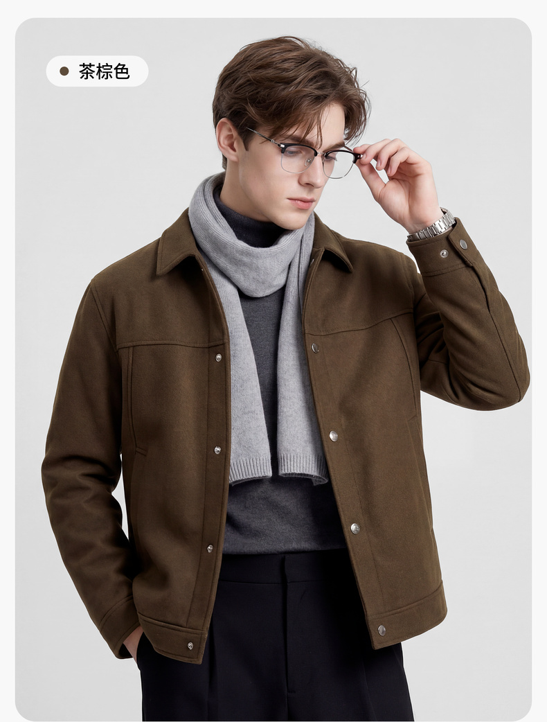【含羊毛】圣得西男士夹克2025年秋季新款抗皱耐磨商务翻领外套