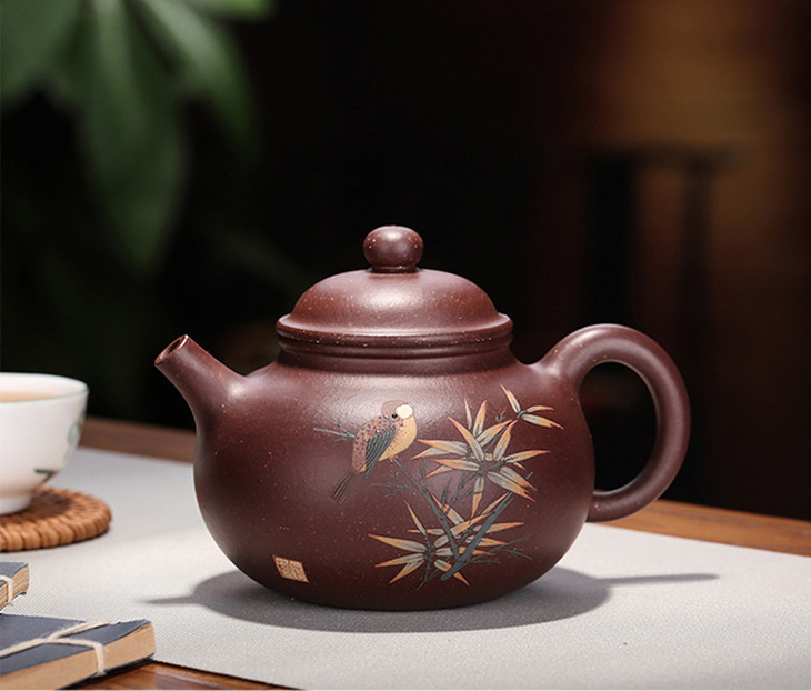 【圈钮】作者:冯娟(制壶)王龙(泥绘)泥料:紫泥 容量:280cc