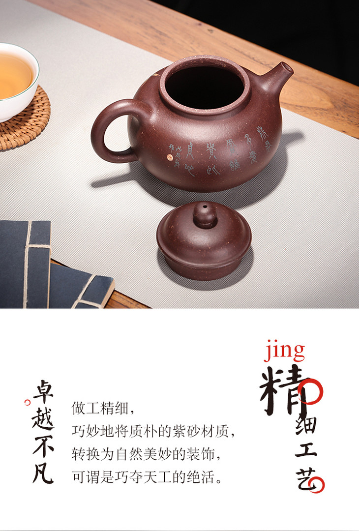 【六方石瓢】 原矿紫泥 200cc 双名师作品 朱永强 陶刻 程文兵