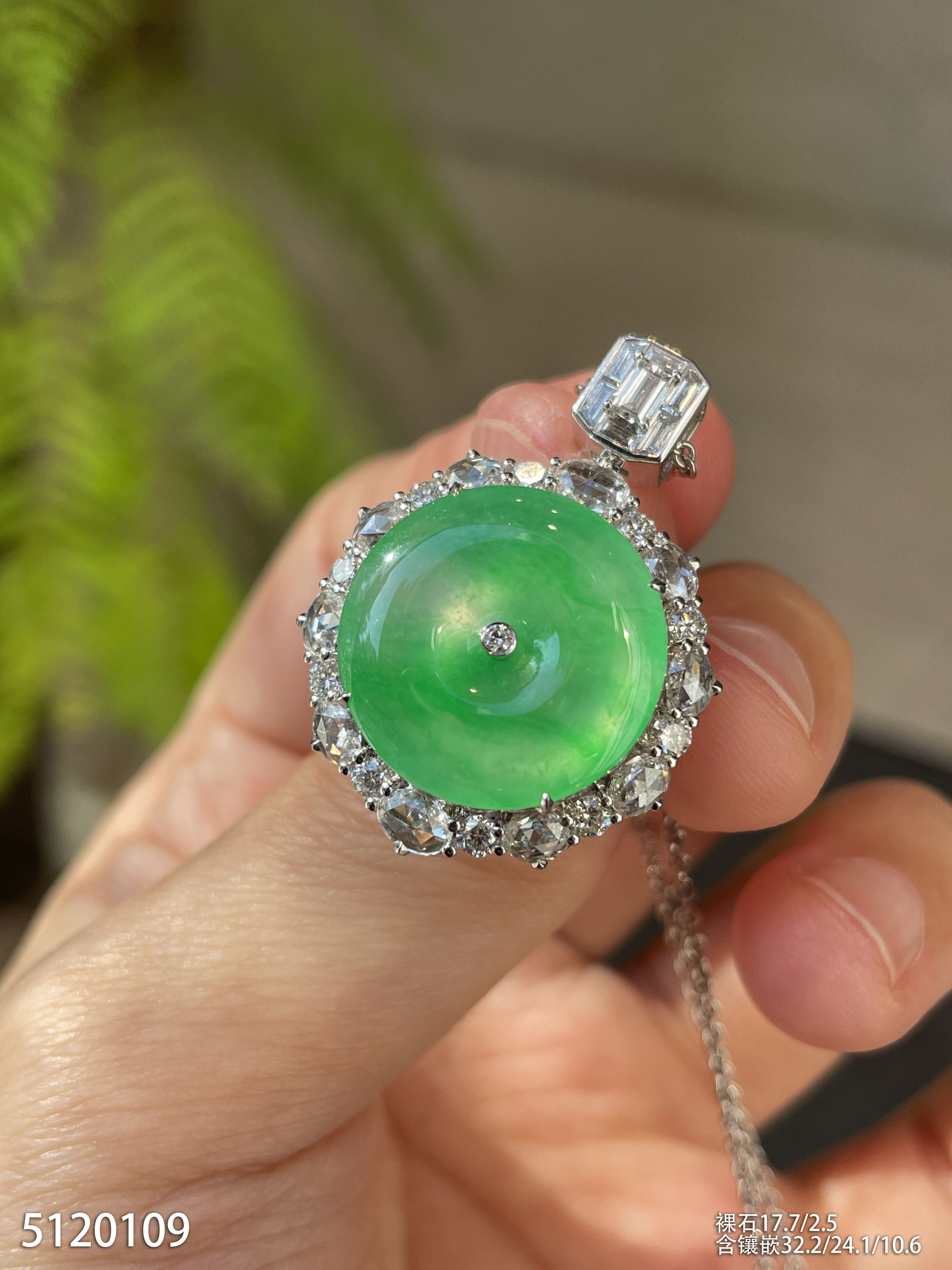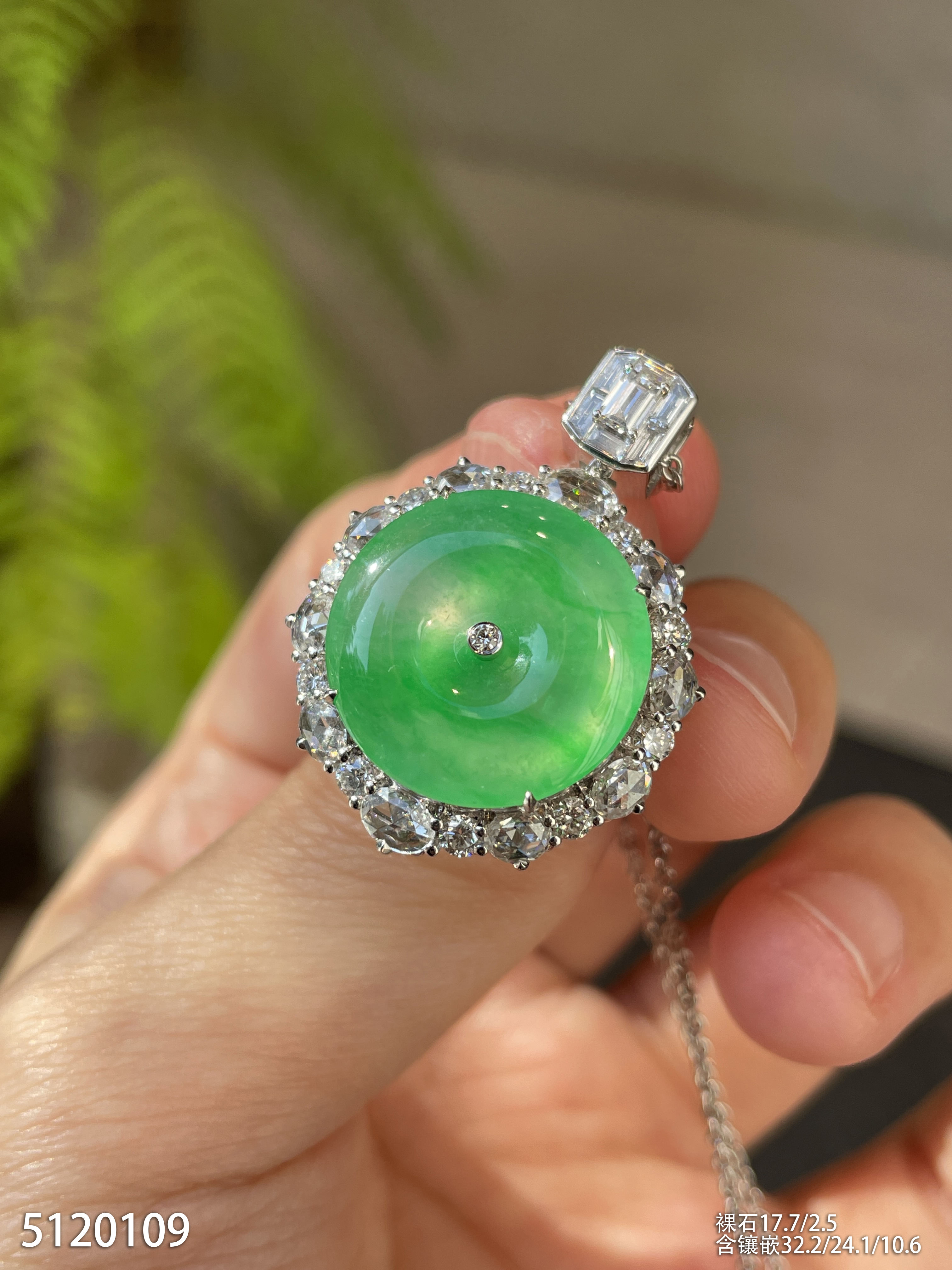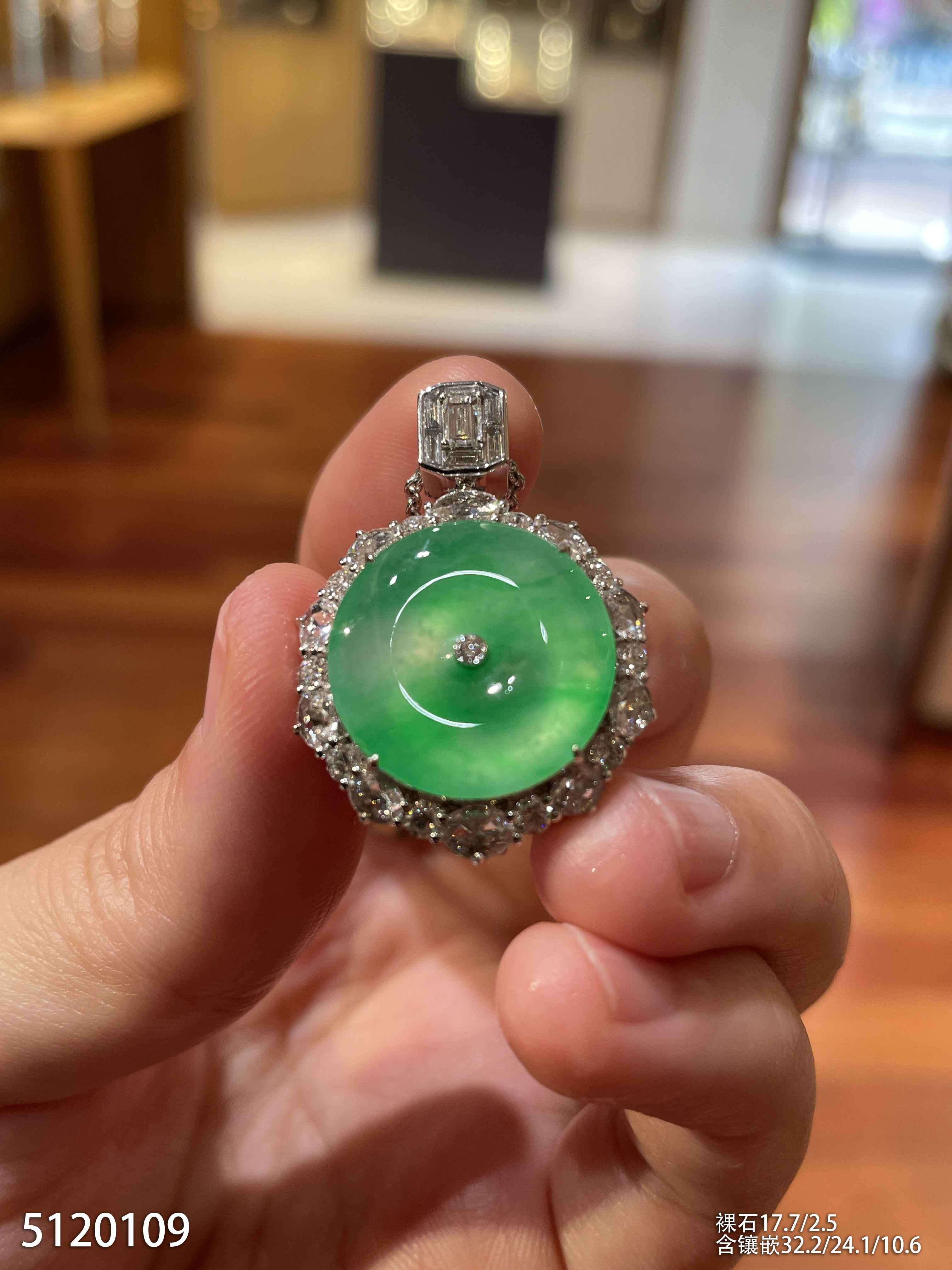 玻璃种木那艳绿平安扣吊坠【5120109】具体价格微信咨询