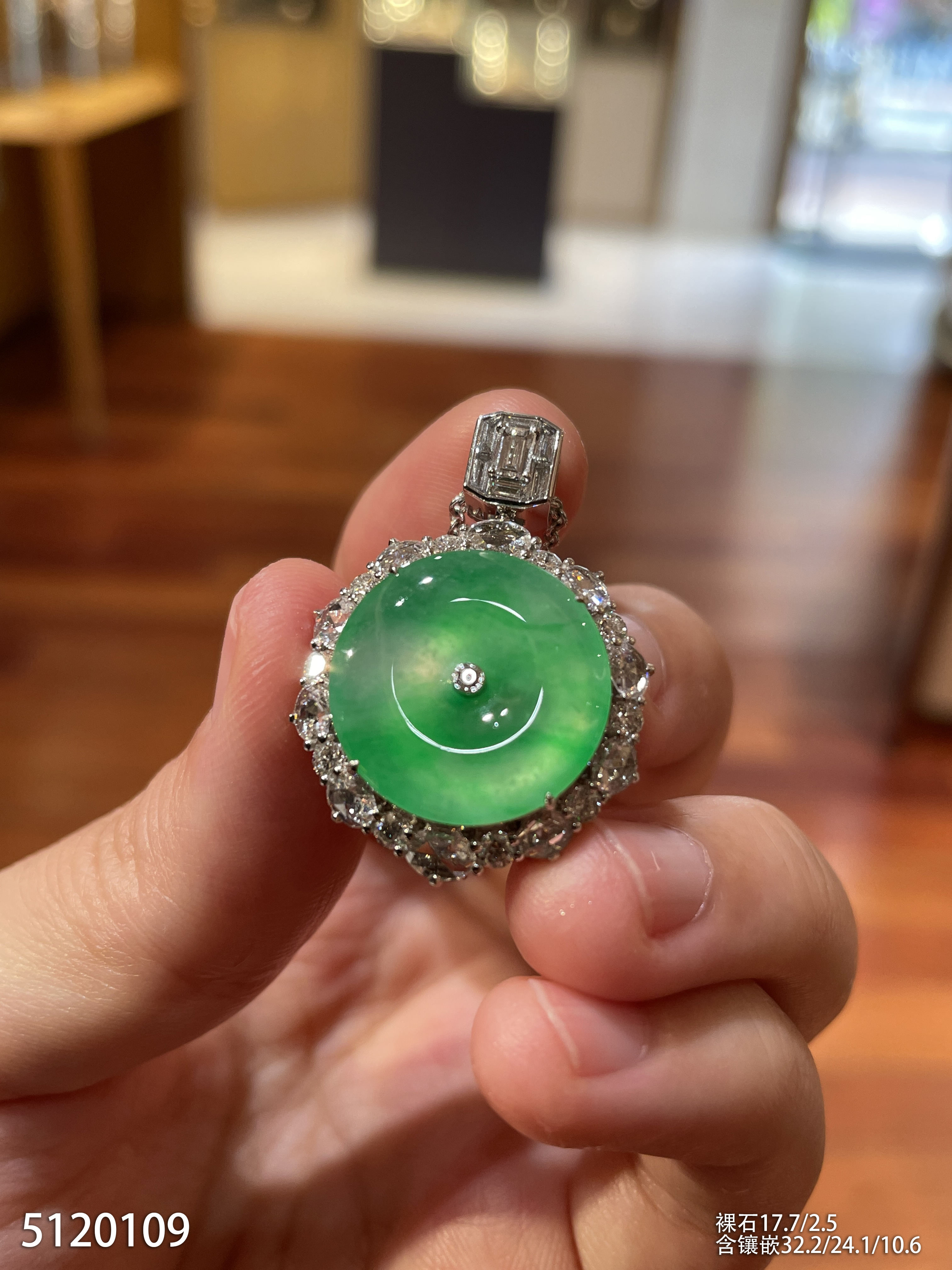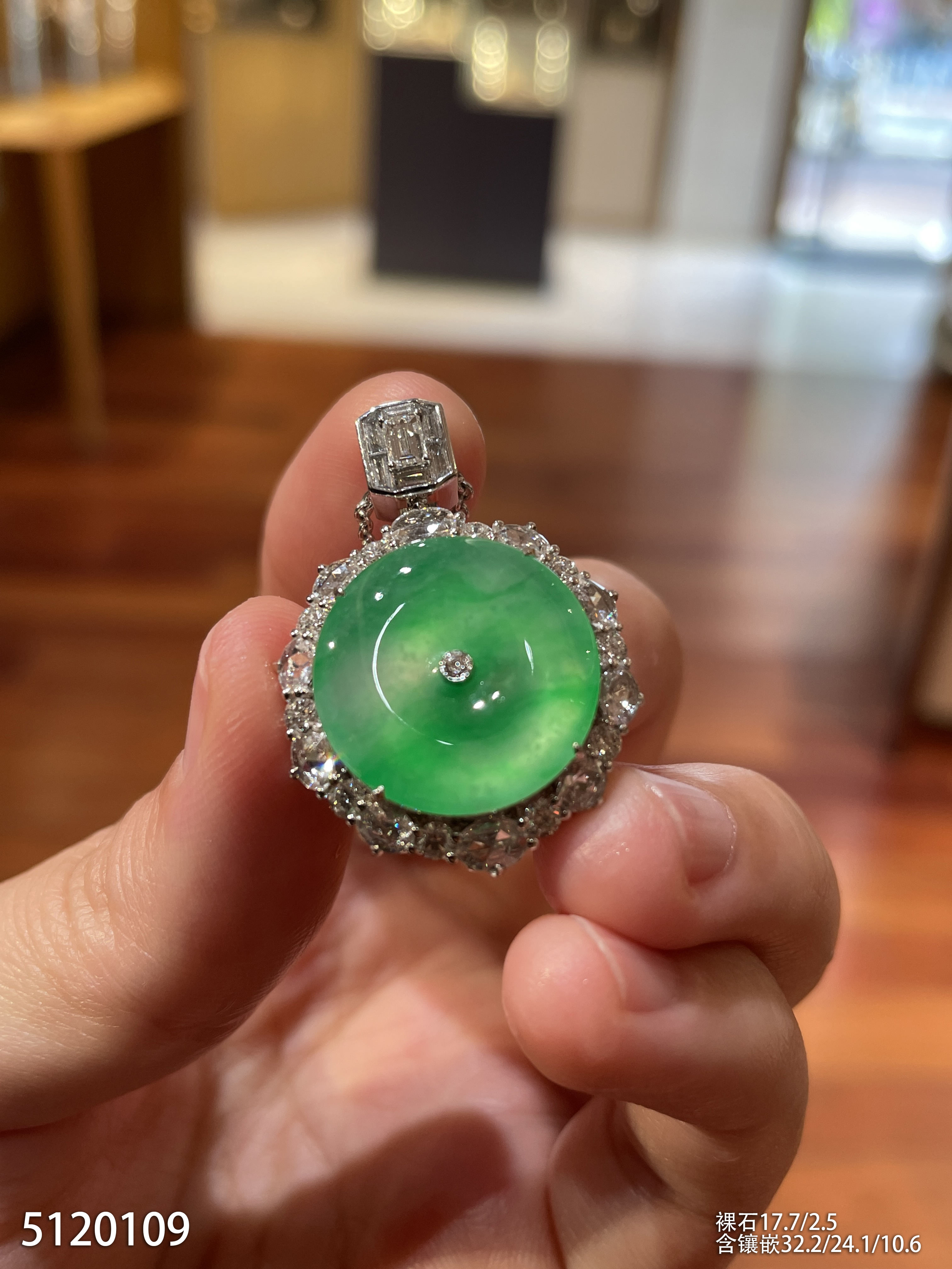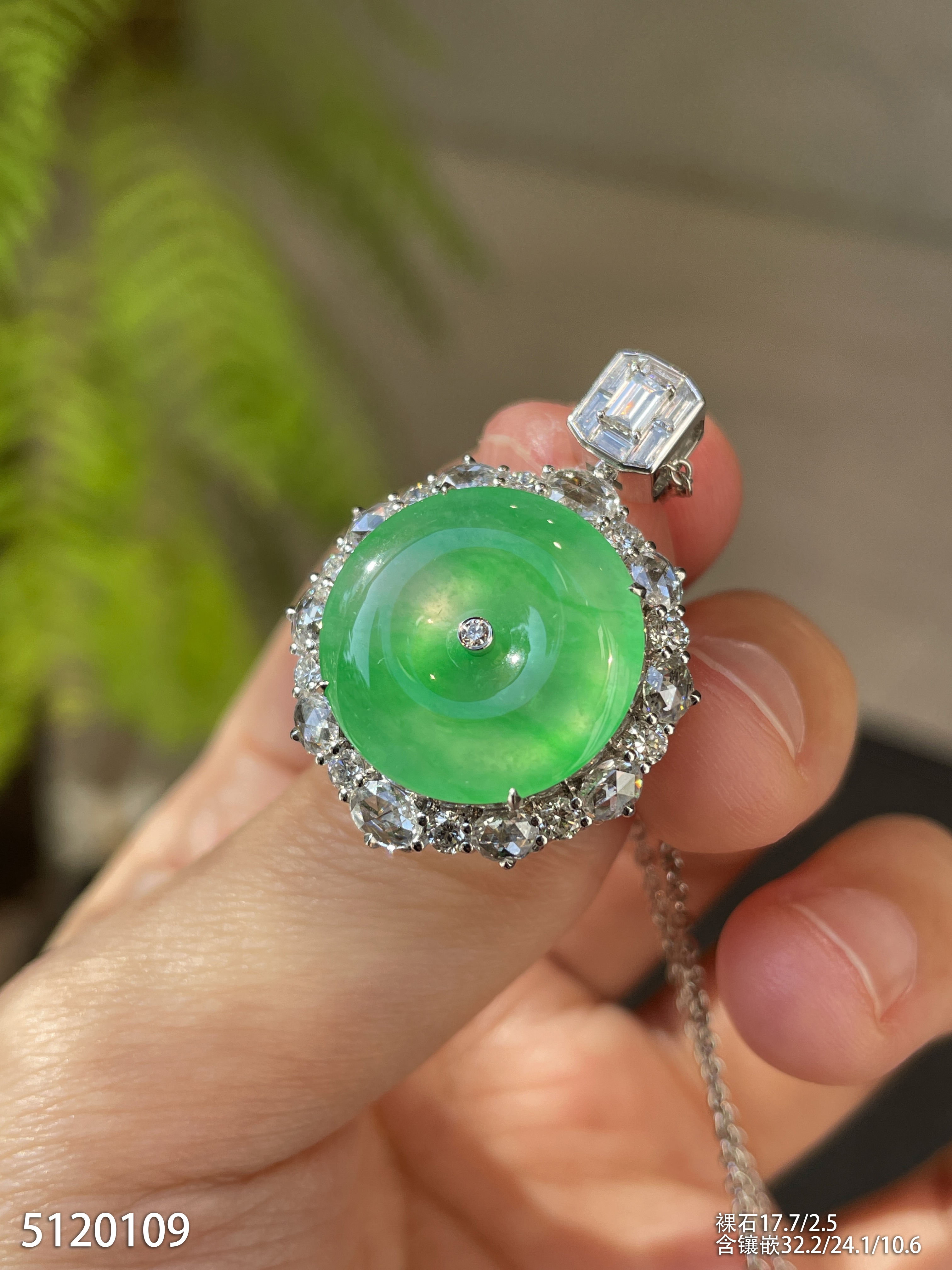 玻璃种木那艳绿平安扣吊坠【5120109】具体价格微信咨询