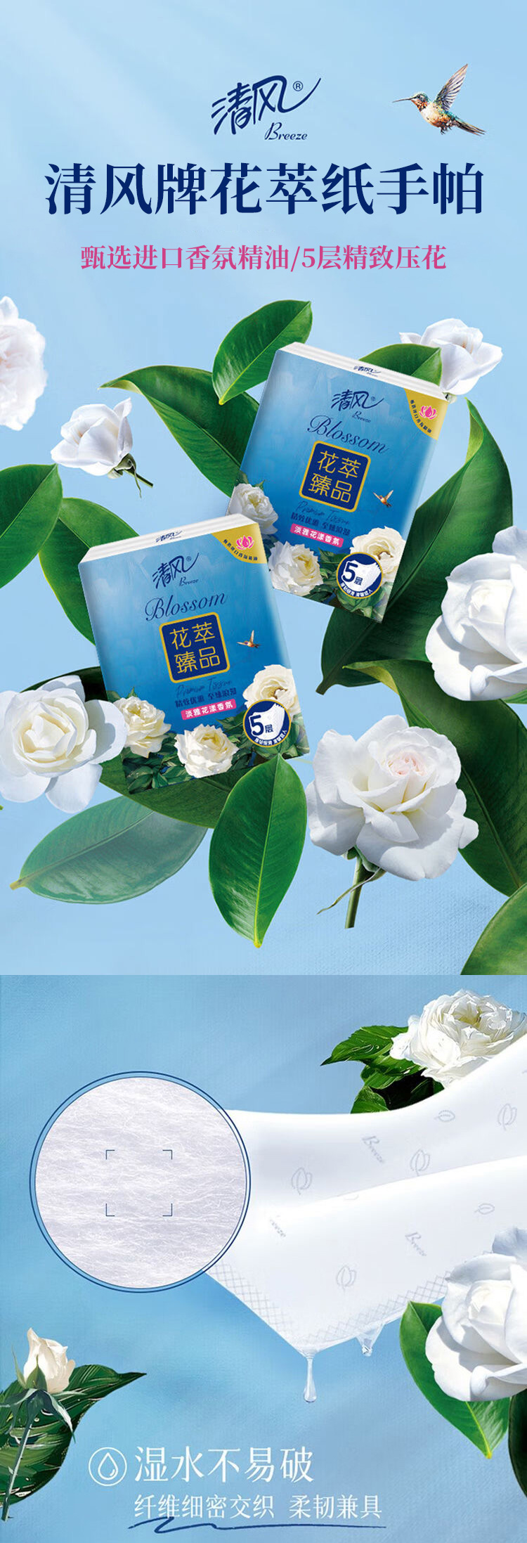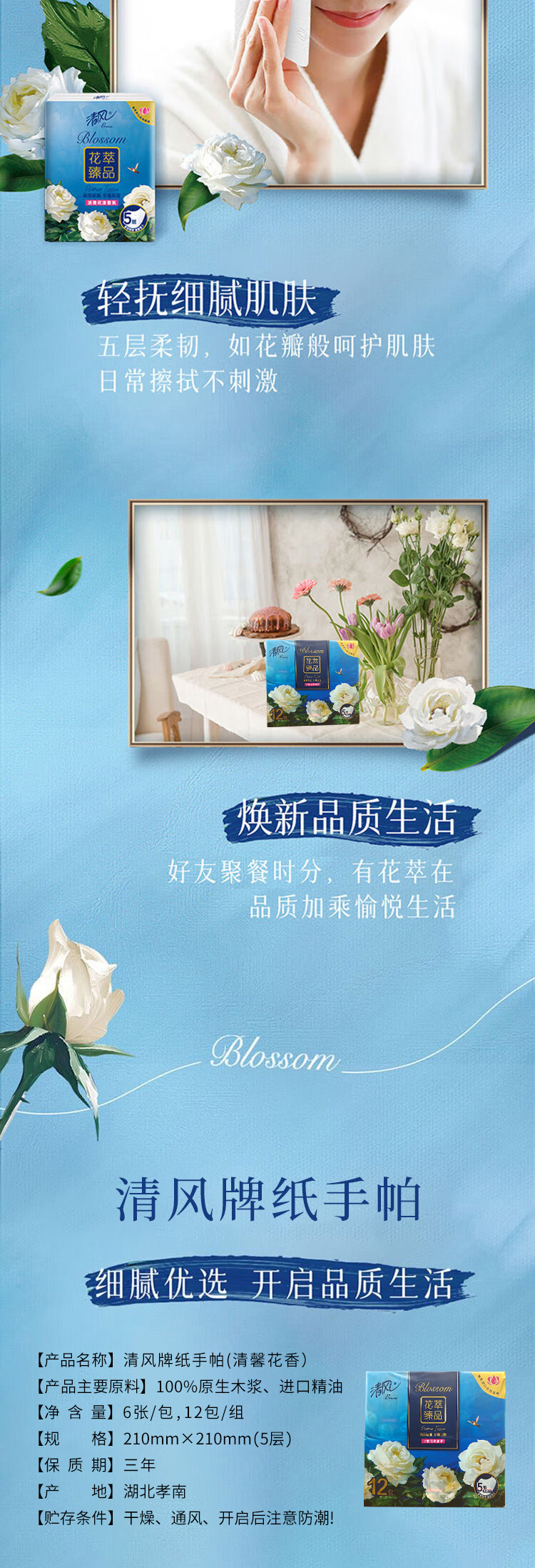 清风牌花萃纸手帕6张*12包 【原生木浆】