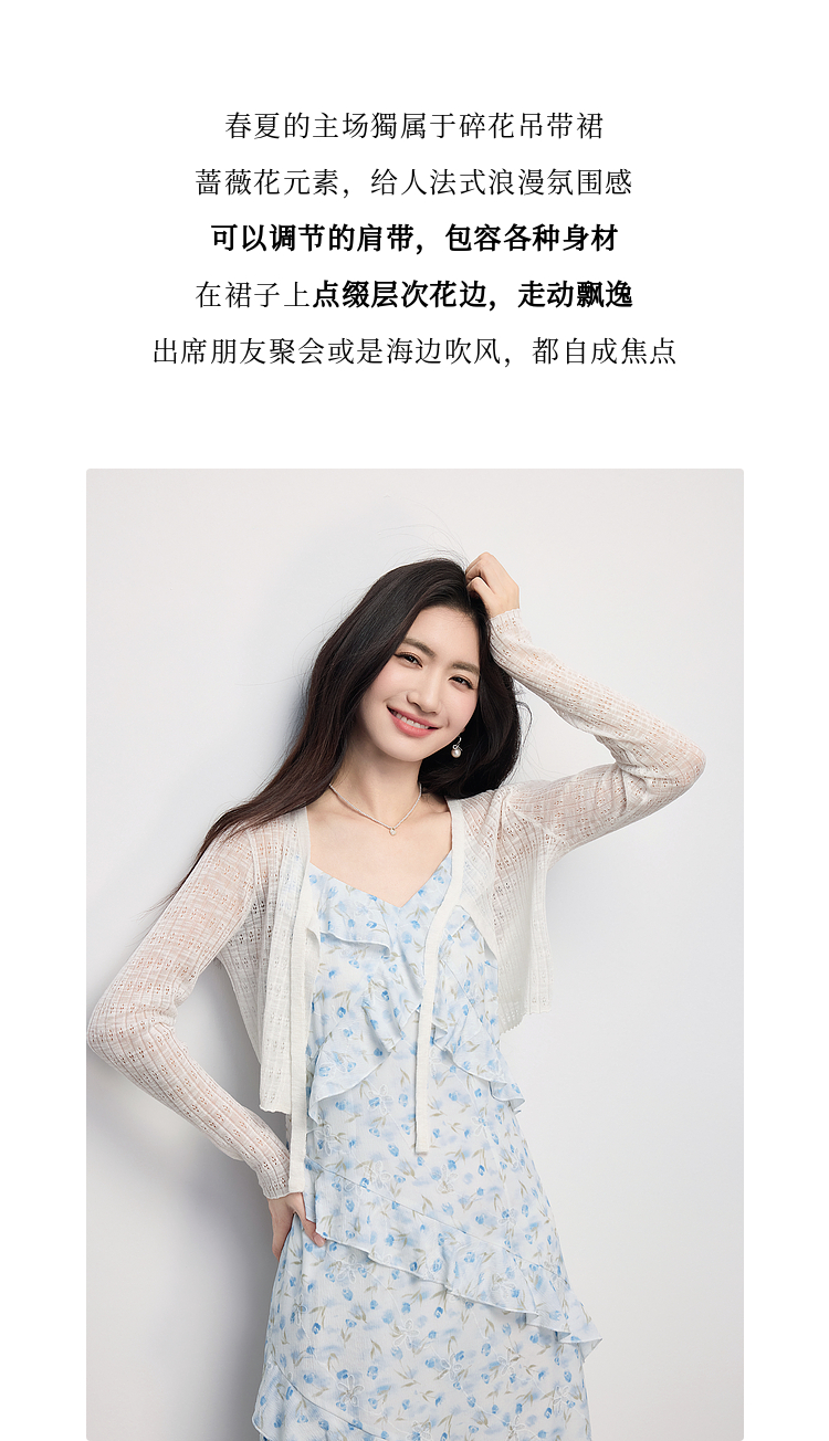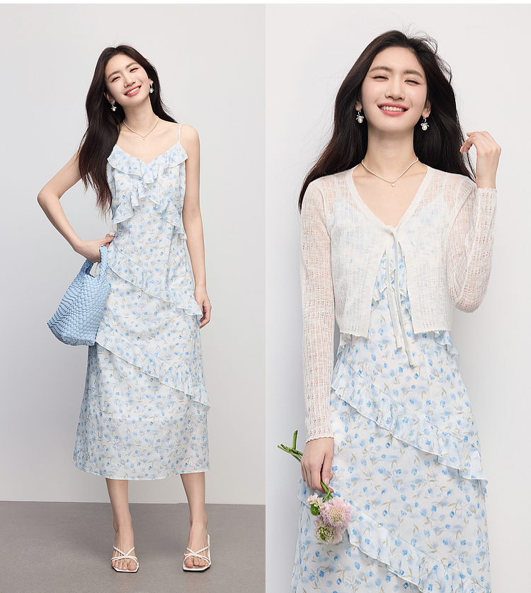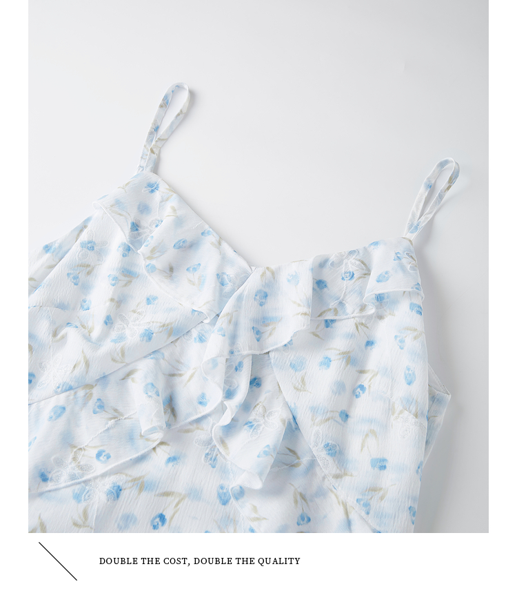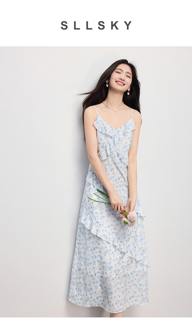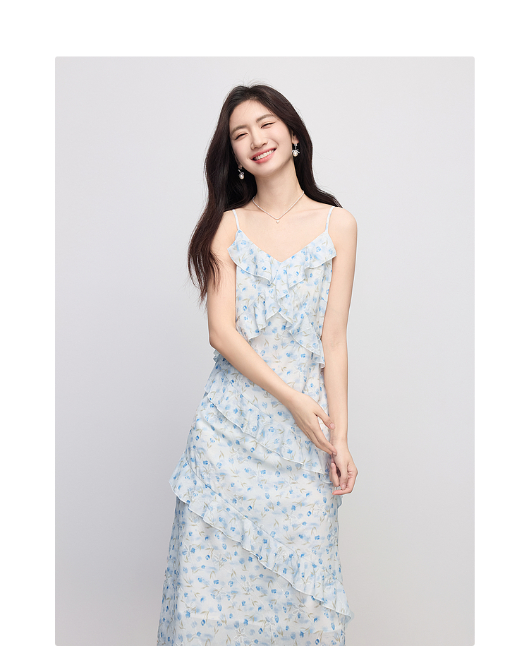 【周末秒杀】熙世界法式碎花吊带连衣裙2025夏日新款荷叶边度假风海边沙滩裙