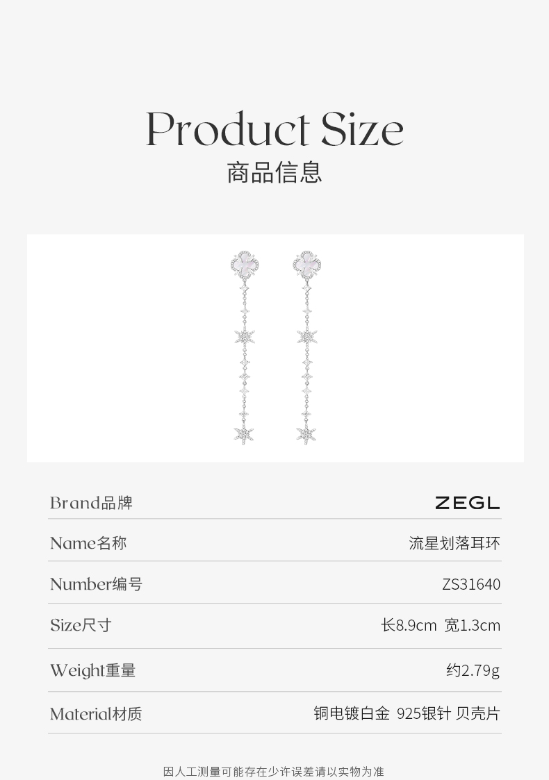 ZEGL设计师雪花流苏耳环女小众设计感高级长款耳钉银针秋冬耳饰品