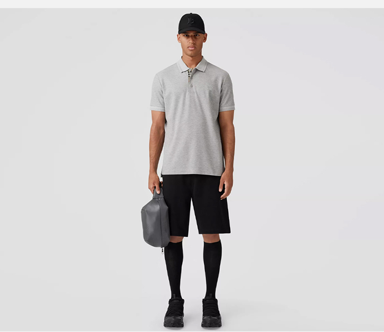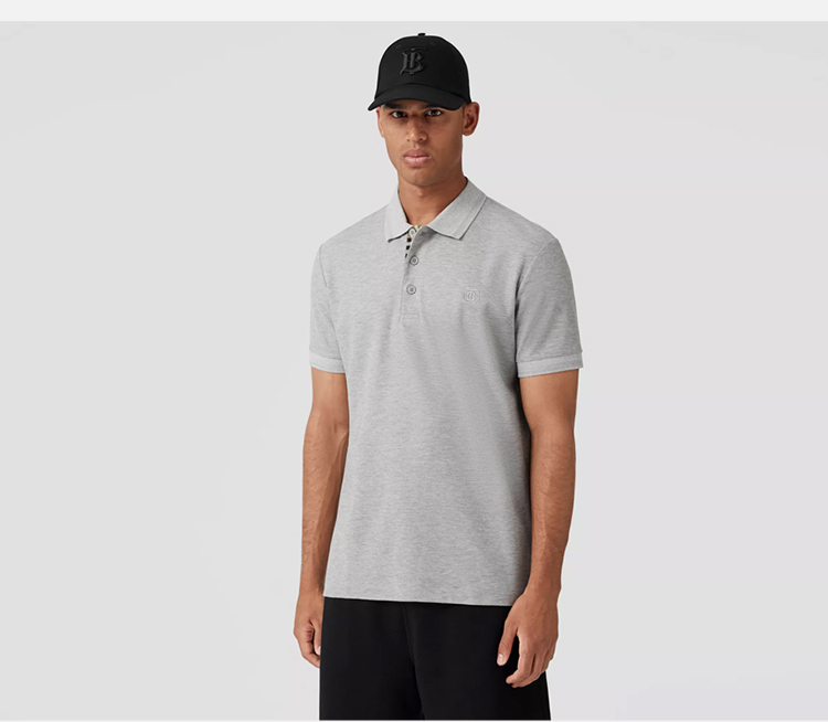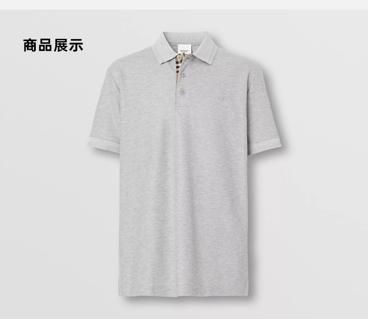 【三】BURBERRY 巴宝莉 男士TB专属标识图案珠地网眼布棉质短袖 Polo 衫 灰色 8052966 A2142