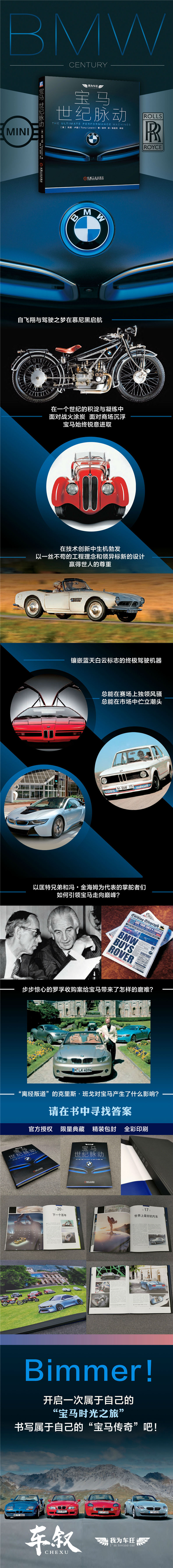 《宝马:世纪脉动》以生动干练的文字述说了宝马这位德国汽车巨头的传奇历史和经典车型。源自宝马官方资料的珍贵历史图片,以及出自众多知名摄影师之手的精美照片,将为你开启一次赏心悦目的时光之旅。