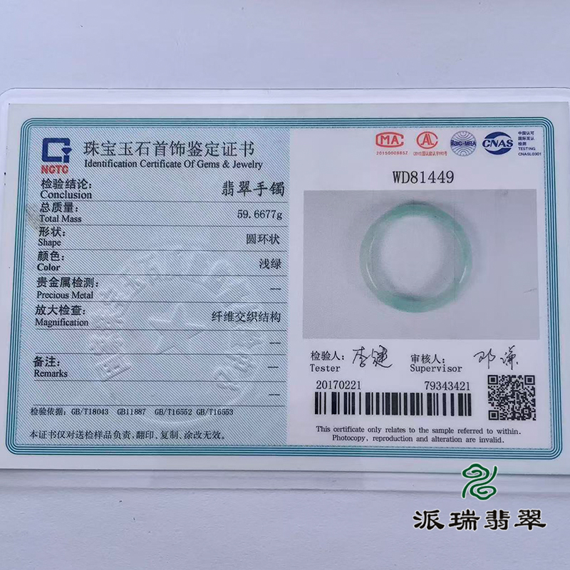 派瑞翡翠 翡翠手镯 糯种 浅绿