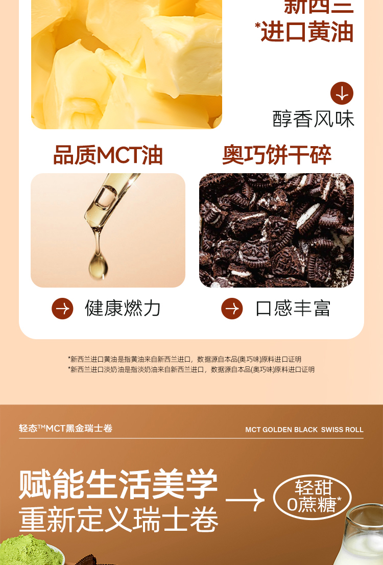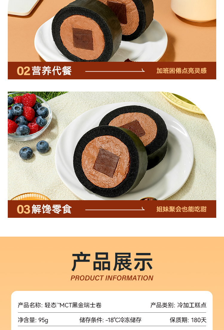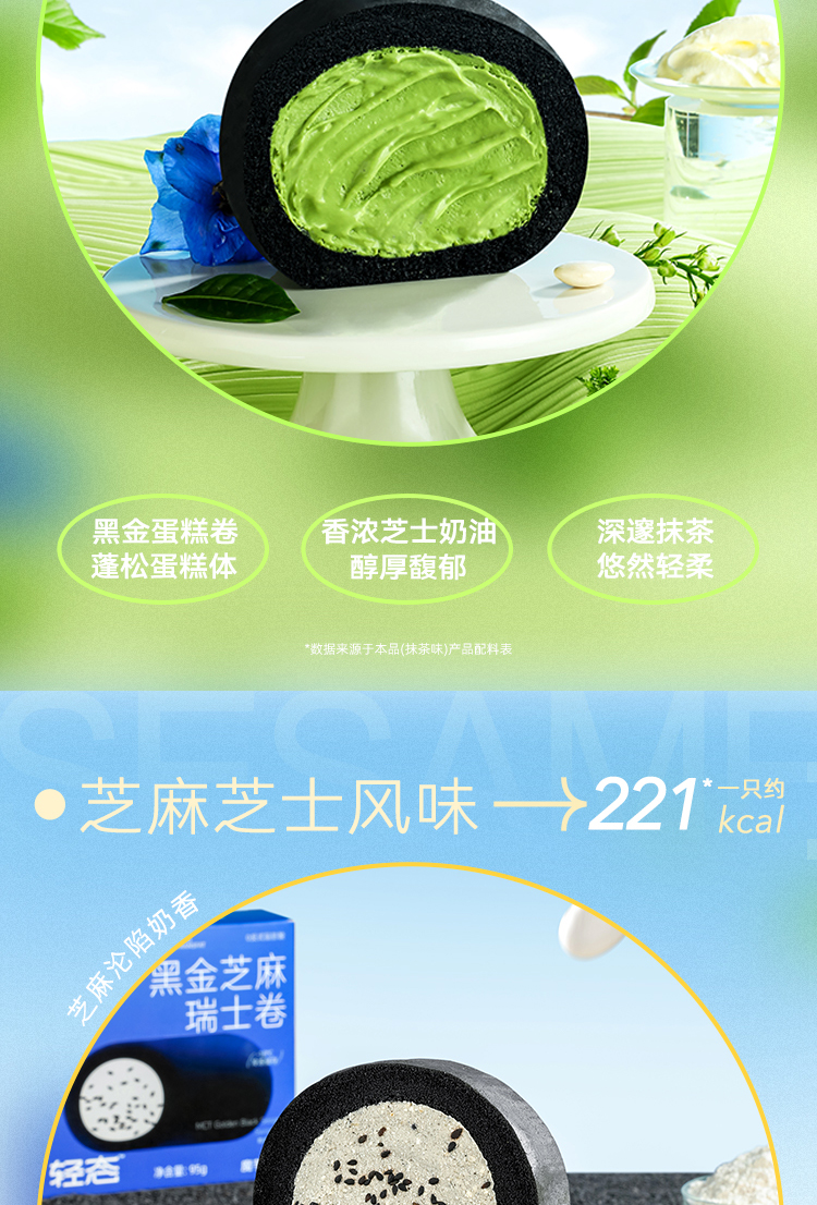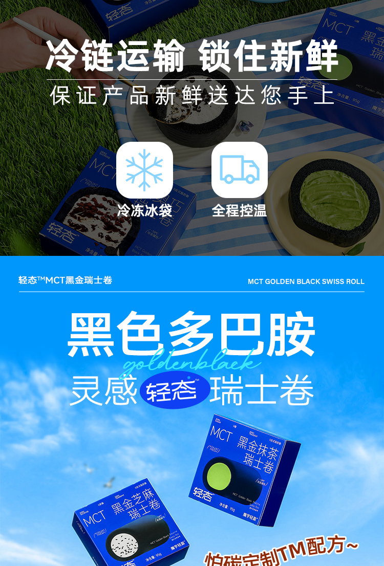 严选 | 轻态MCT黑金奥巧/芝麻/抹茶瑞士卷 95g*3盒 魔芋控卡配方 绵密丝滑 醇香感受