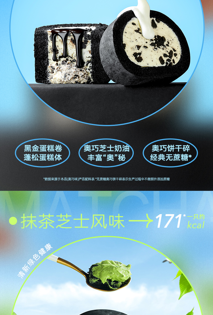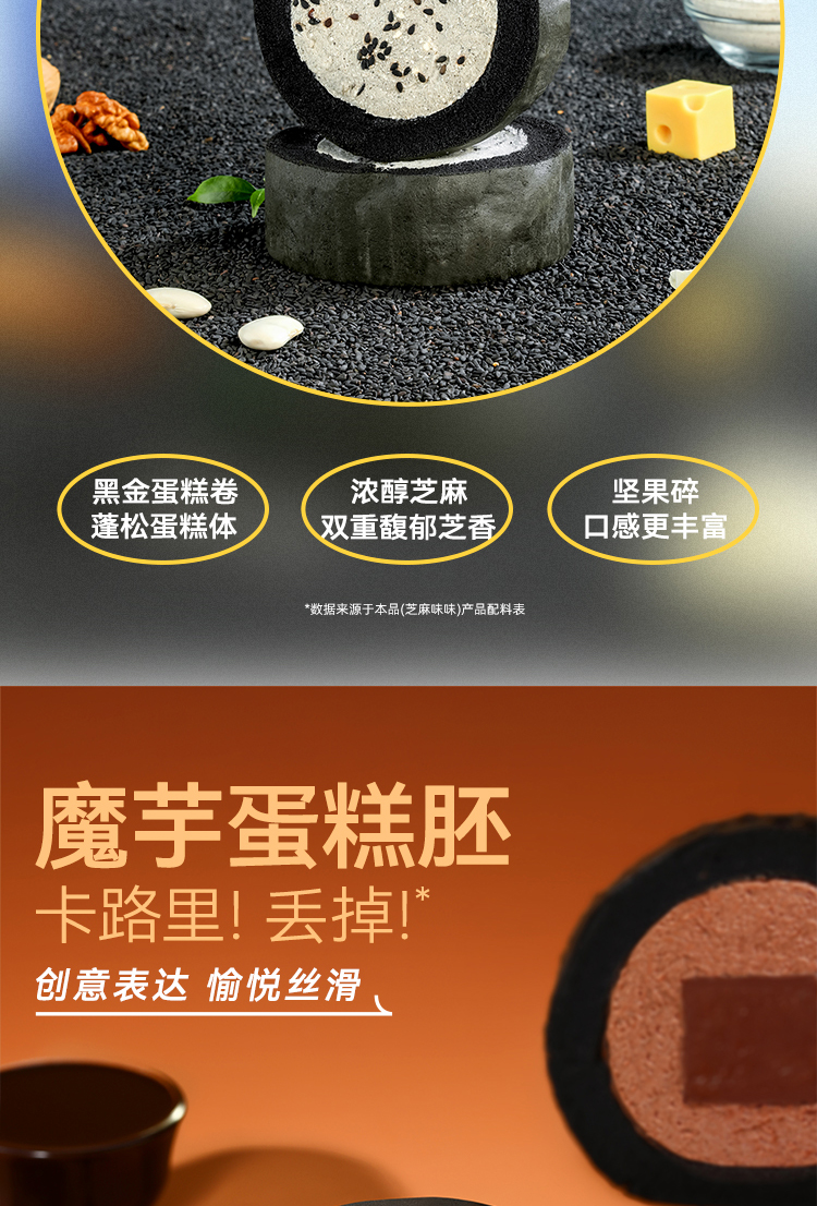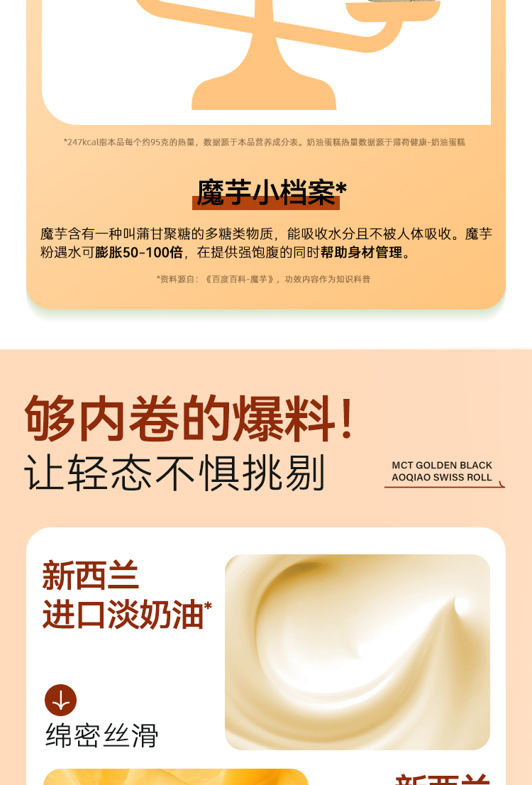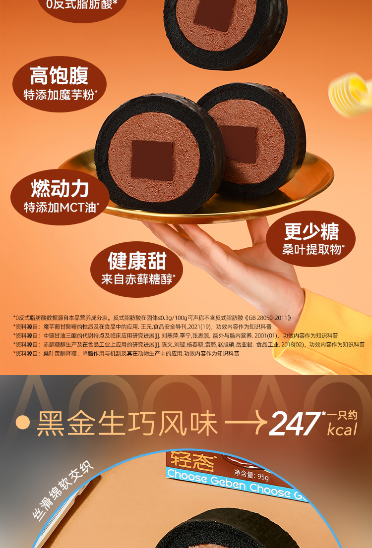 严选 | 轻态MCT黑金奥巧/芝麻/抹茶瑞士卷 95g*3盒 魔芋控卡配方 绵密丝滑 醇香感受