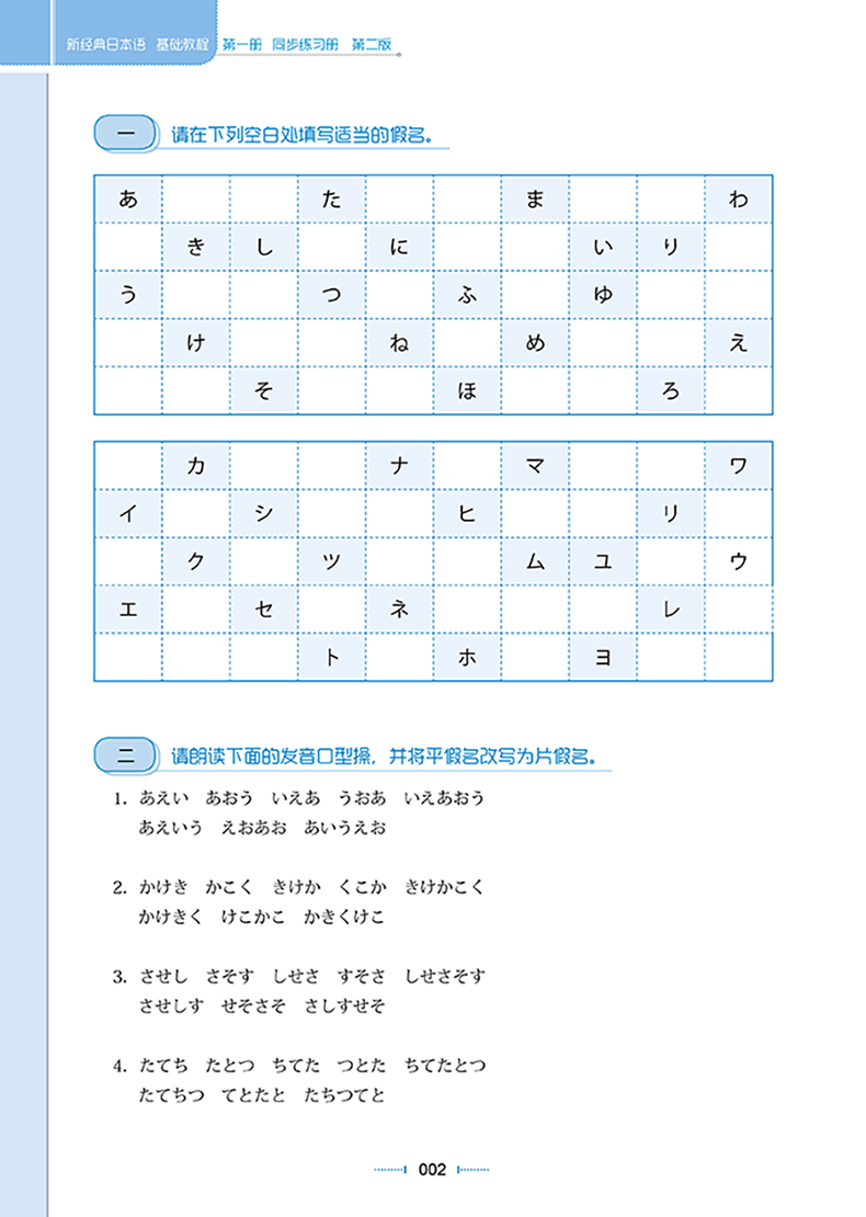 《新经典日本语基础教程第一册同步练习册 第二版》是《新经典日本语基础教程第一册 第二版》的配套练习册。书中所有的练习内容均围绕主教材中出现并要求掌握的知识点进行设计与编写,目的是补充、巩固和强化所学知识。本书遵循了渐进式以及"机械性→理解性→活用性"三个编写原则,有助于巩固所学知识,并帮助学生打下坚实的语言基础,提高语言的综合能力。本书的内容覆盖了主教材中全部知识点。题型设计既考虑到初级阶段学习者的学习特点,也兼顾应试的需求,题量较大。学习过程中,学习者可以根据自己的实际情况进行取舍,调整练习重点。每一课的题型比较固定,难易顺序基本一致,避免了题型不断变化带给学生的困扰。