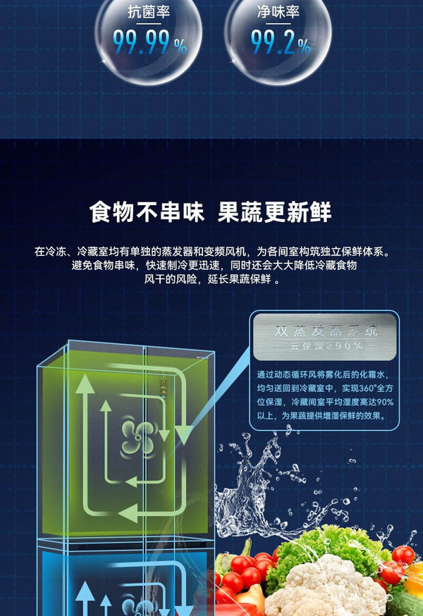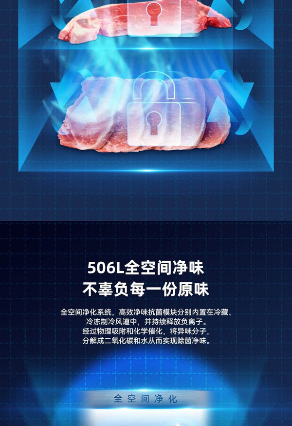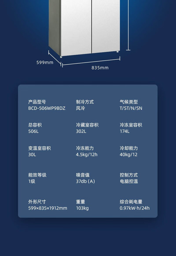 美菱 冰箱 BCD-506WP9BDZ 美菱506升 冻鲜生系列 十字四门冰箱 冰晶白