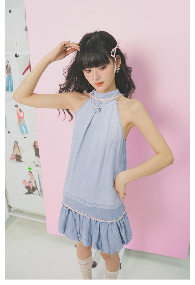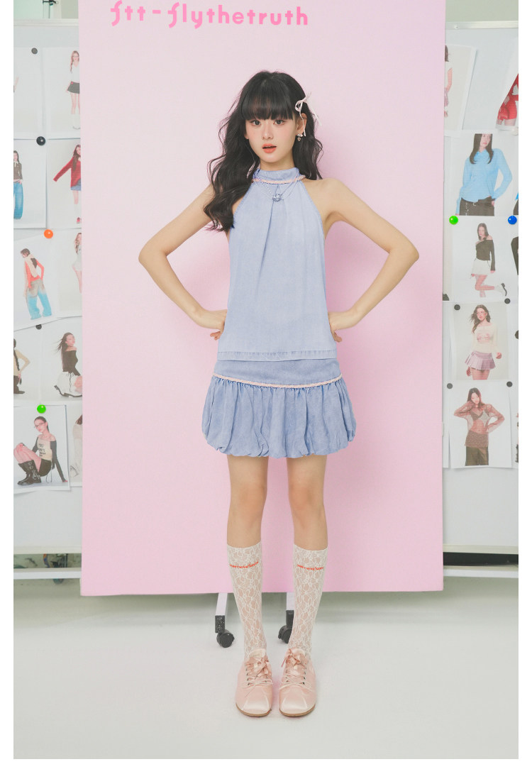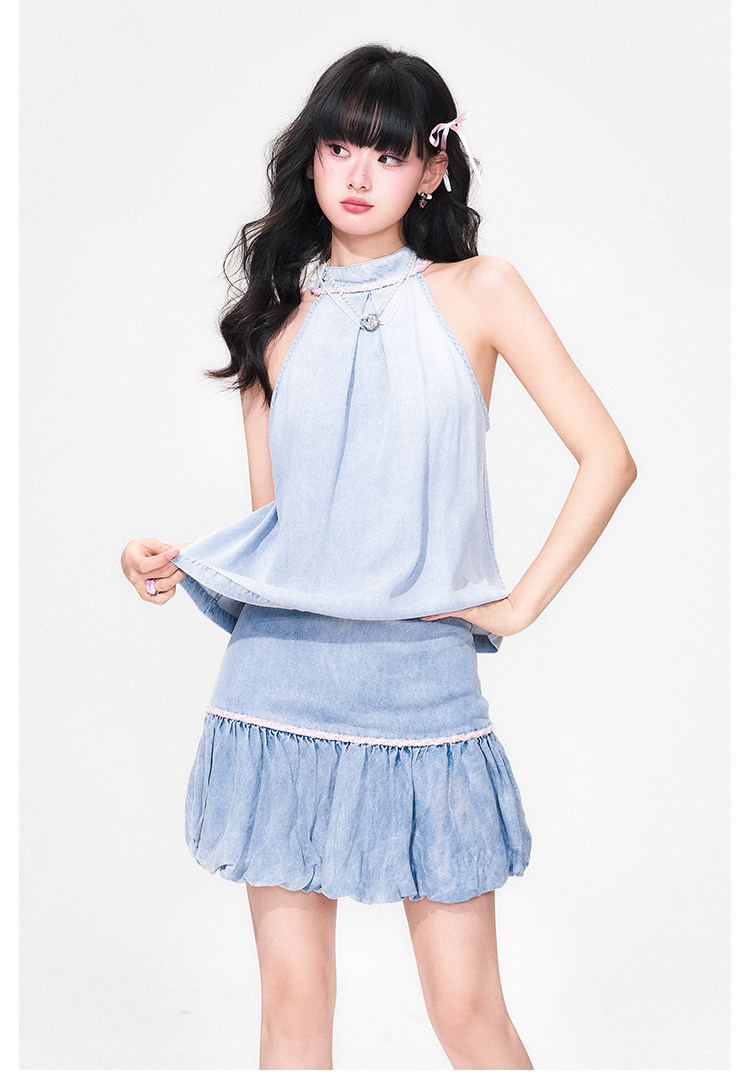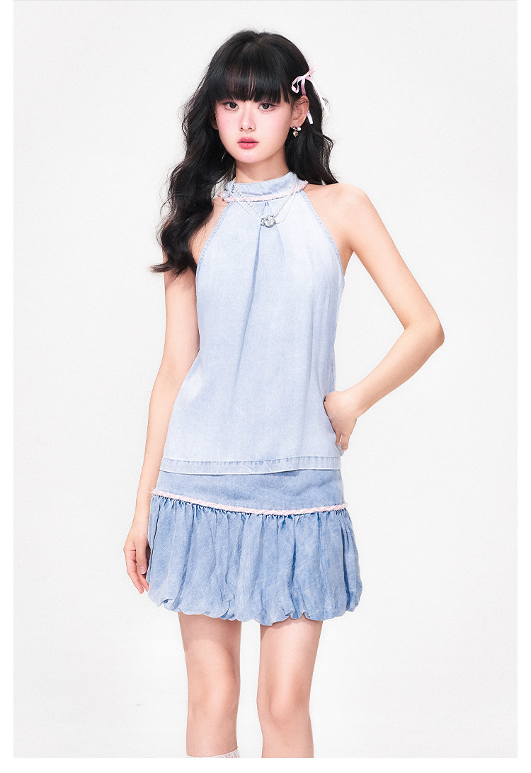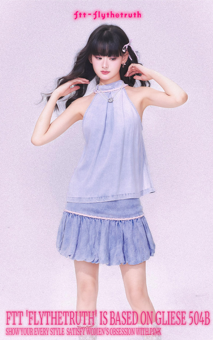 FTT FlyTheTruth『未驯化的蓝』INS天丝挂脖牛仔吊带背心女夏上衣