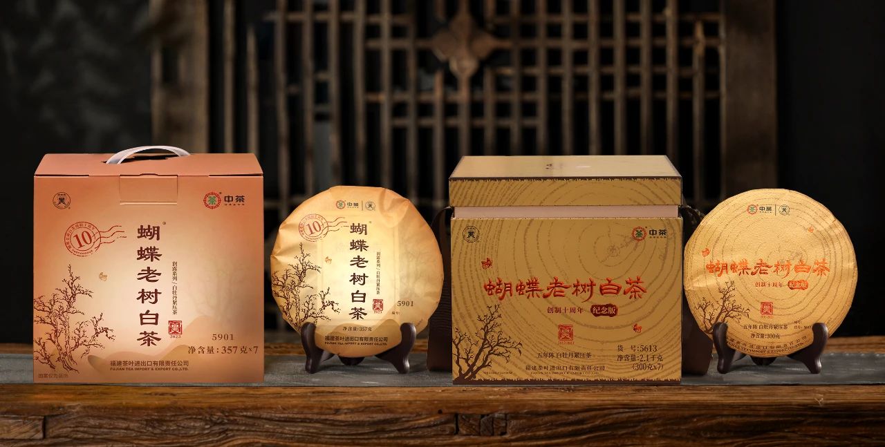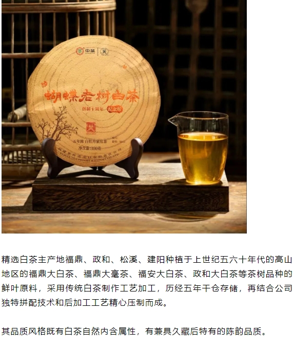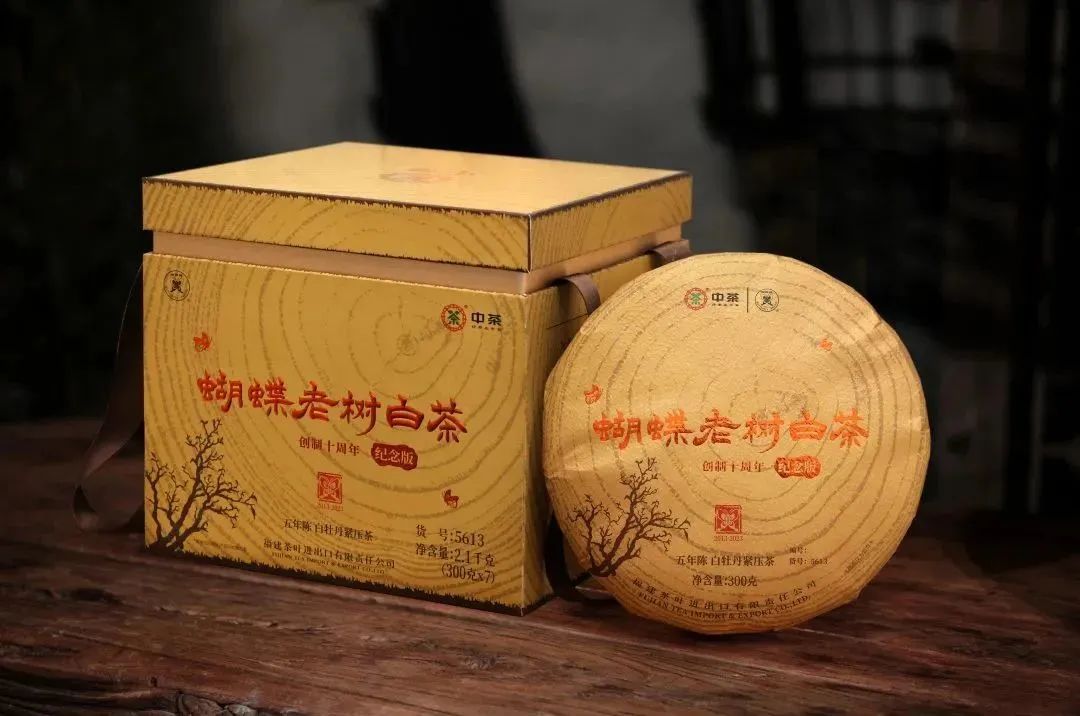中茶2023蝴蝶5613老树白茶五年陈白牡丹紧压茶300g