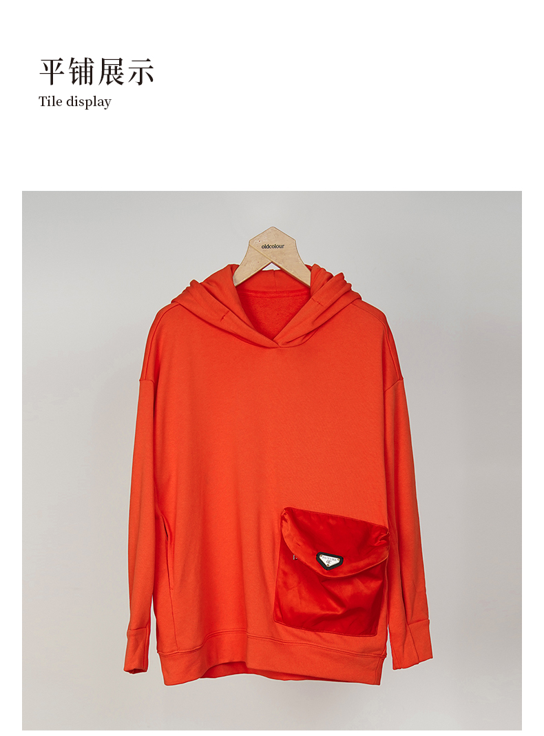 oldcolour春秋款气质百搭宽松显瘦连帽红色长袖T恤女O11023105