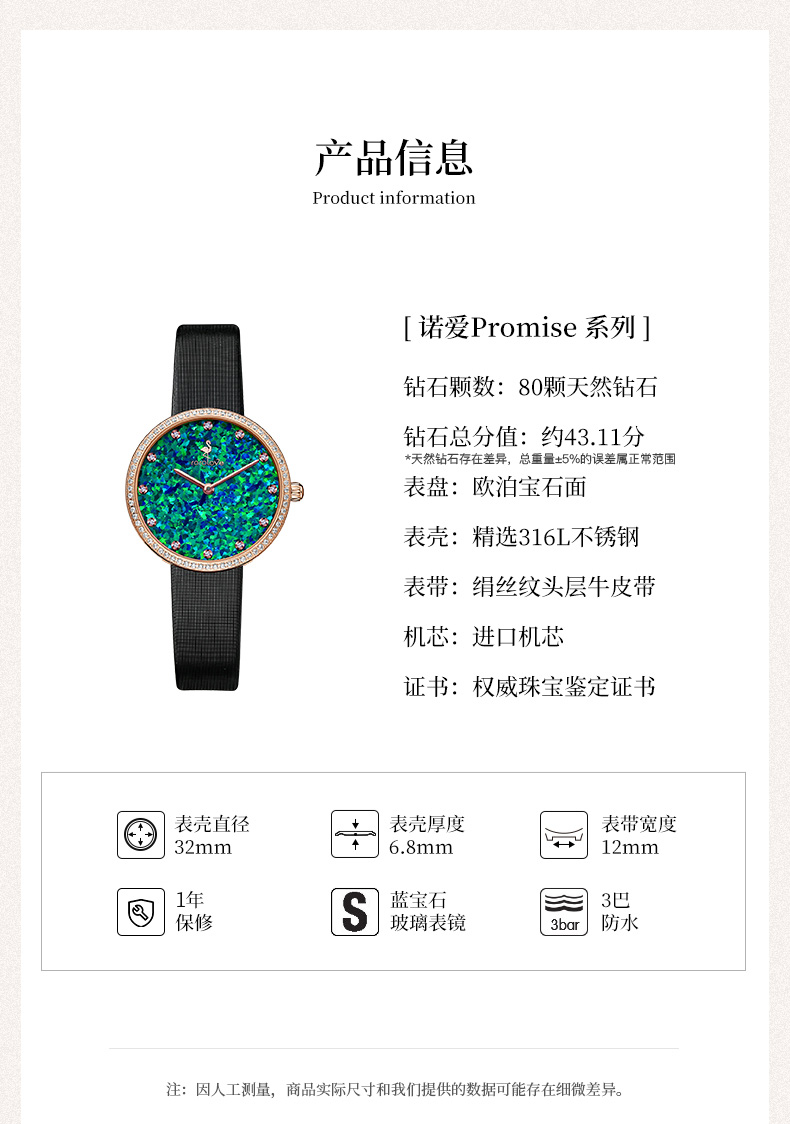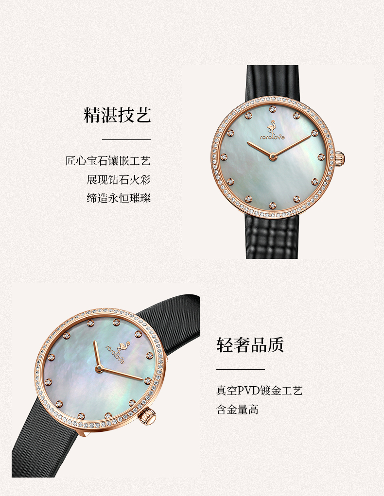 【ROROLOVE】诺爱Promise系列 天然钻石轻奢手表女新款简约女表腕表送礼物(80个钻石)