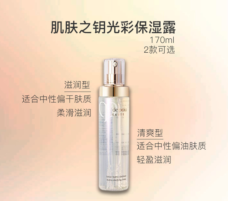 光采保湿露(即保湿化妆水,滋润型)170ML:适合中性偏干肤质。