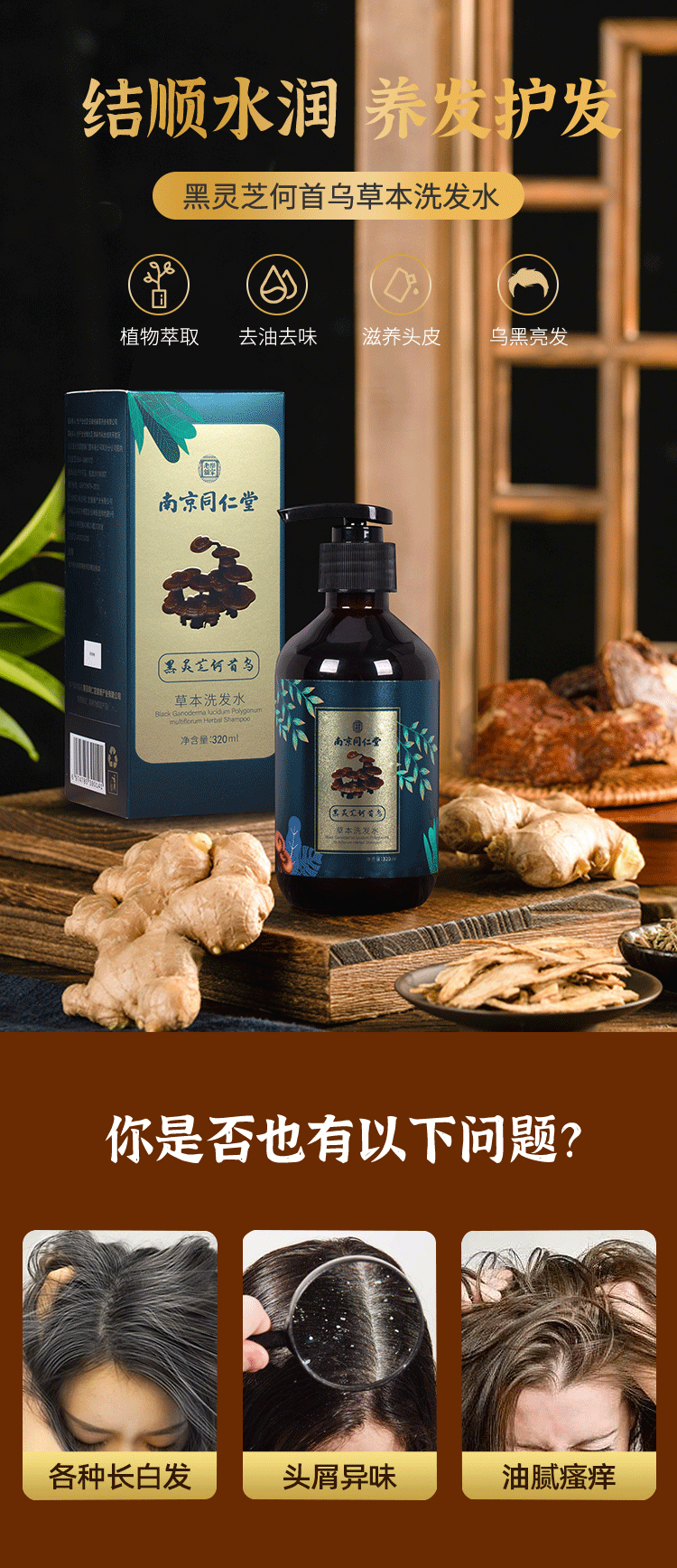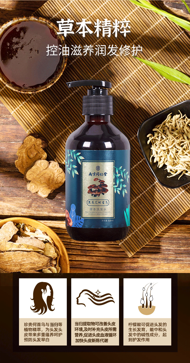 【买1送1 买2送2再减10 买3送3再减25 买5送5再减40】】南京同仁堂乐家老铺何首乌植萃润养洗发水养发护发