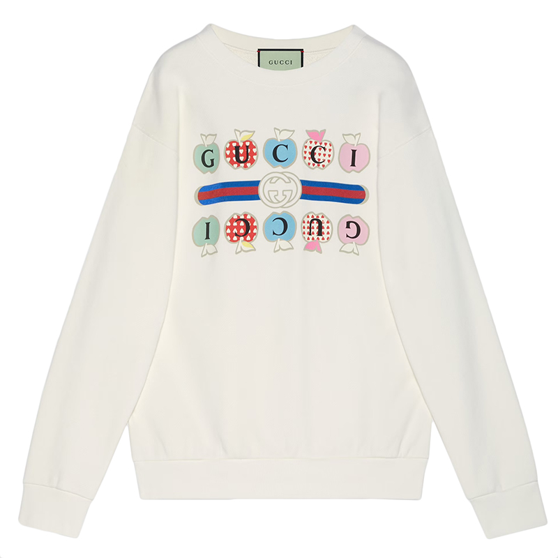 GUCCI/古驰 21年秋冬新款 女士白色心苹果图案棉质卫衣617964XJDOK9095