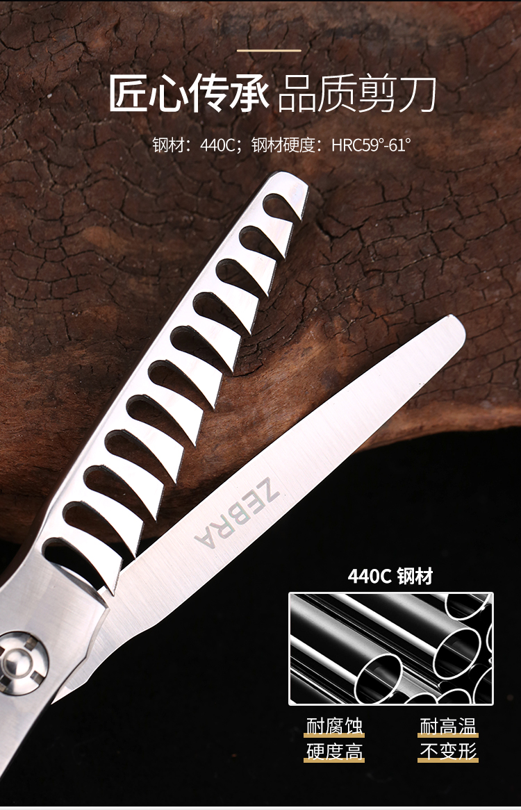 ZEBRA斑马E601182美发剪刀打薄剪刀发型师专用家用去发量40%-50%