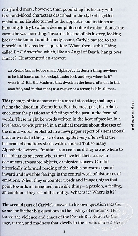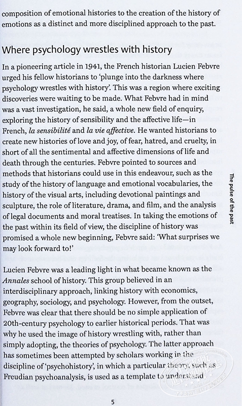 非常简短的介绍:情绪是一种复杂的心理状态,难以还原。它们是内脏的反应,也是对世界的信念。它们是自发的爆发,但也是文化上的表演。它们是亲密和私密的,但只有从人际和社会框架中才能获得其内容和意义。正如我们的情绪在任何特定时刻都显示出这种复杂的结构一样,它们的历史也是多元的而不是单一的。情感的历史是思想史与身体史相遇的地方,也是主体性的历史与社会和文化历史相遇的地方。