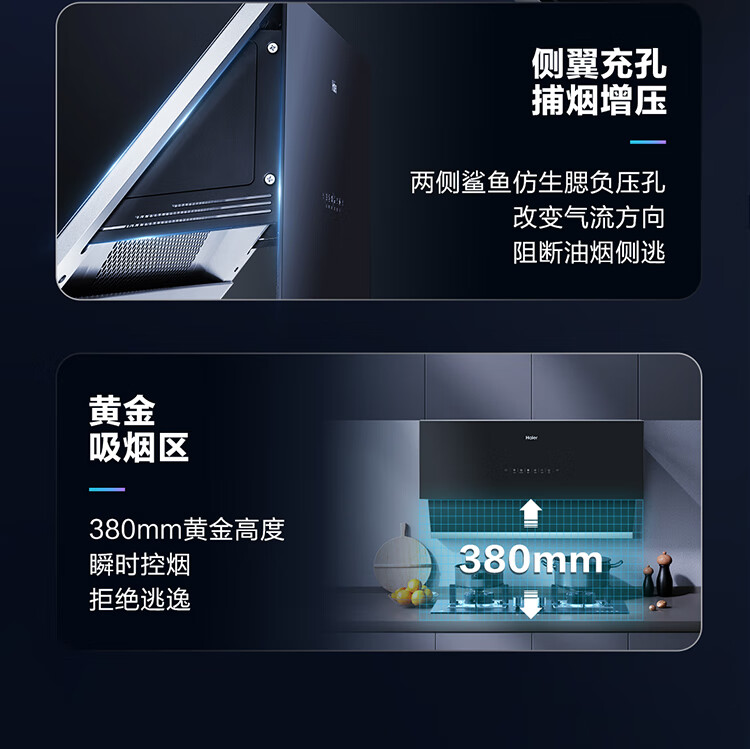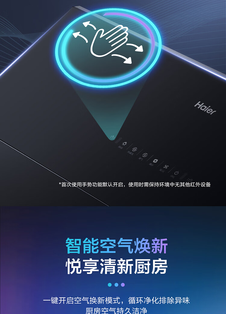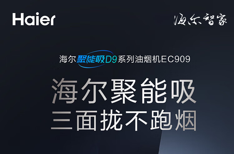 海尔(Haier) 23立方 聚能吸系列 一键热熔自清洁 手势控制 智能空气换新 抽油烟机 侧吸家用 550pa 智能手势控制 热熔洗油烟机EC909