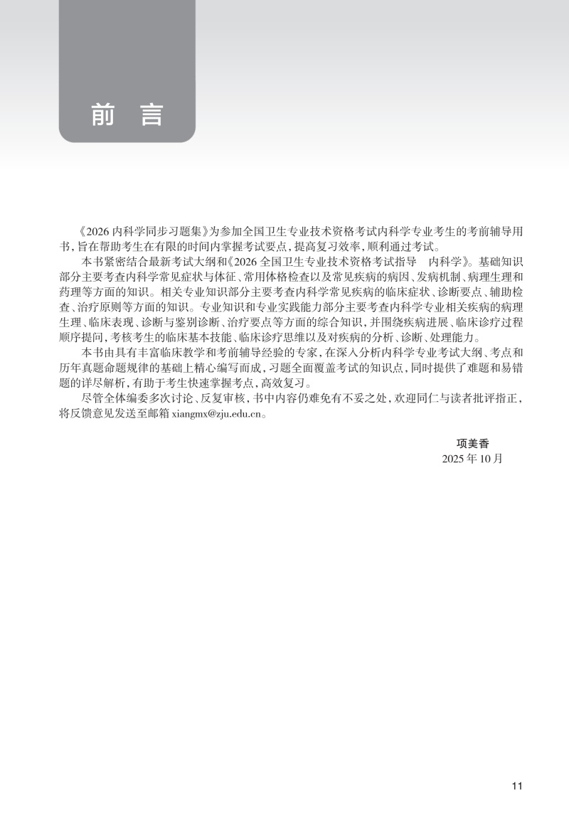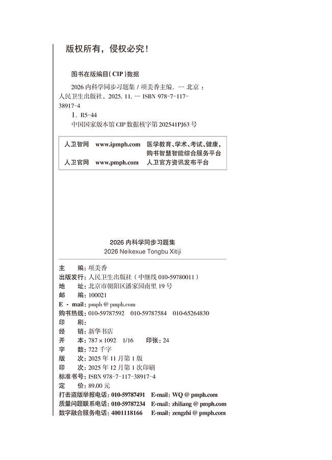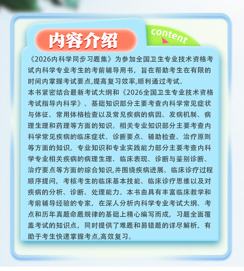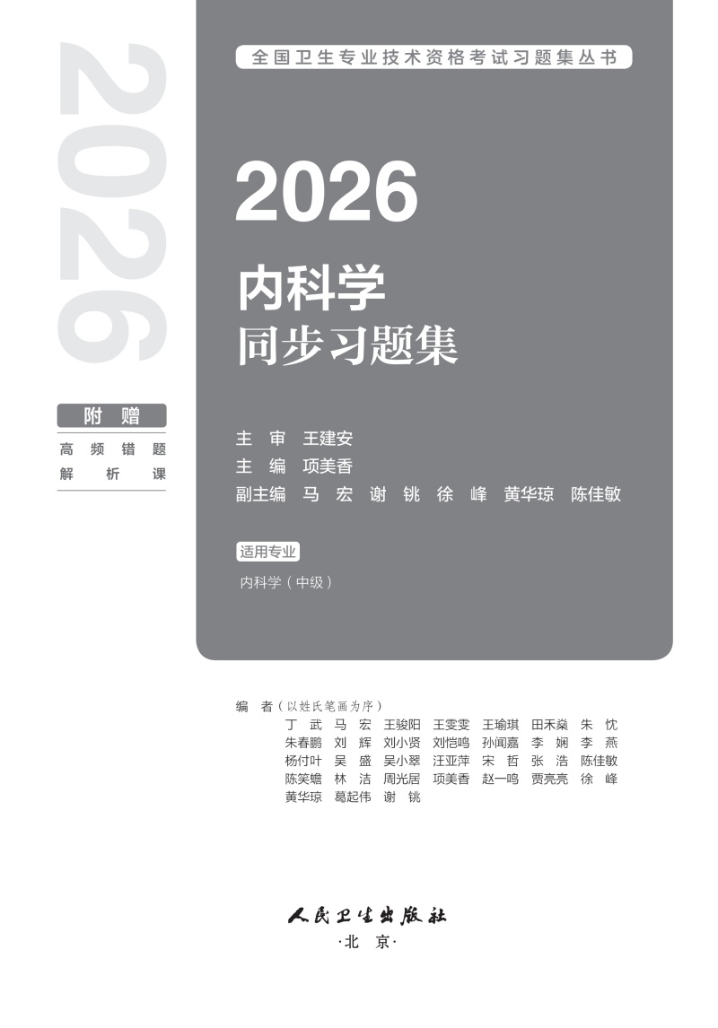 2026内科学同步习题集 全国卫生专业技术资格考试习题集丛书 项美香 主编 适用专业内科学(中级)303 9787117389174人民卫生出版社