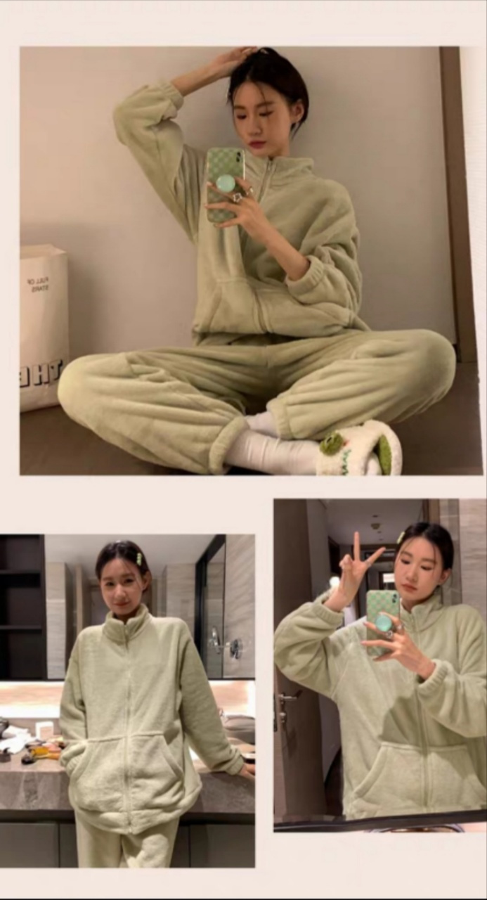 NICESELF 沐光・时尚秋冬短绒居家服 软糯毛绒面料珊瑚绒/摇粒绒逛街服 细腻绵柔云朵包裹感 显瘦版型冬日不臃肿套装