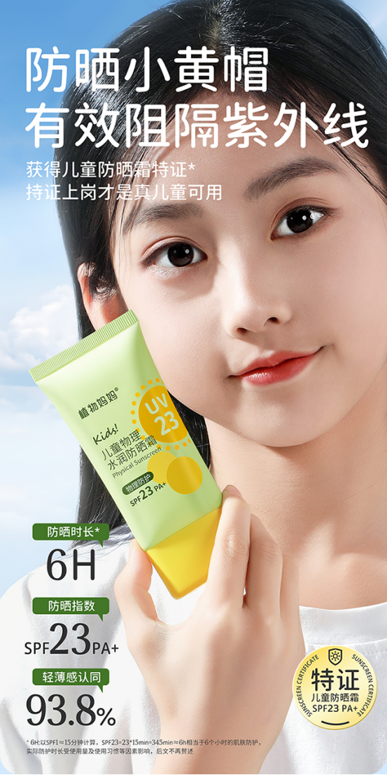 🔆夏日防晒必备【植物妈妈-儿童防晒霜】助力玩耍好时光多场景使用不变小黑娃 防晒指数SPF23 PA+,95%以上紫外线吸收率,亲肤乳液质地清爽好肤感,养肤级防晒 防晒时效长达6h,权威认证产O香精O酒精O刺激,持证上岗才是真儿童可用